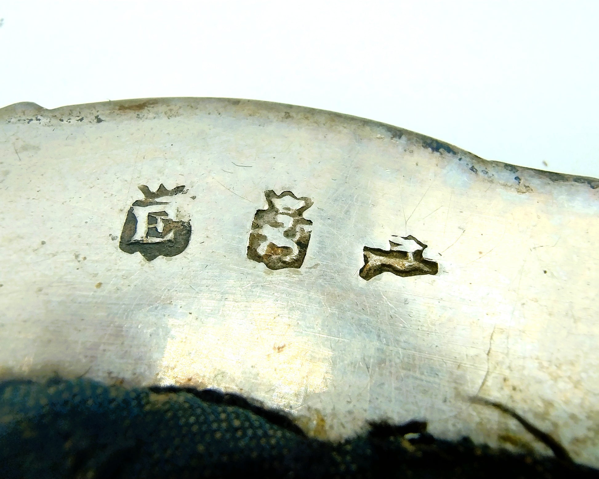 The clasp and purse hook bear various pseudo-hallmarks to suggest they were 18th-century purse clasps. They are also marked with AB34 as the master mark and the date letter h for 1892.