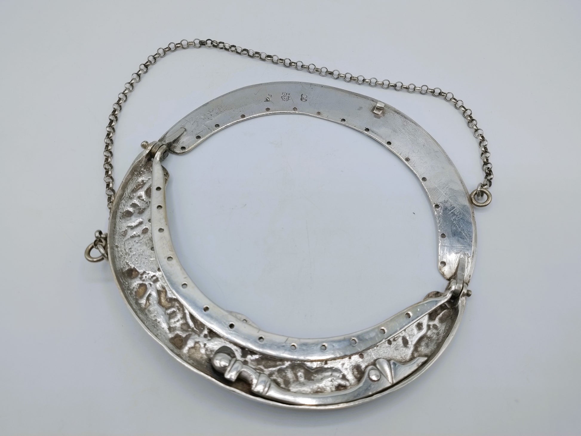 The bracket is provided with a sturdy silver jasseron chain and opens and closes by means of the head at the front of the bracket. The back of the bracket is smooth. This was done deliberately because this side of the bracket was not visible.