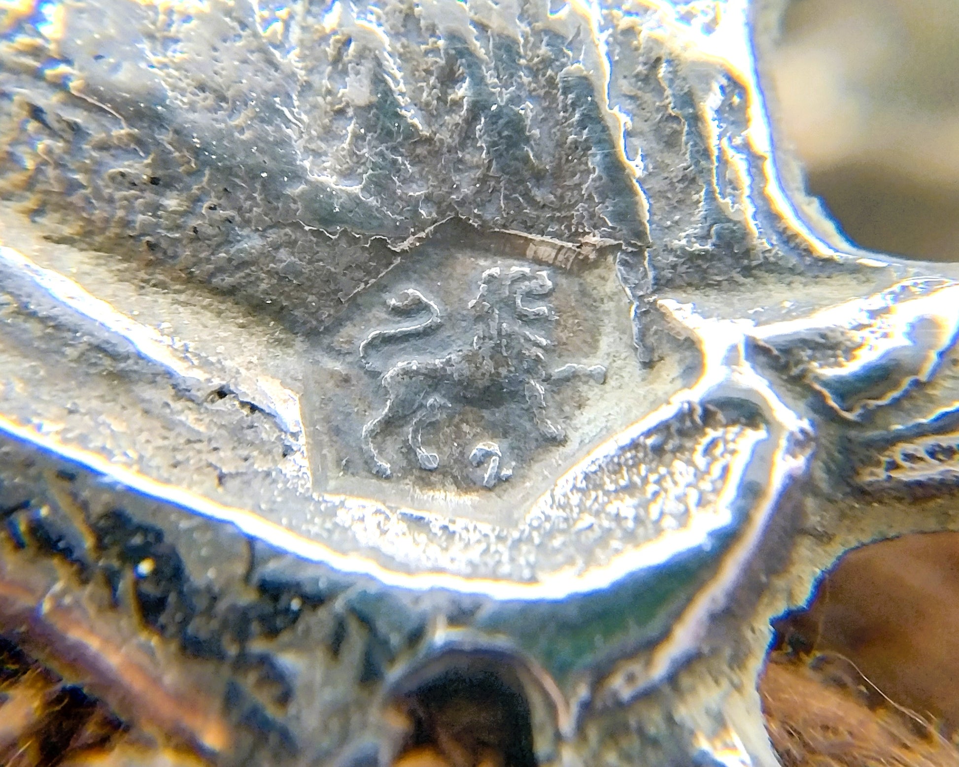The silver clasp is marked with the second grade hallmark, date letter I for 1918 and the Minerva head with the letter E for Groningen.