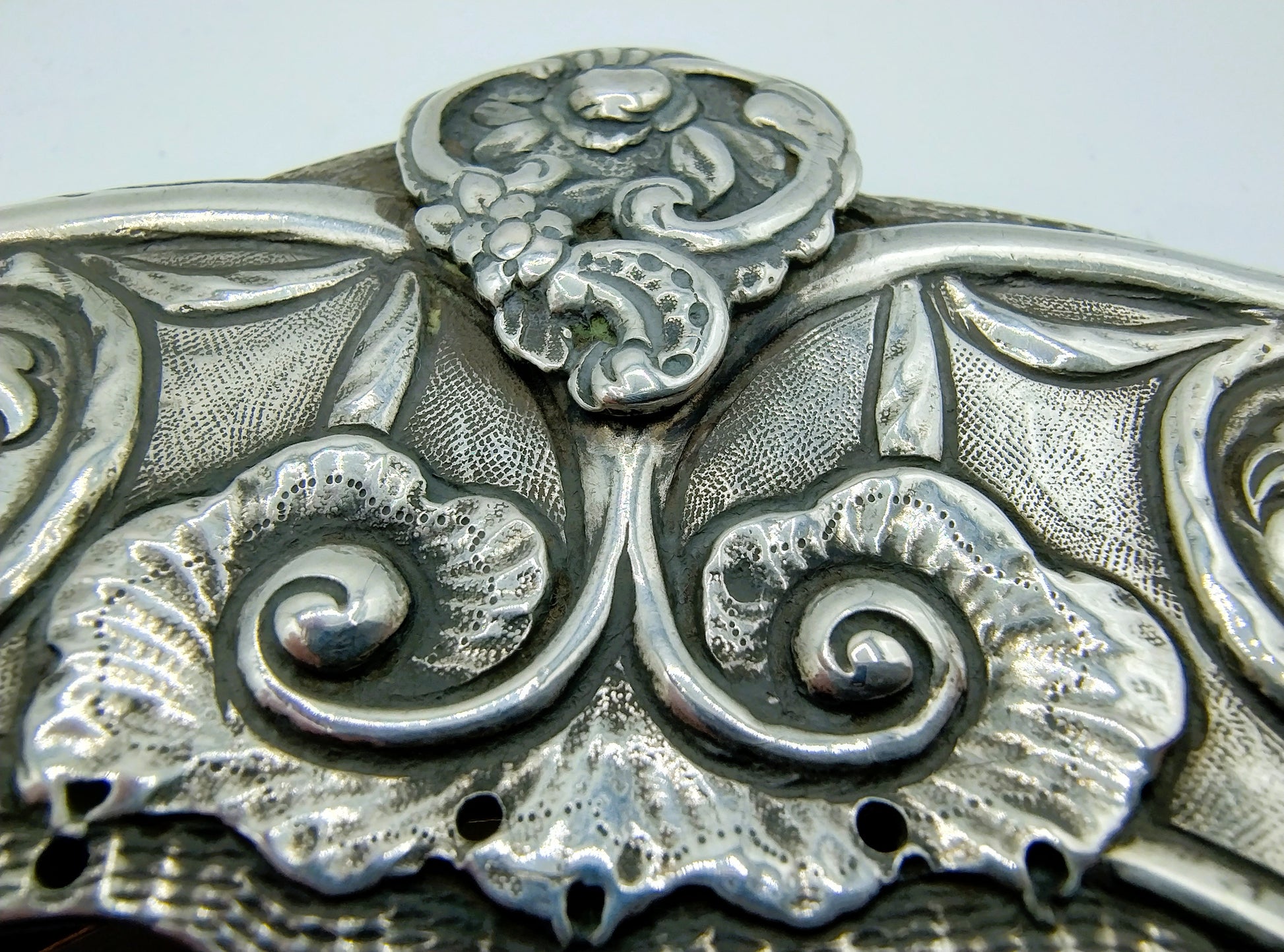 A chased silver purse clasp made by the Groningen silversmith Henricus Nicolaas Hubert, who worked from 1774 to 1816.