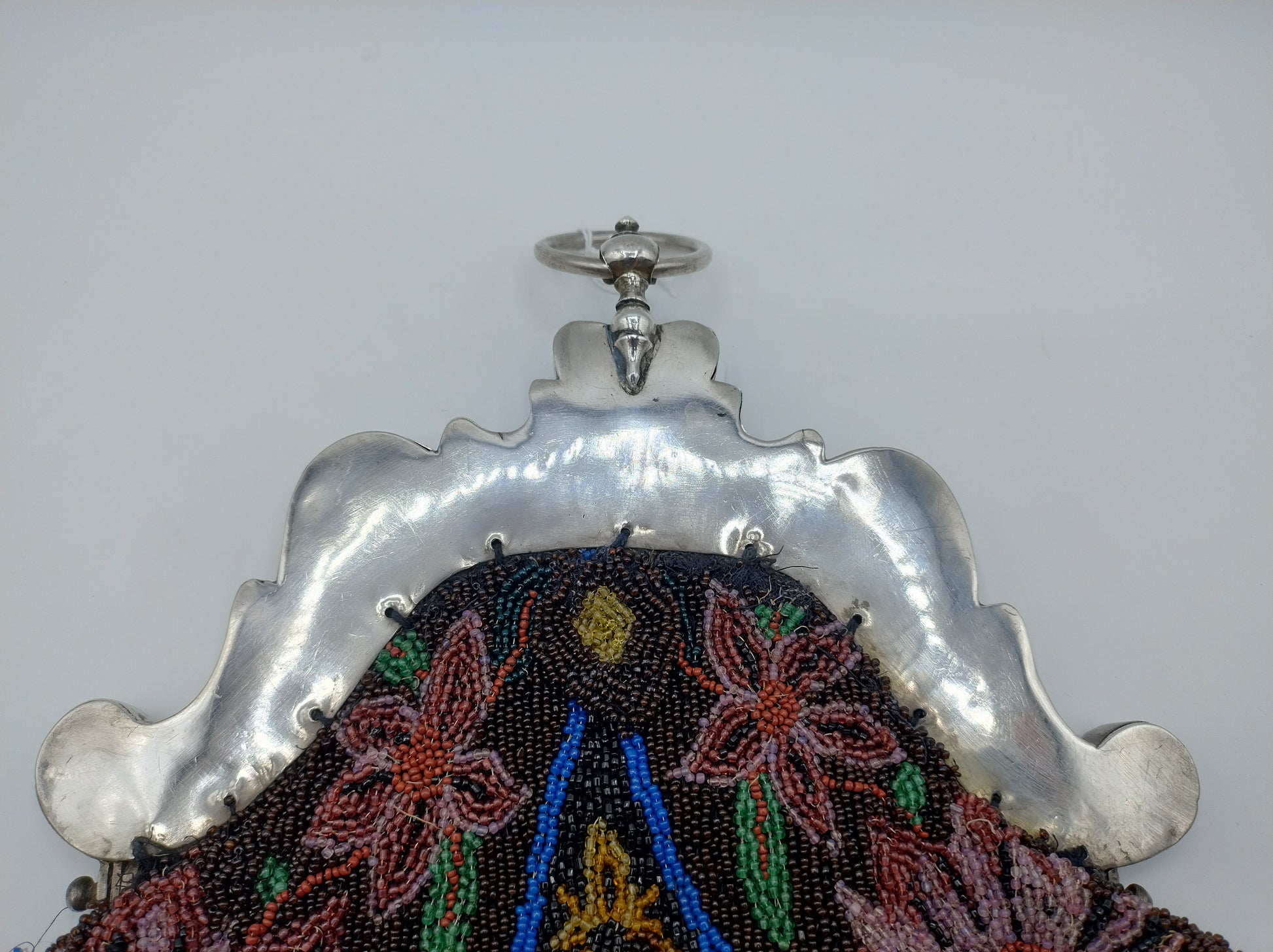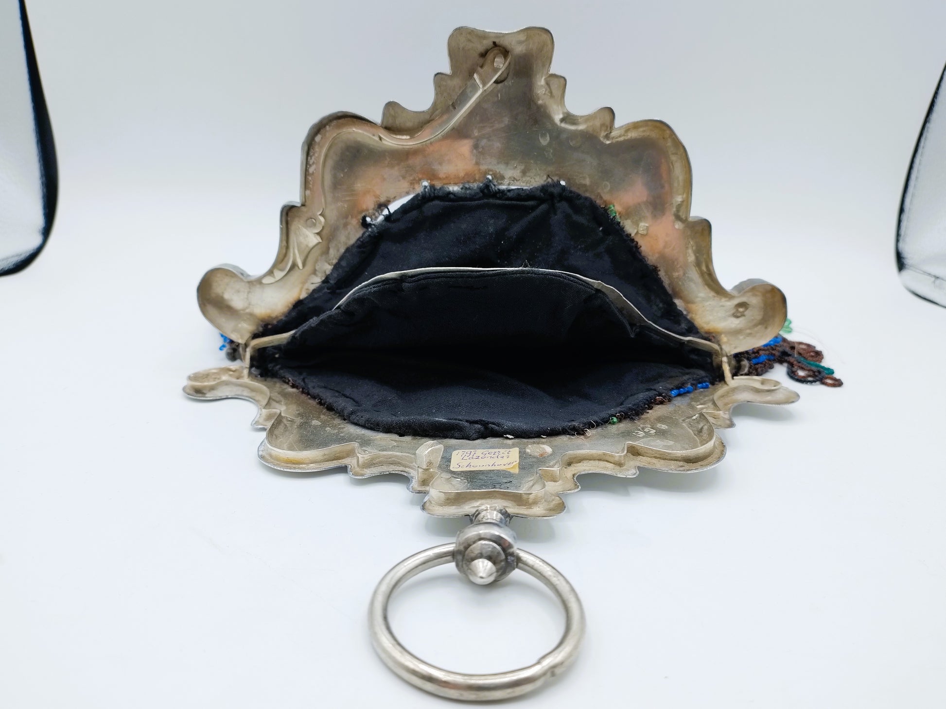 Large and heavy silver purse handle with the image of parrots. That is why it is popularly called a parrot handle.