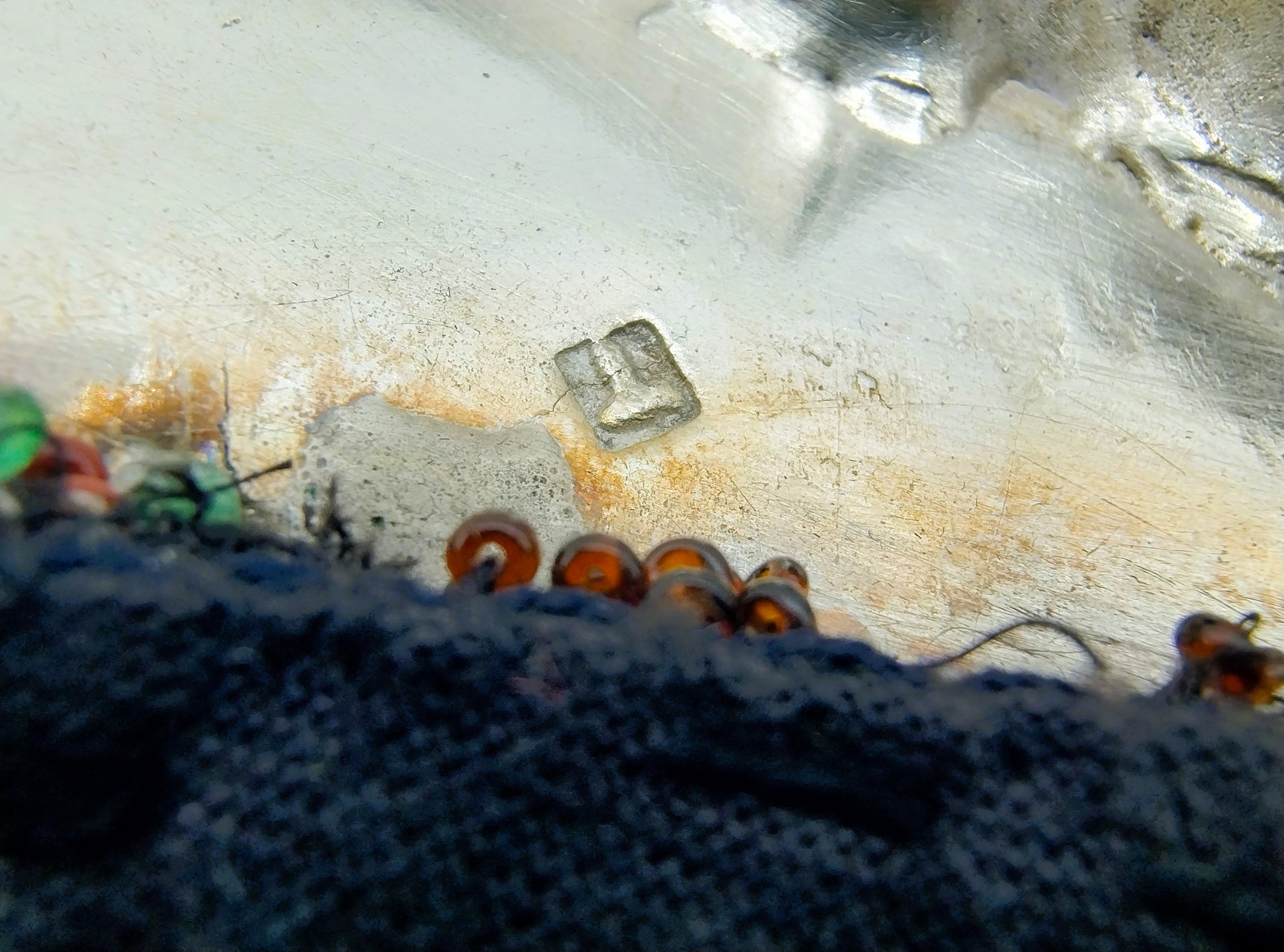 Weight: 590 (!) grams. Dimensions of the silver bracket: 18 x 21.5 cm.