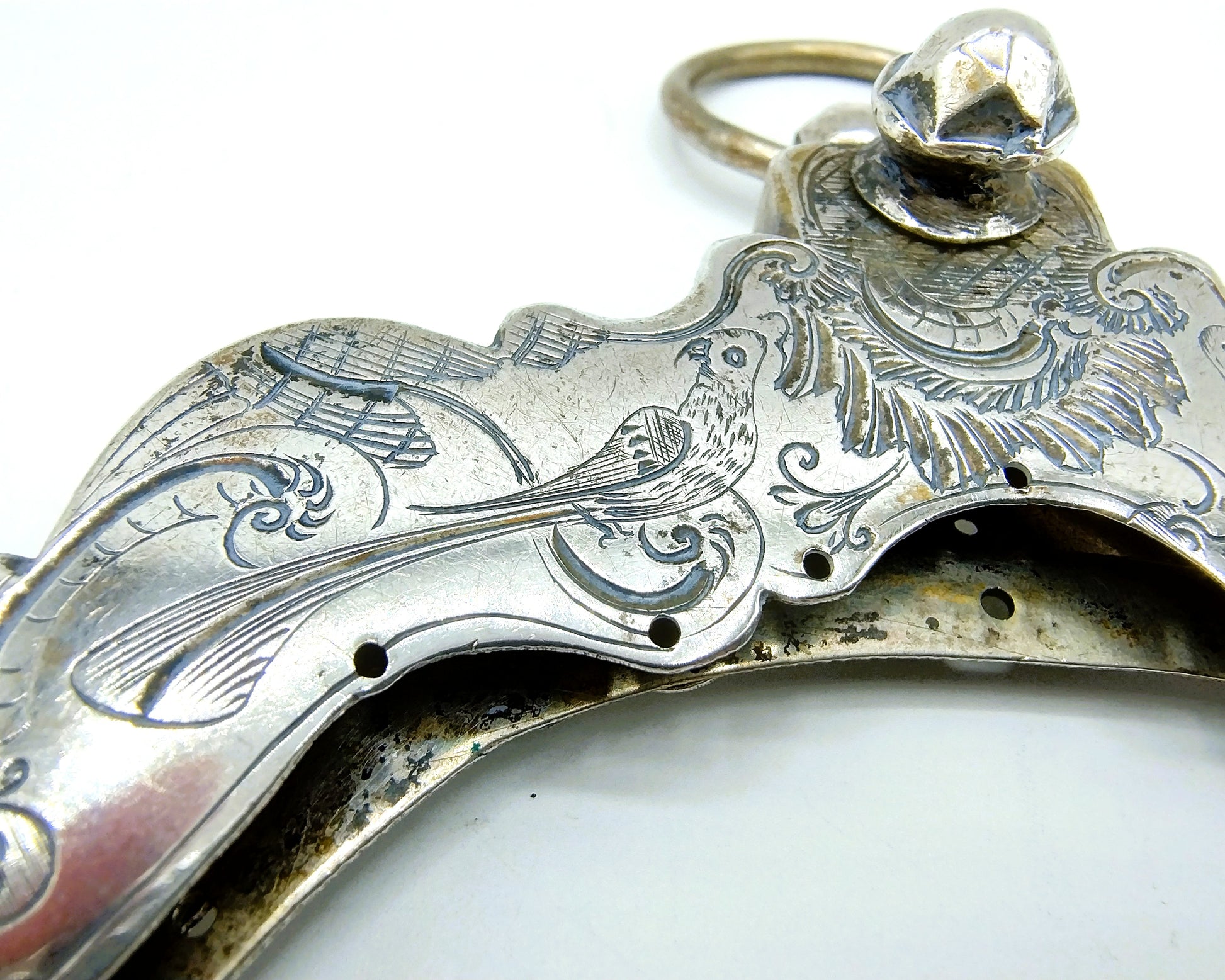 Silver purse handle (parrots), G. Swaantjes, Schoonhoven, 1789