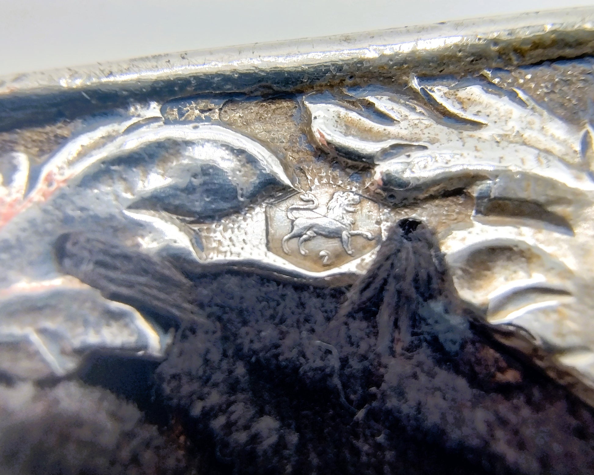 The silver bracket is hallmarked with the second grade hallmark, date letter G for 1916 Minerva head and master hallmark WB for W. Brehm from Heusden / Schoonhoven.
