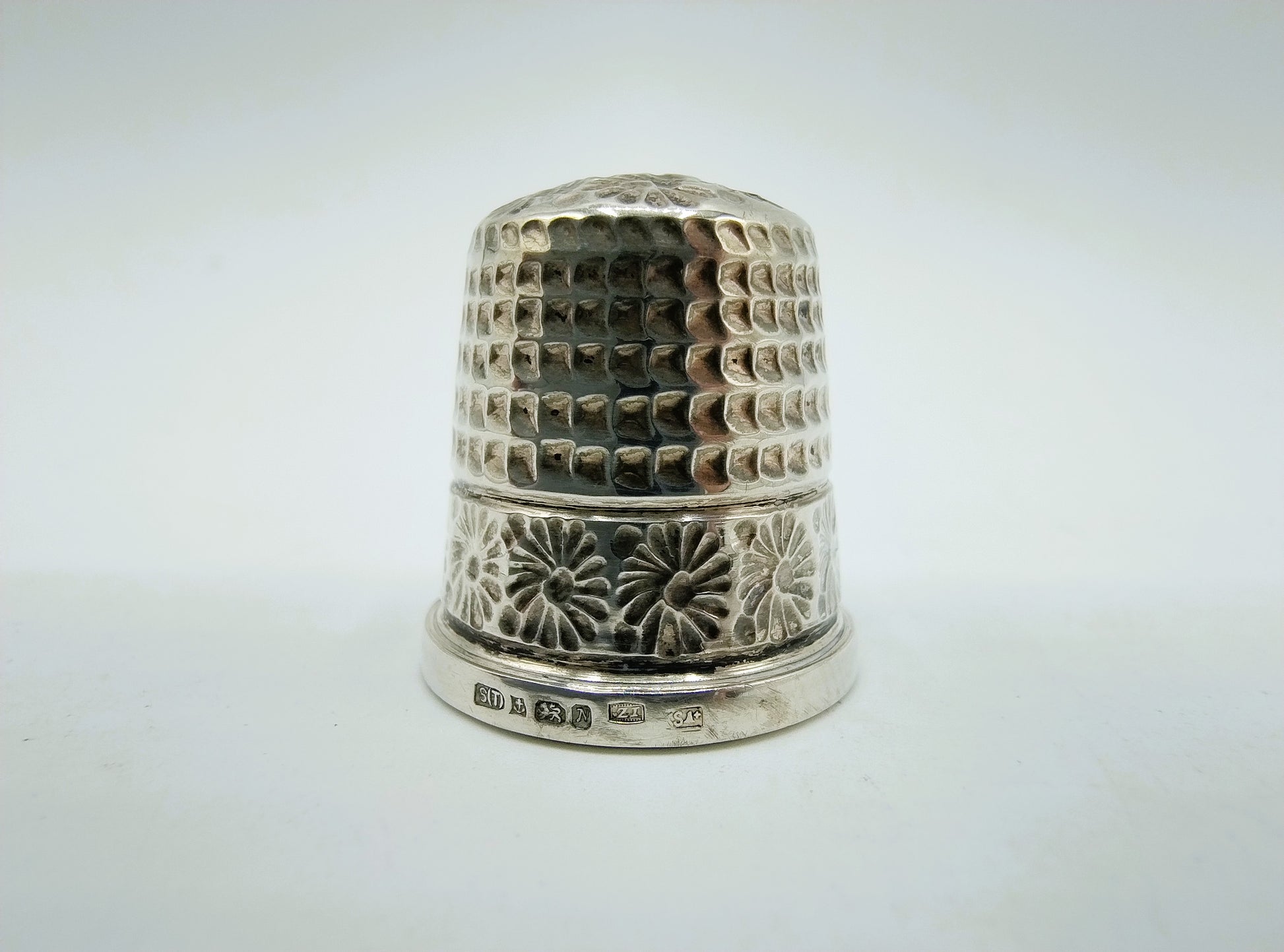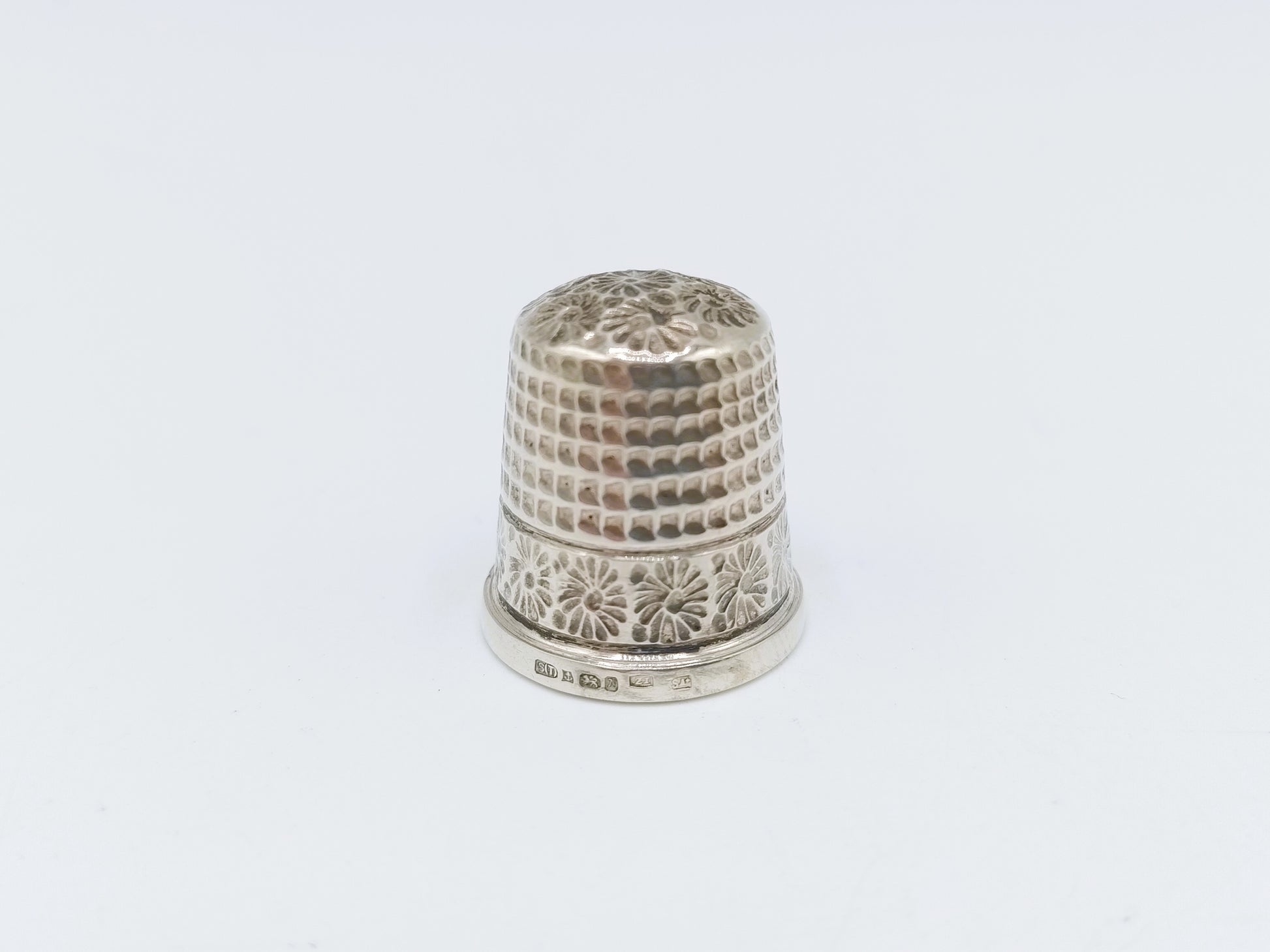 Silver thimble, originating from England.