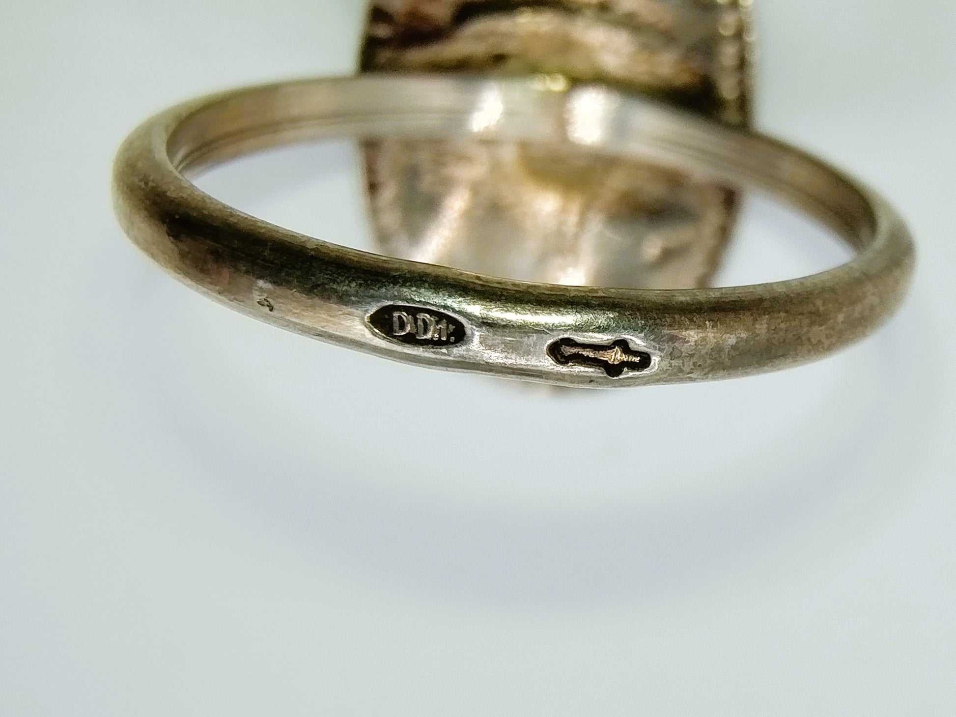 The ring is hallmarked with the master mark DD1 and the sword for at least 2nd grade silver.