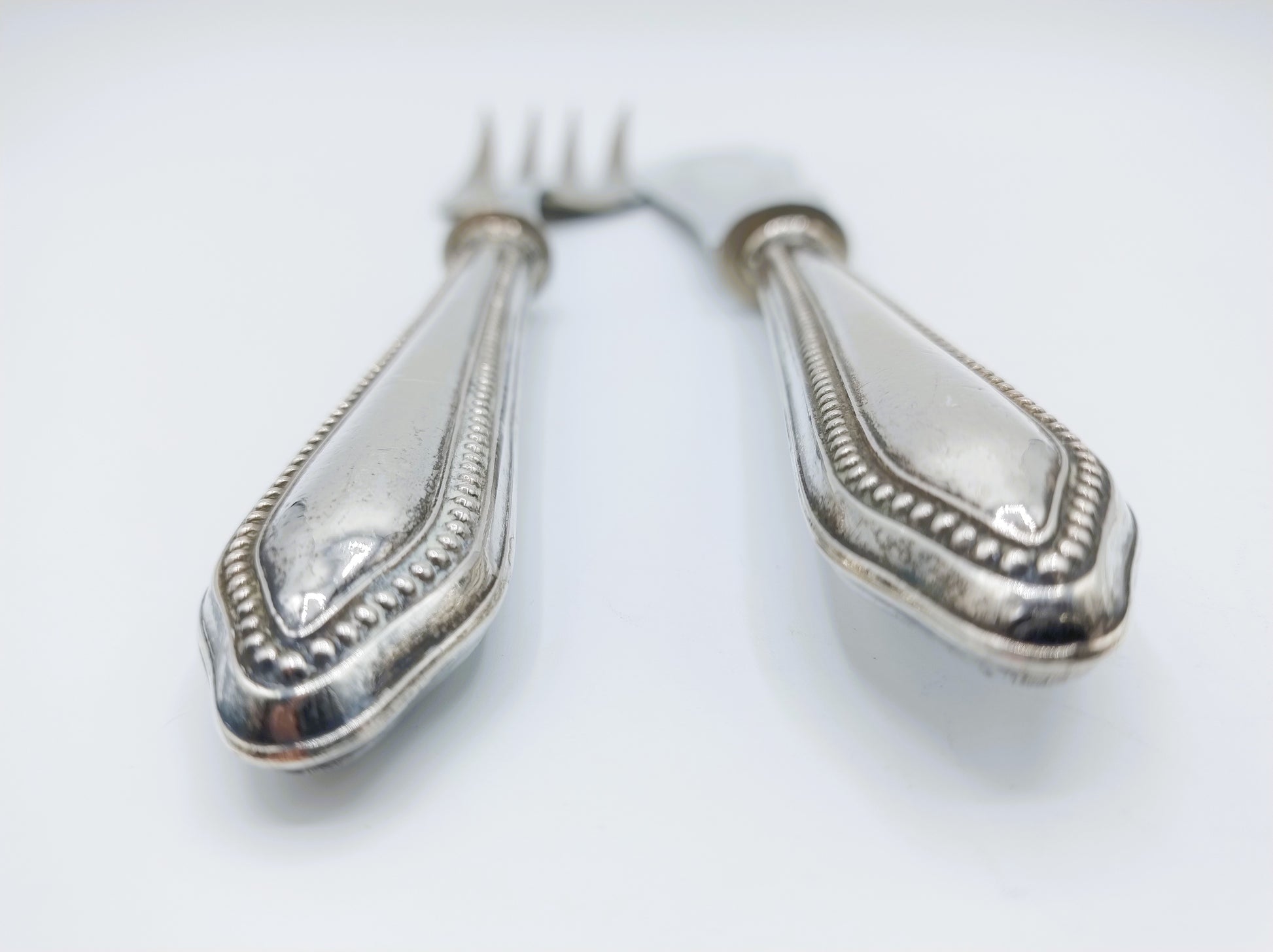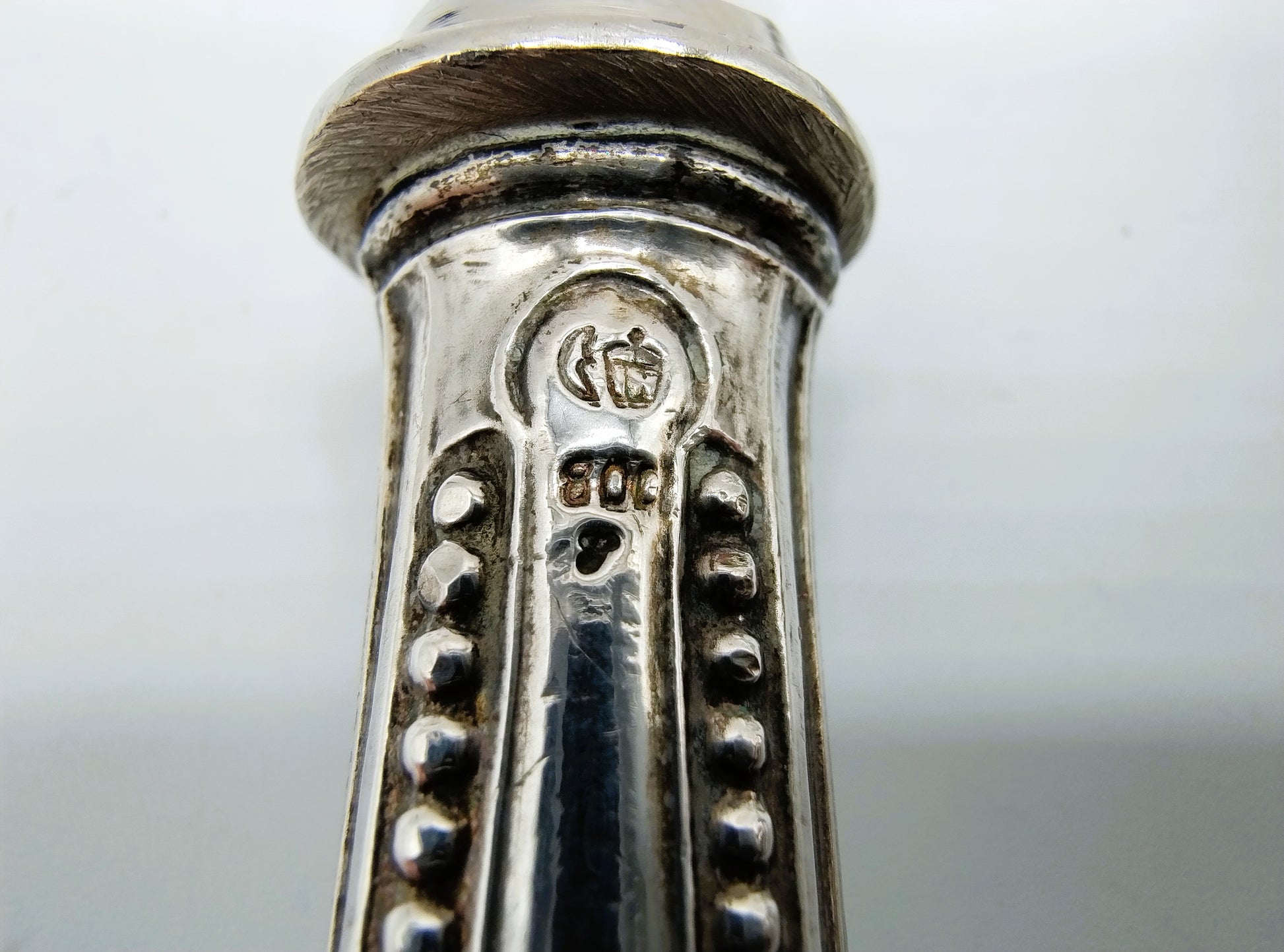 The handles are marked with German hallmarks, half moon, crown, 800 for 3rd grade silver and master hallmark fZm.