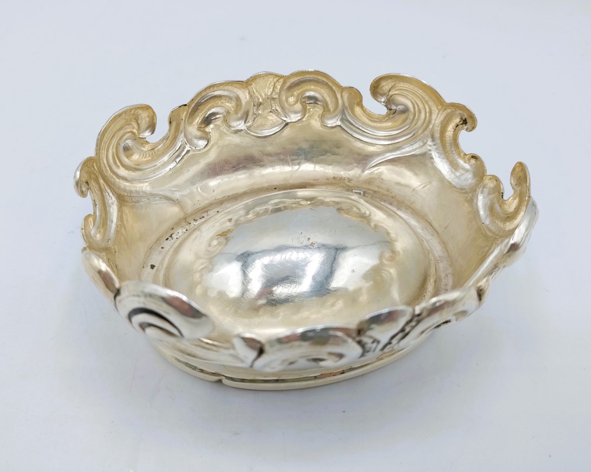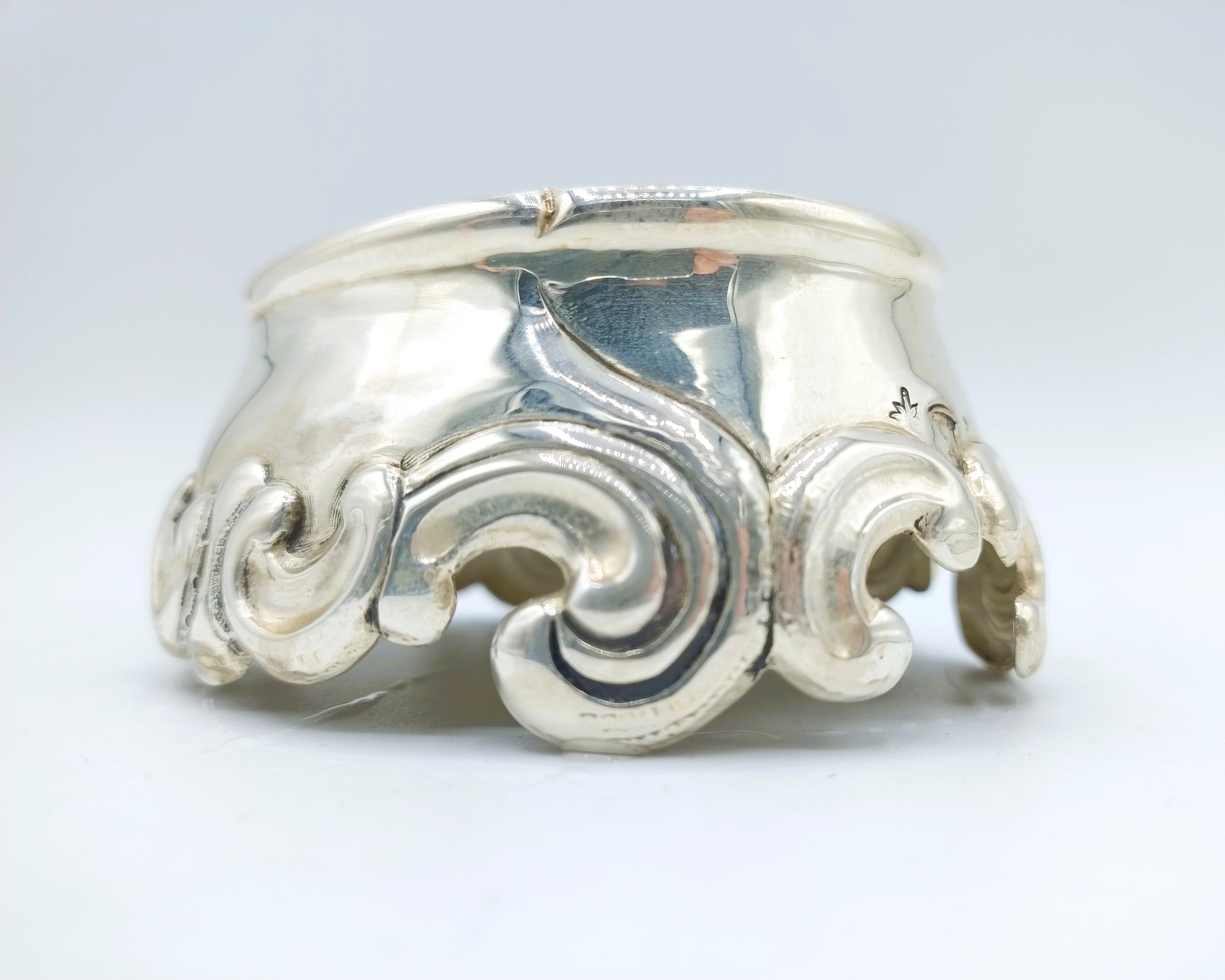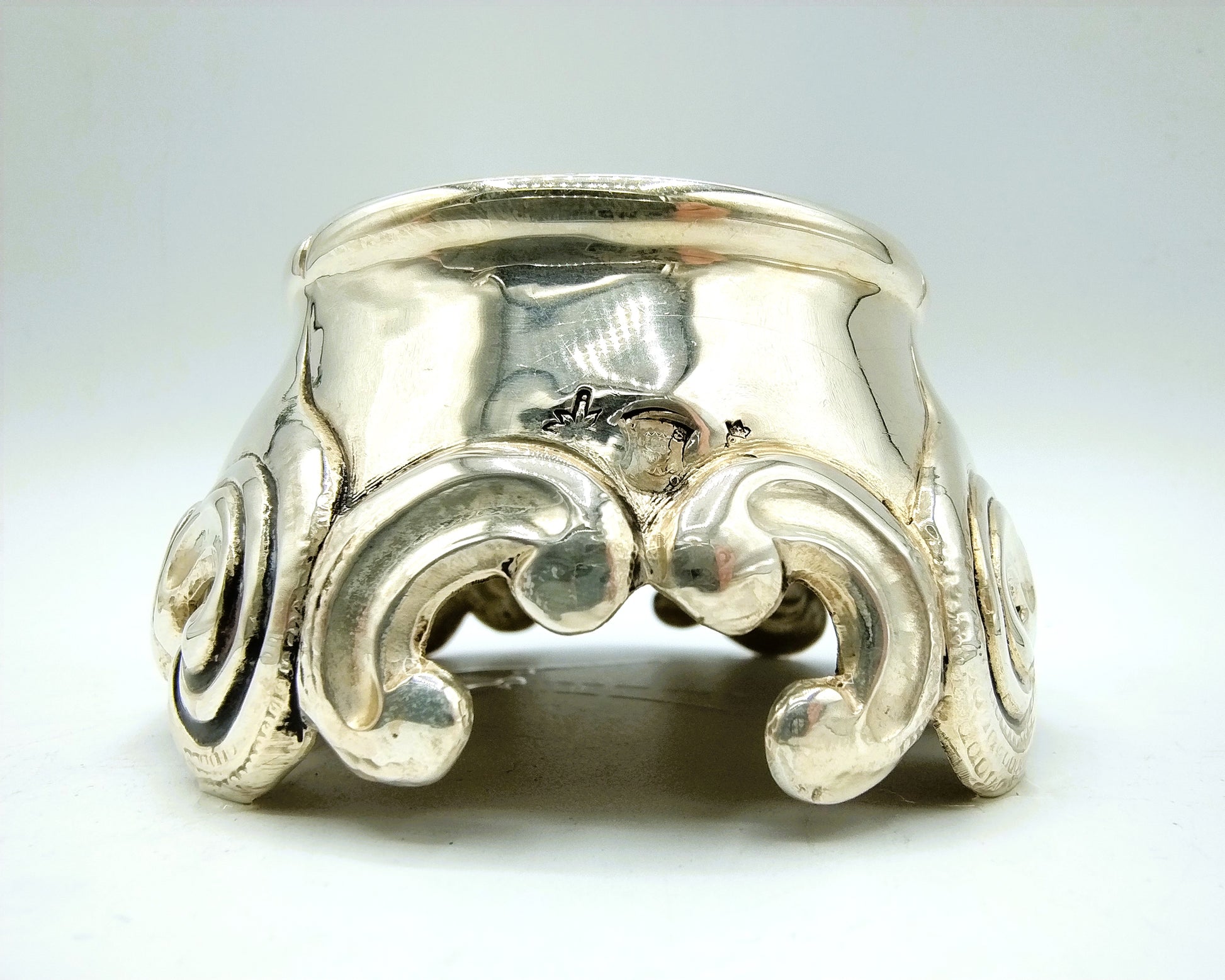 Silver salt cellar, probably made in France. Approved with various marks, including city mark, master mark and unknown mark.