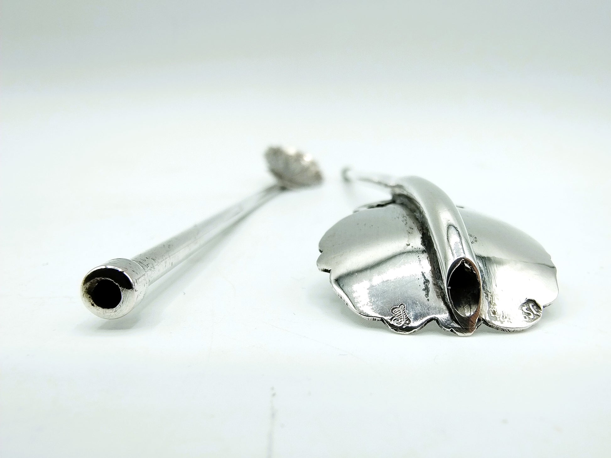 2 Zilveren cocktail rietjes, Nederland, 20e eeuw