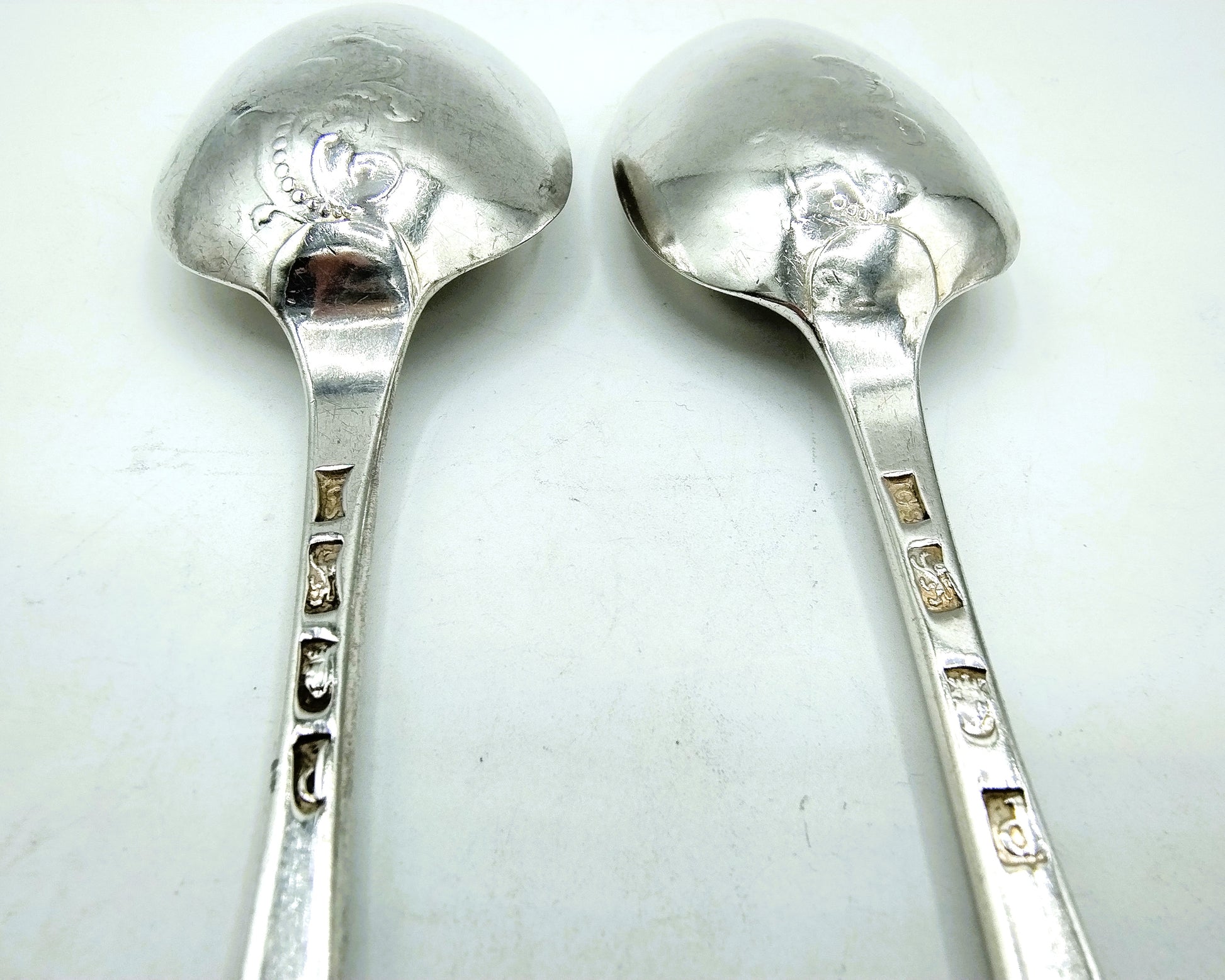De lepels zijn gekeurd met meesterkeur GS, Stadskeur Londen, Engelse leeuw en jaarletter P voor 1830