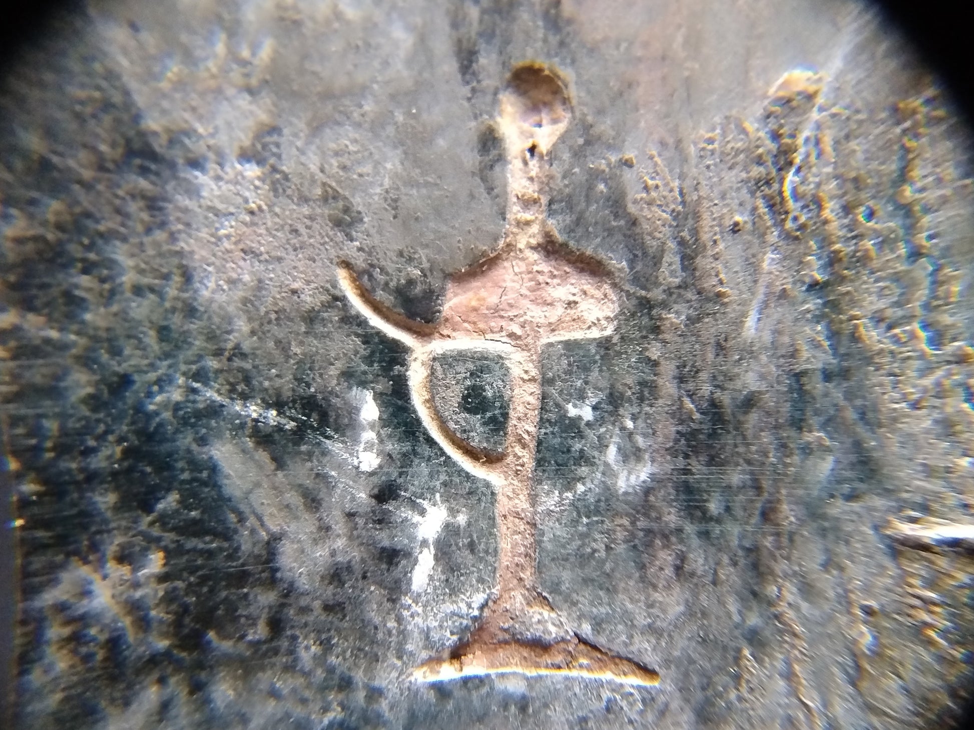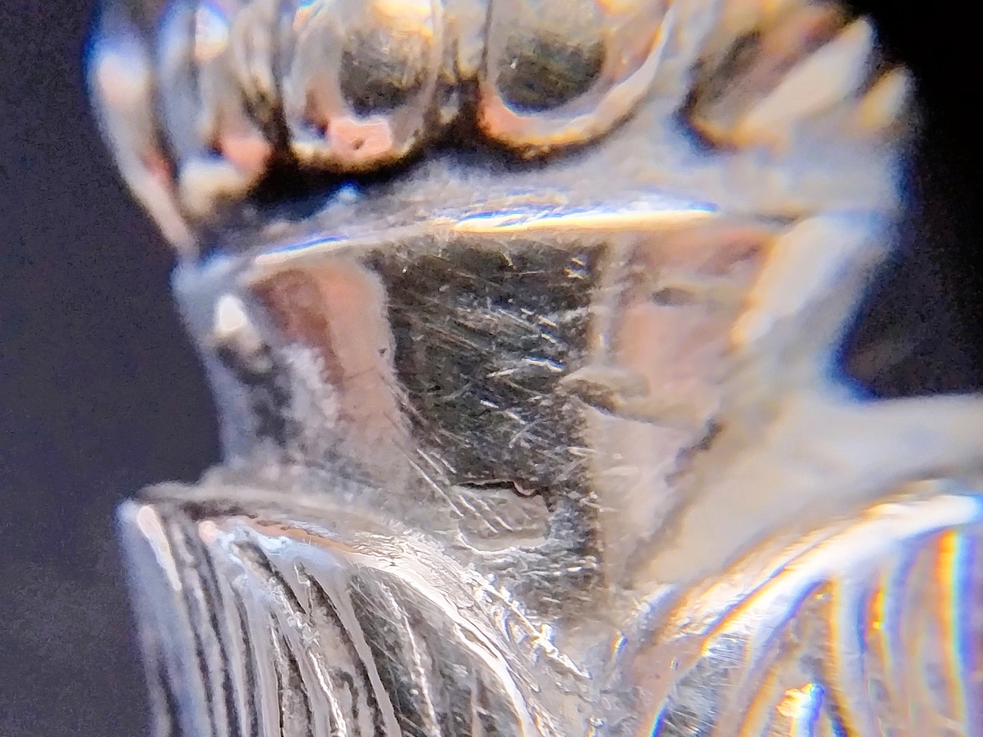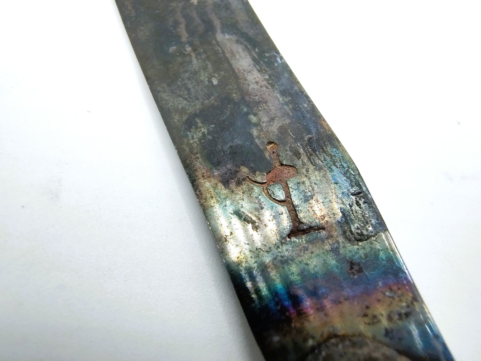Het mesheft is gekeurd met het wolfskopje en 880 voor het gehaltekeur.