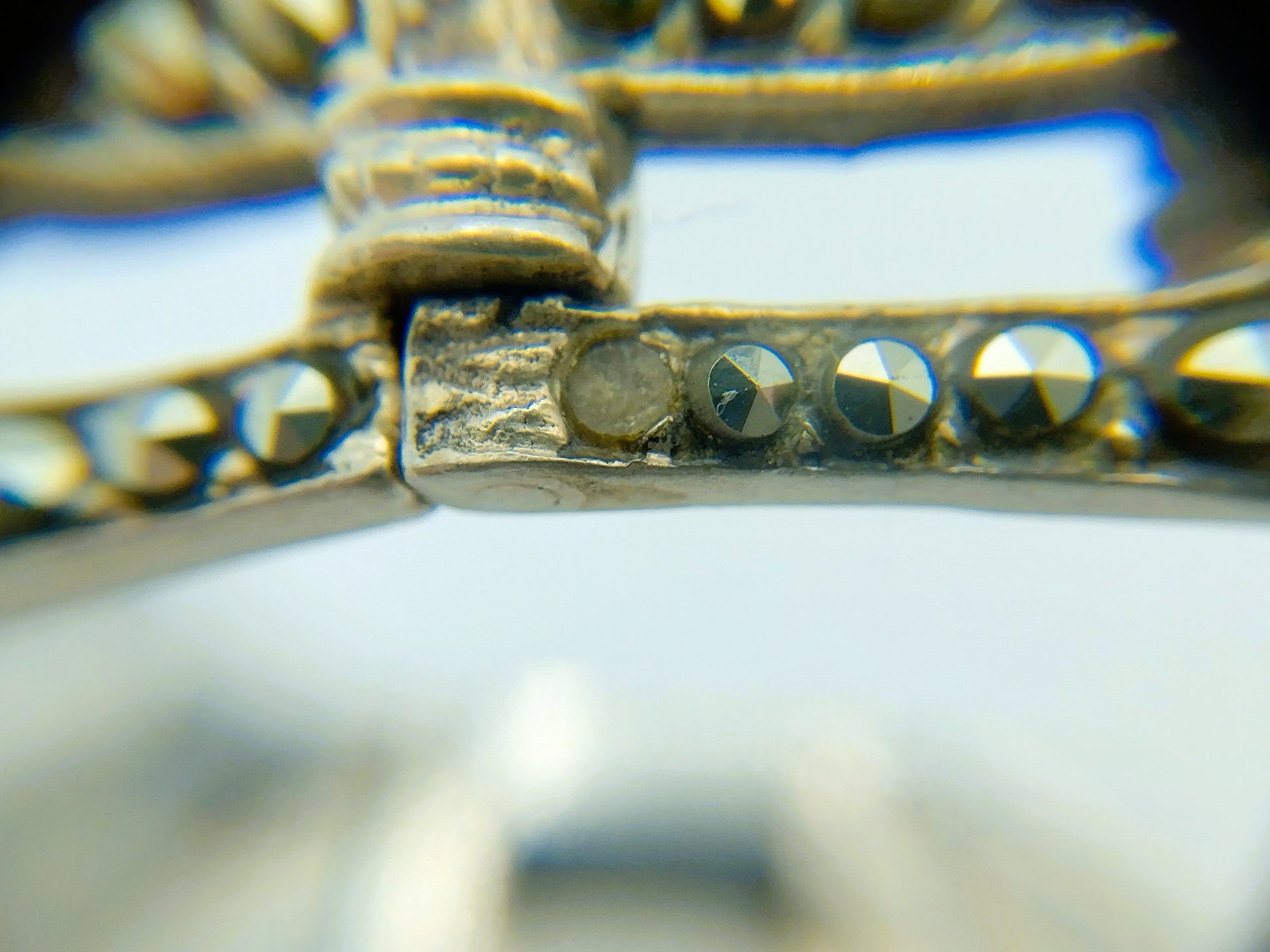 Er ontbreken een aantal markasietjes op verschillende schakels. 5 In totaal.