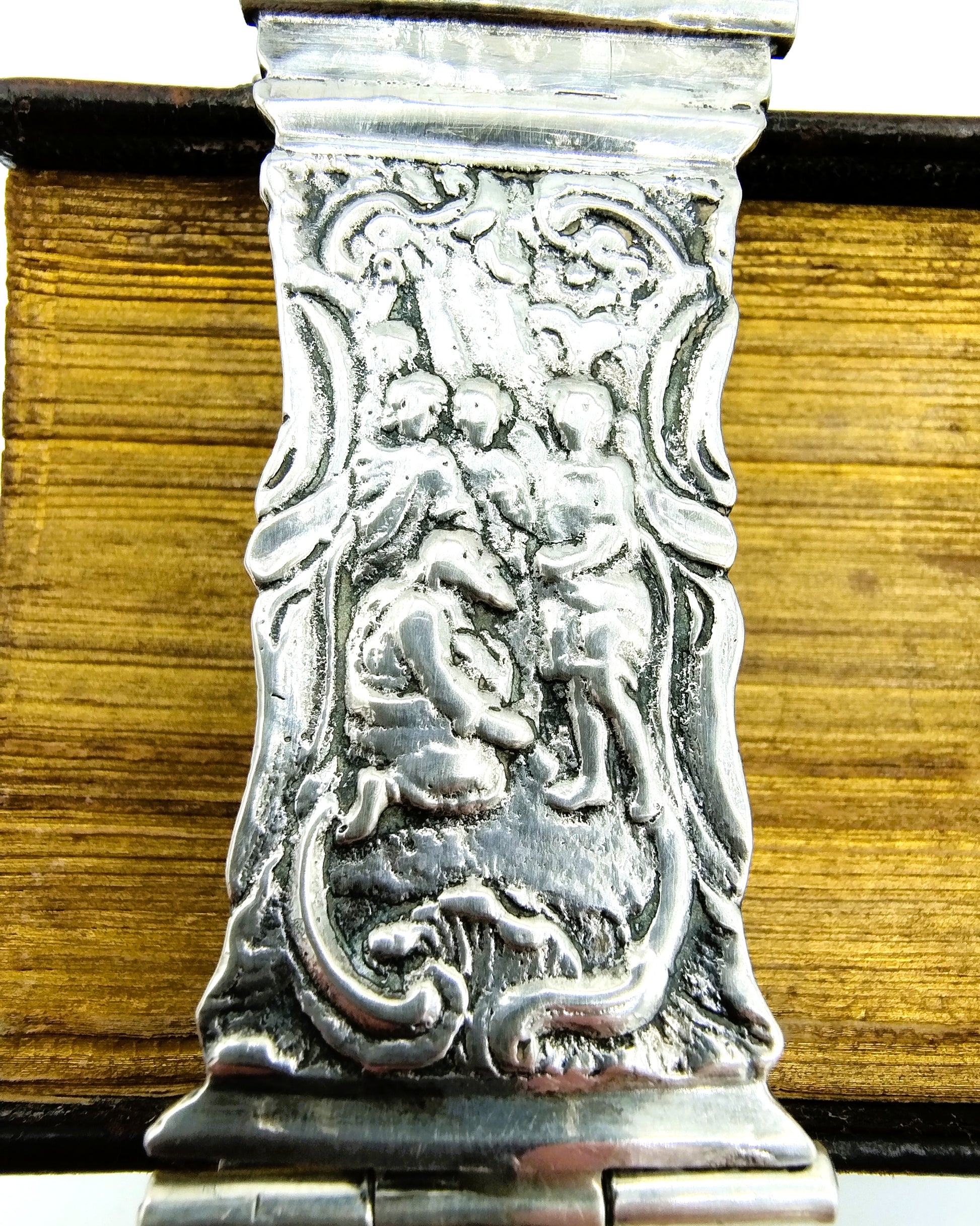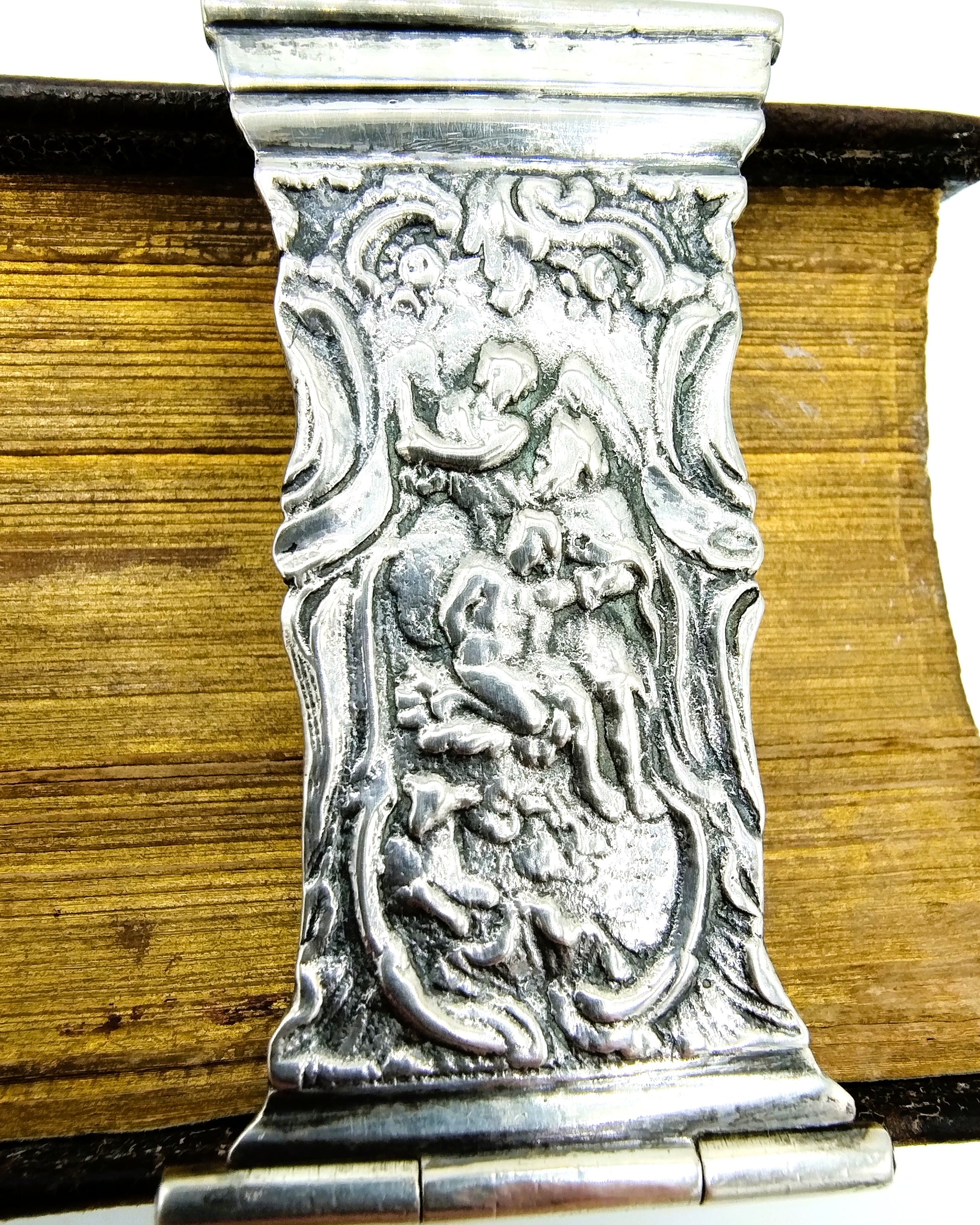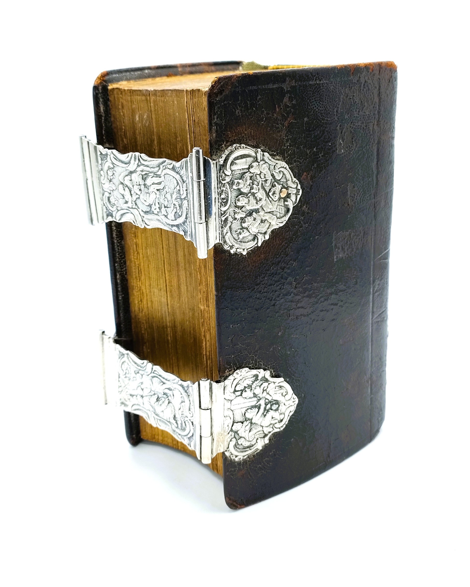 De bijbel is voorzien van 2 zilveren sloten. Op één zilveren klamp staat 1829 gegraveerd op de andere de initialen van de eigenaar.