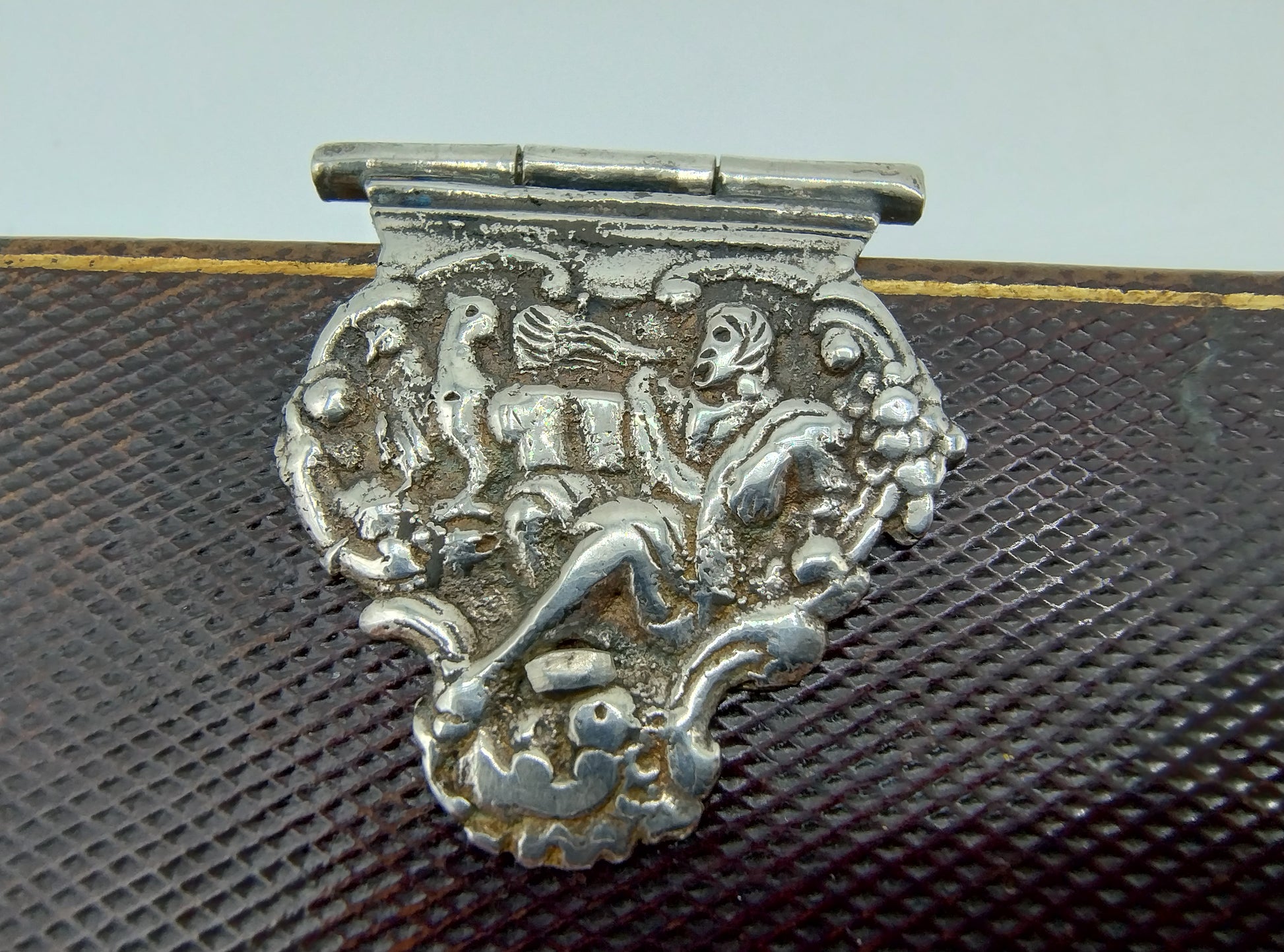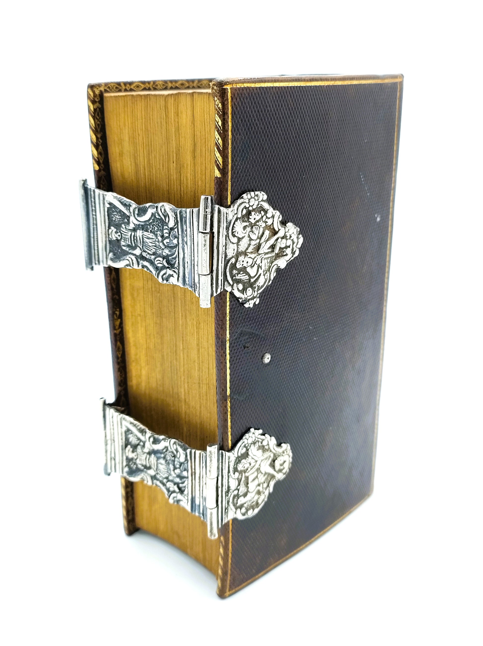 De Bijbel is gebonden in een rode marokijnen band met goudopdruk.