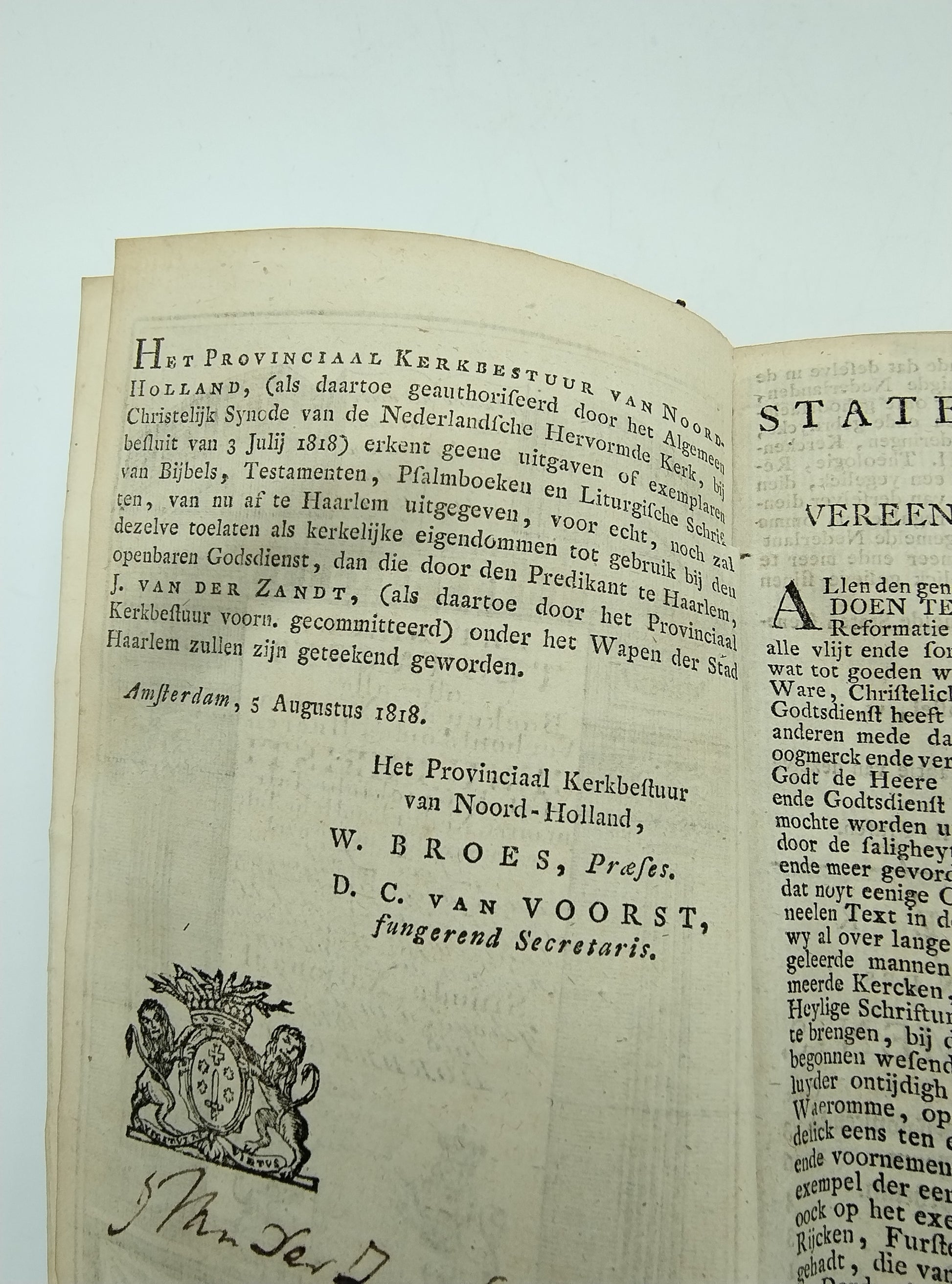Vroeg 19e eeuwse Bijbel van de uitgever: J. Brandt en zoon, P. den Hengst & Zoon, de erven Wed. F.G. onder de Linden te Haarlem. J. Enschede & Zoon uit 1818, De psalmen dateren uit 1827.