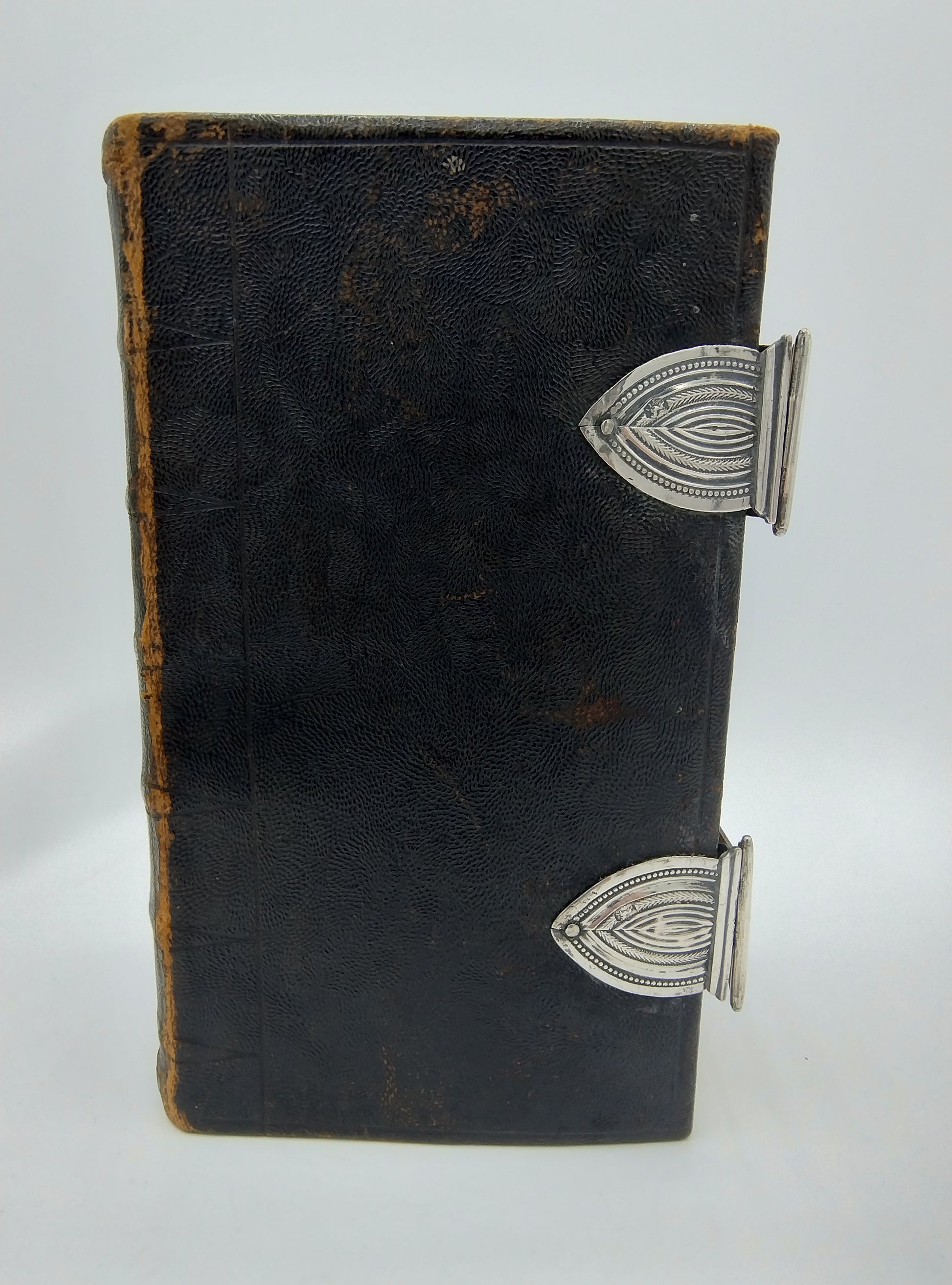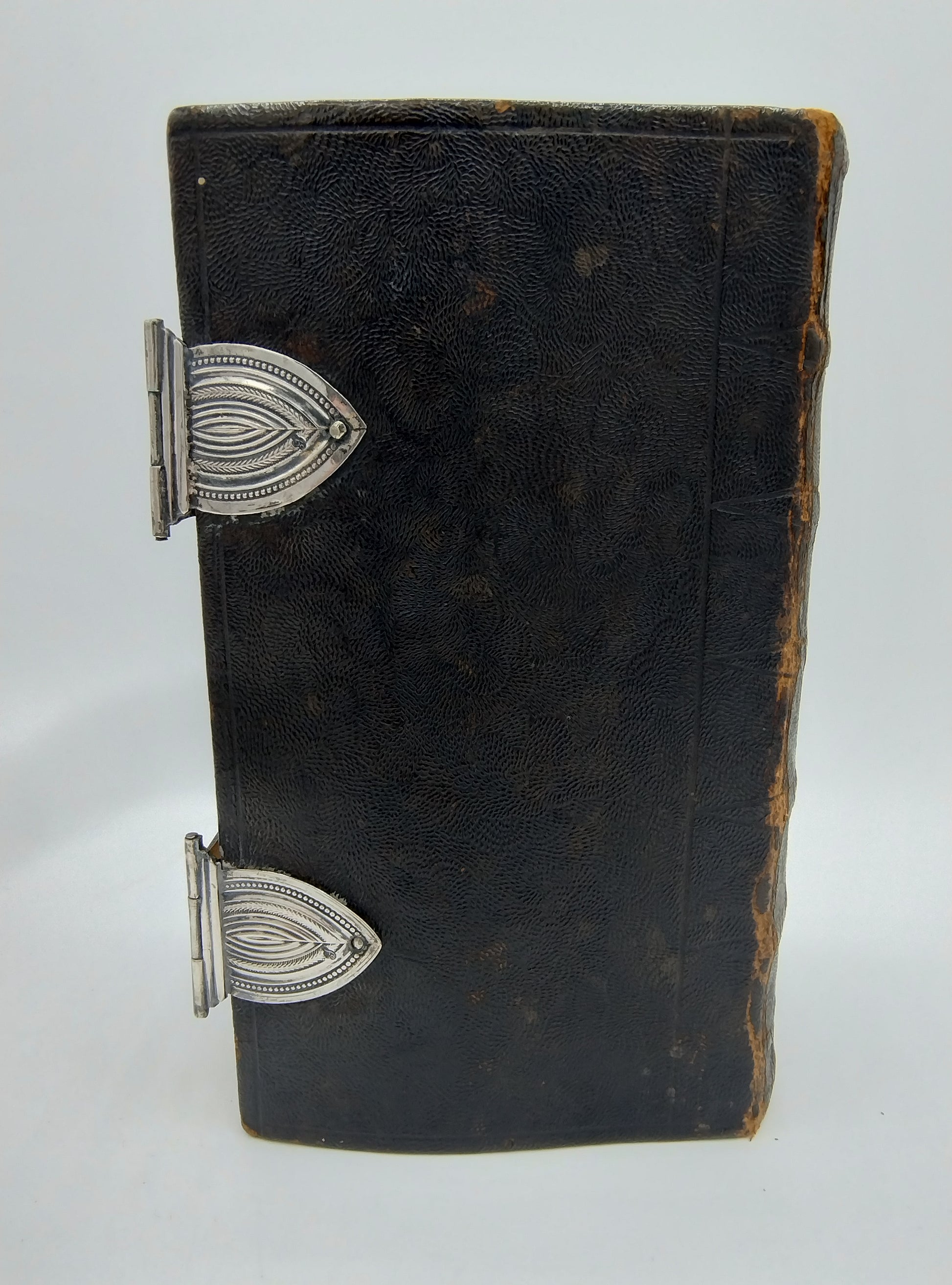 De Bijbel is voorzien van 2 zilveren sloten in Empire stijl. Aan de binnenkant staan de initialen M. K. D. G. en het jaartal 1827 gegraveerd.