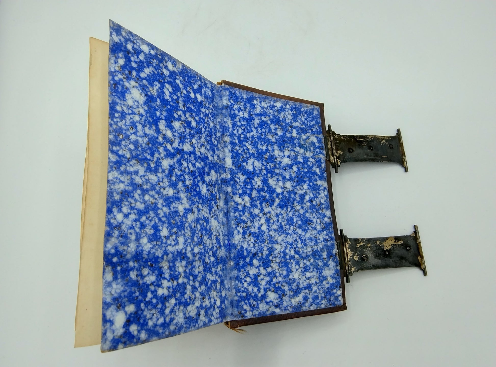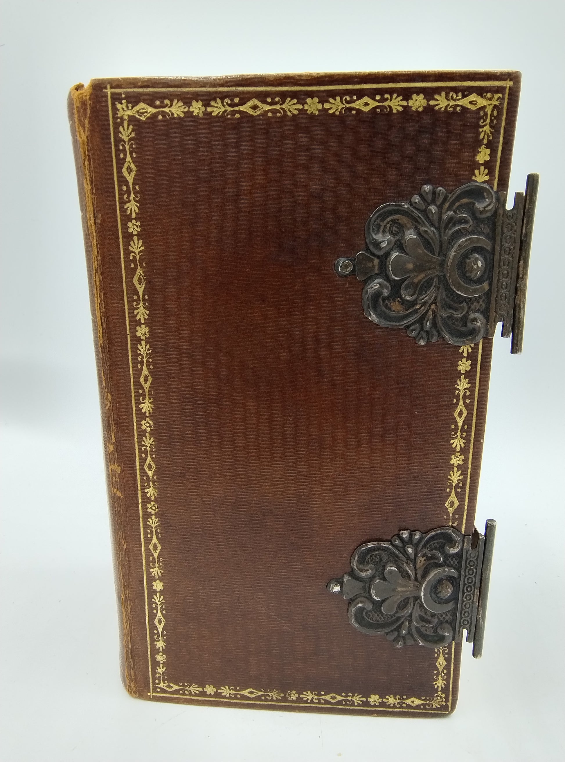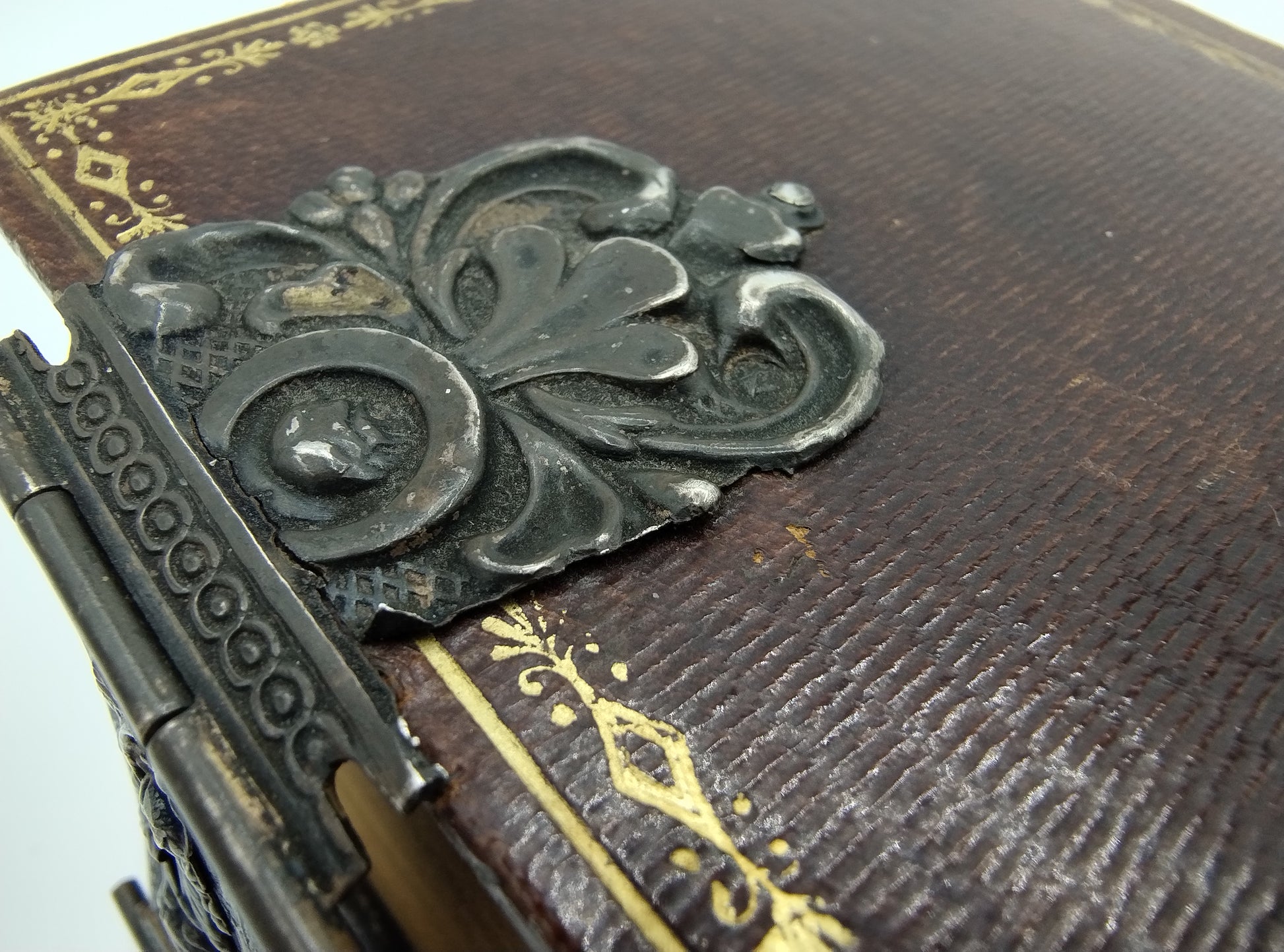 De Bijbel is voorzien van 2 zilveren sloten in Biedermeier stijl en gebonden in rood marokijn leer met goudopdruk.