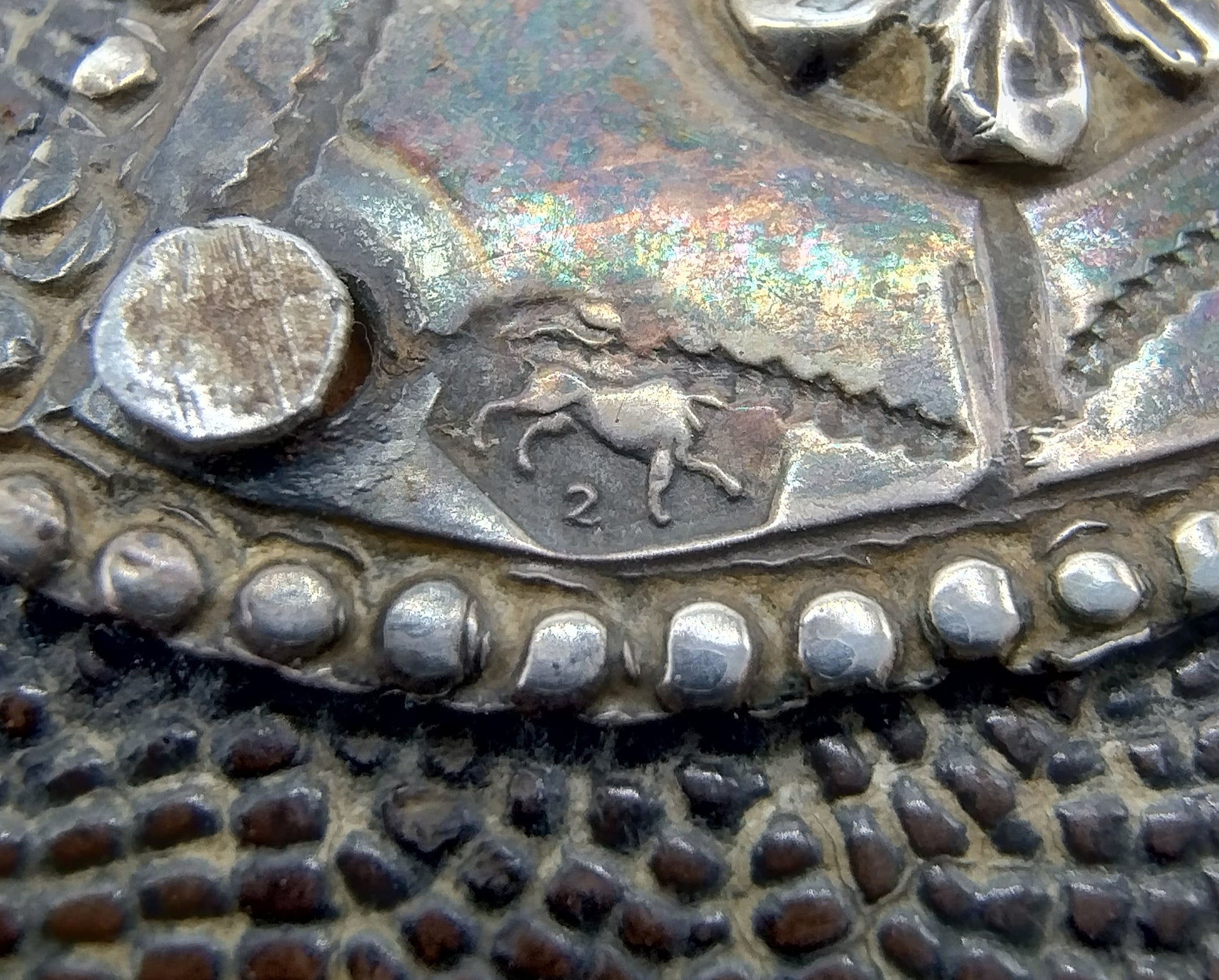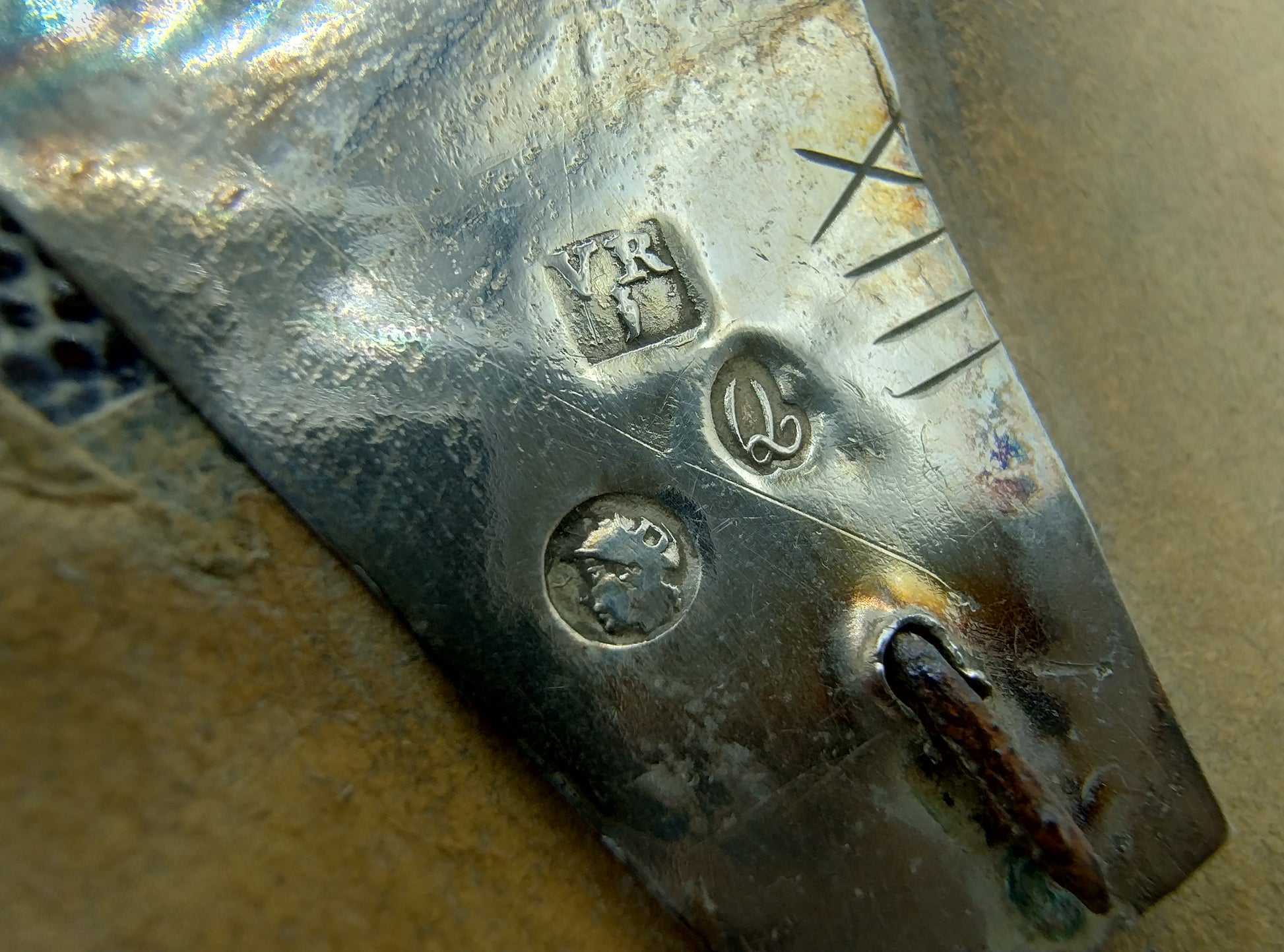 De zilveren sloten zijn gekeurd met het tweede gehalte keur, minervakopje van Rotterdam, jaarletter Q voor 1825 en meesterteken VR.