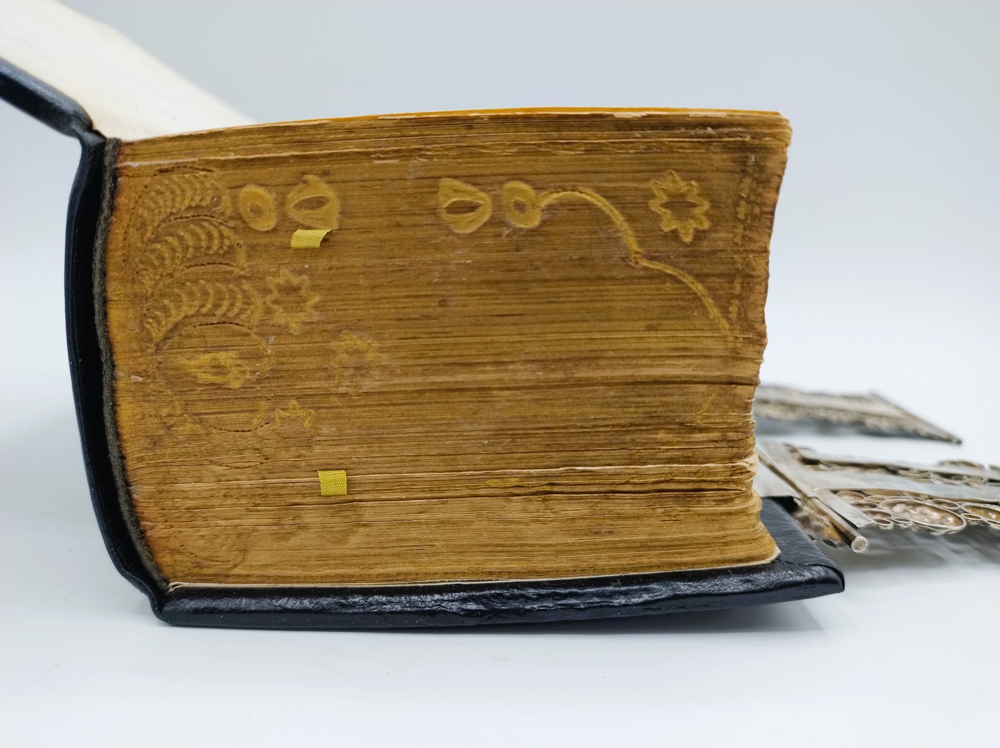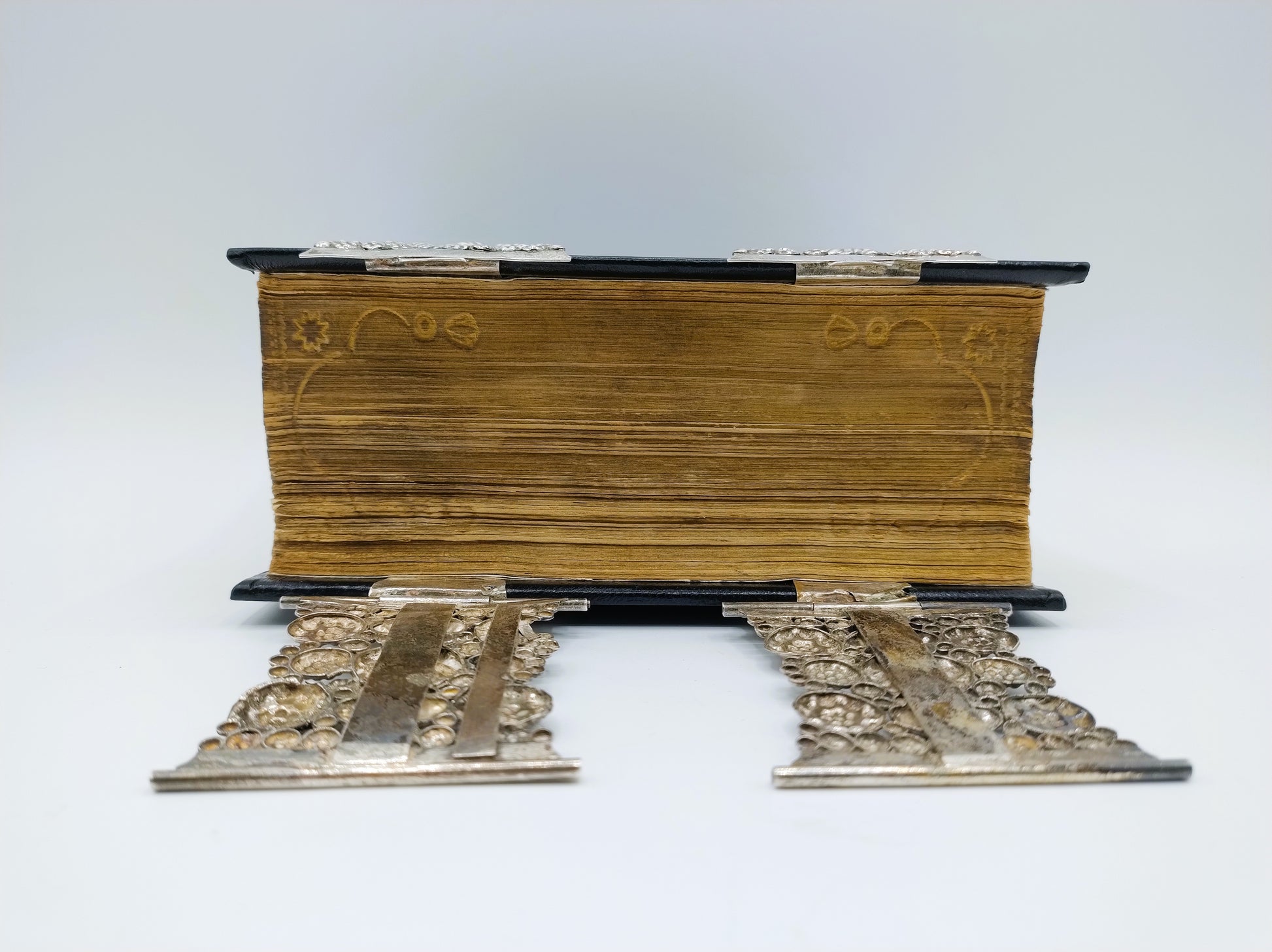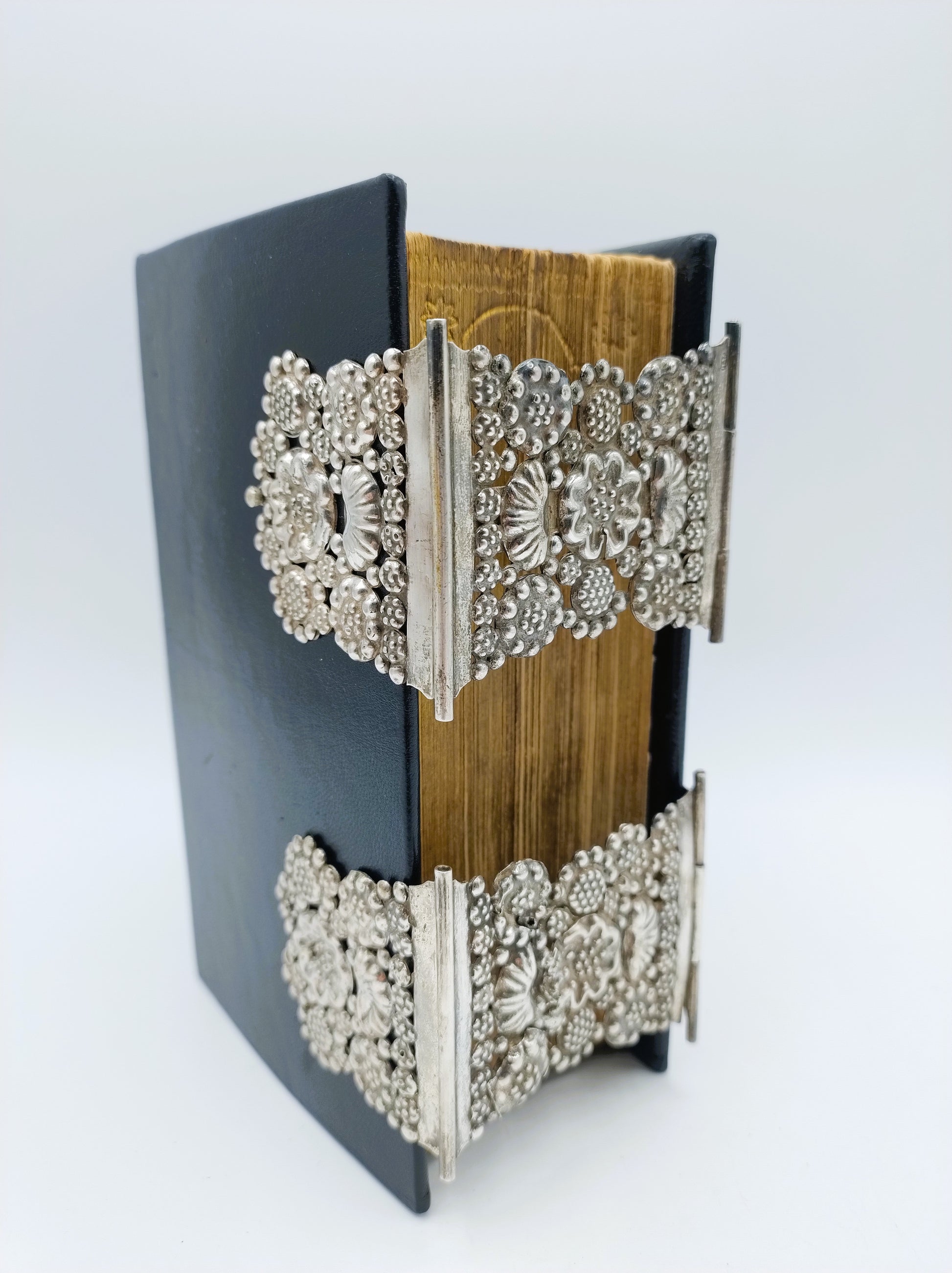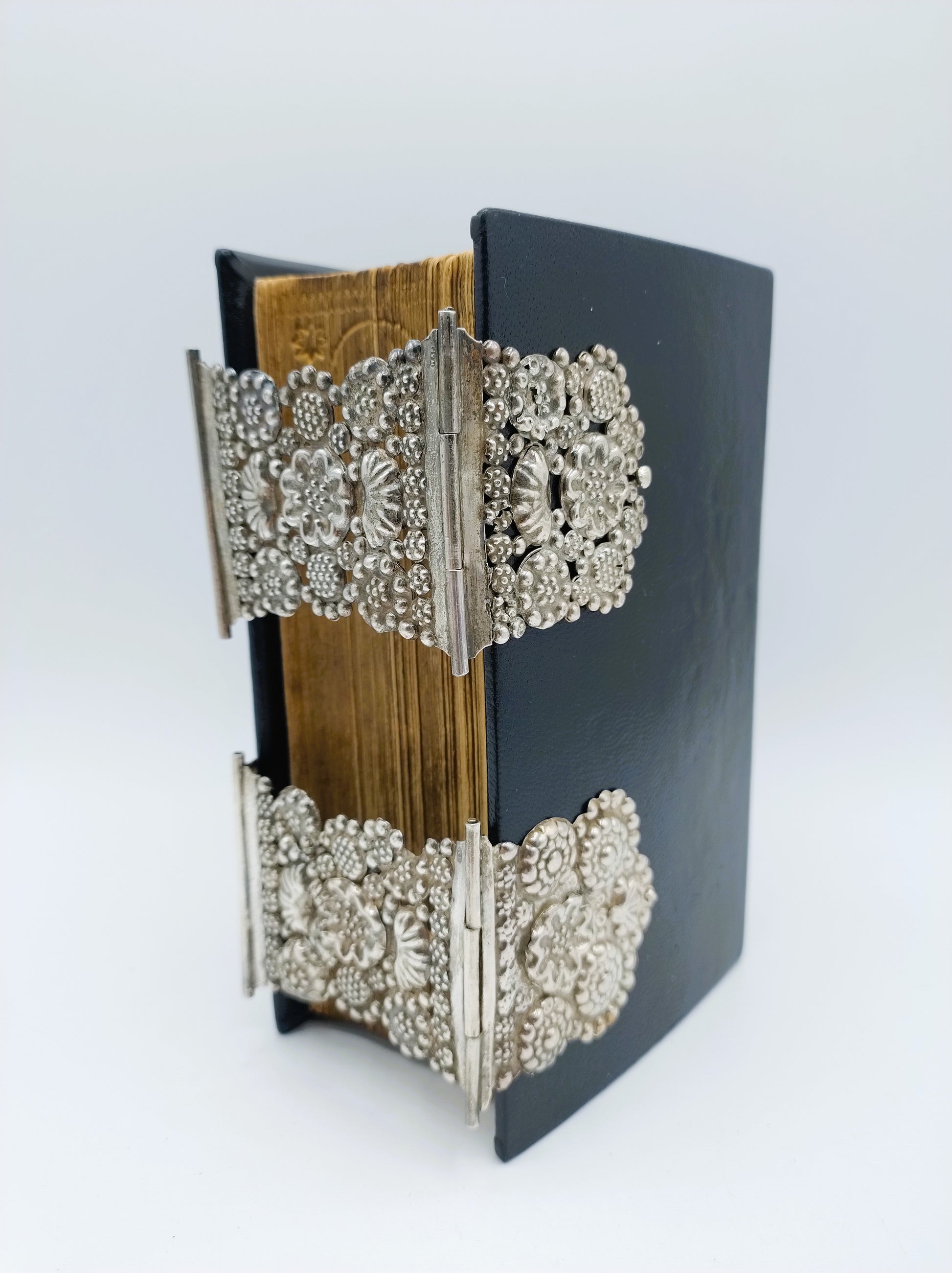 De Bijbel is voorzien van 2 robuuste zilveren sloten.