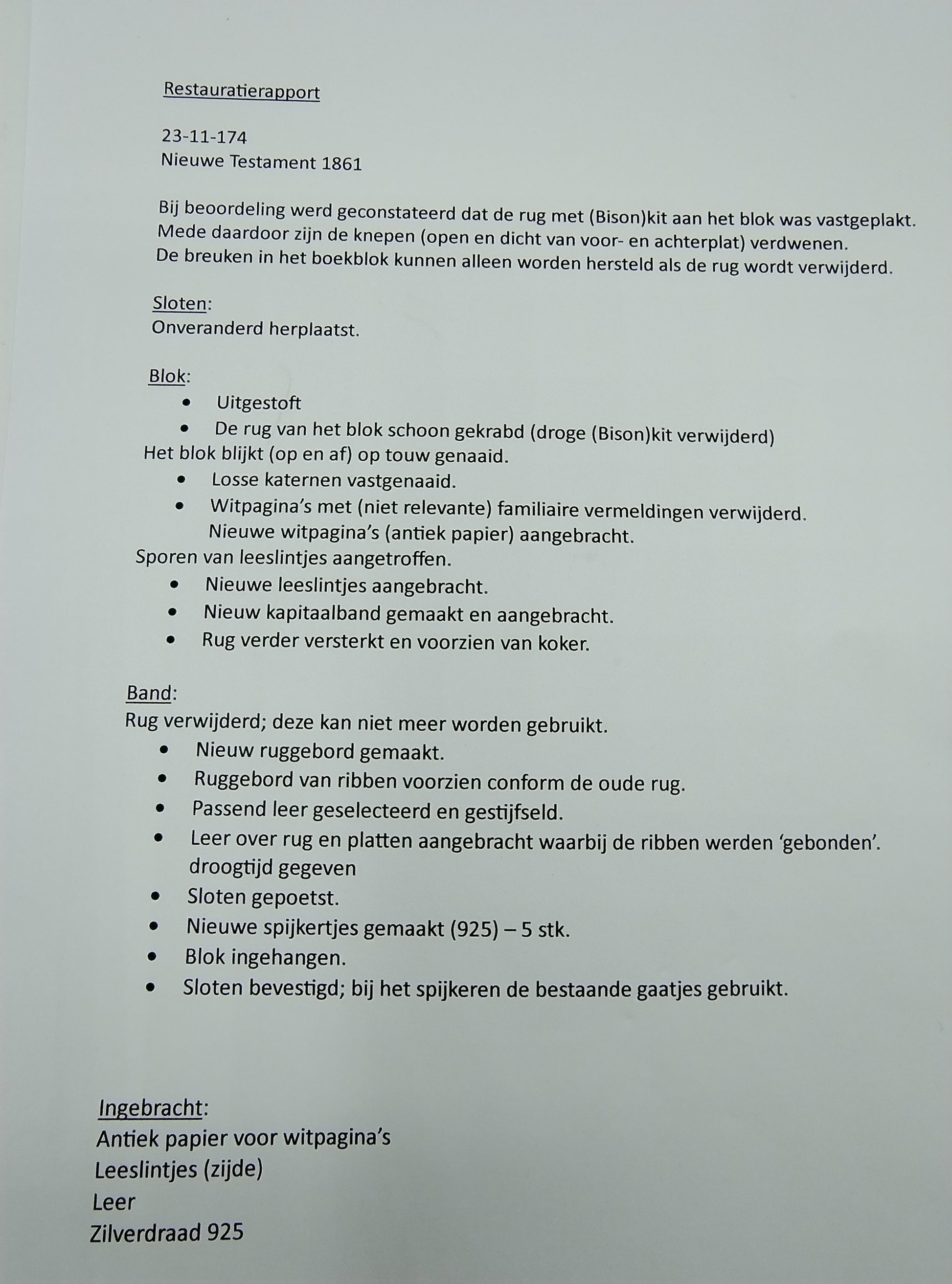 De Bijbel is gerestaureerd en daardoor in puike conditie. Het restauratierapport is bijgevoegd.