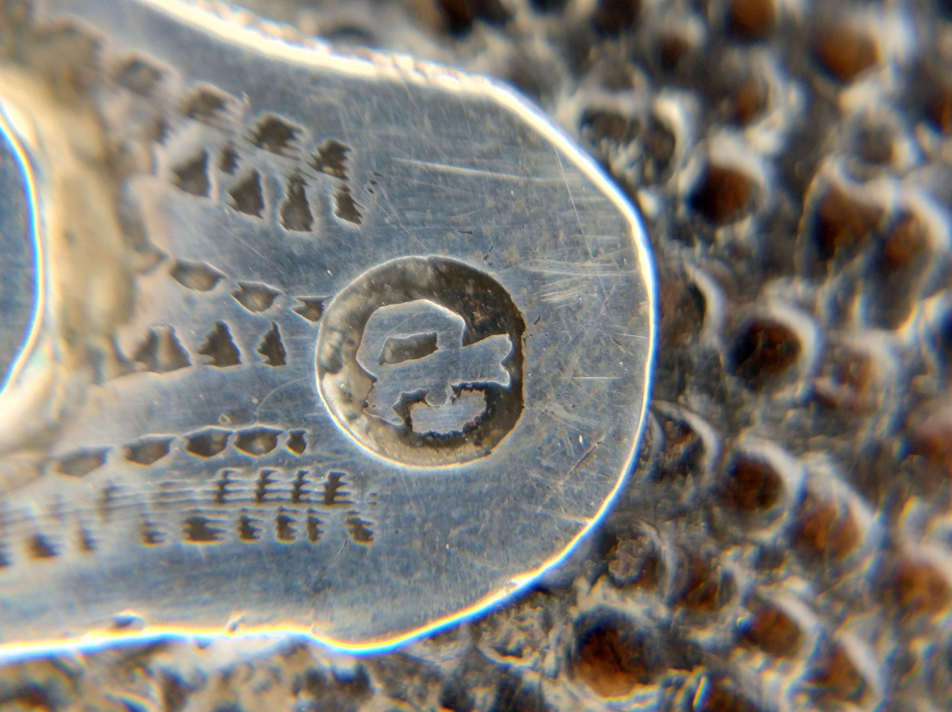 De zilveren sloten, in Biedermeier stijl, zijn gekeurd met het tweede gehalte keur, minervakopje van Schoonhoven en jaarletter p voor 1874.