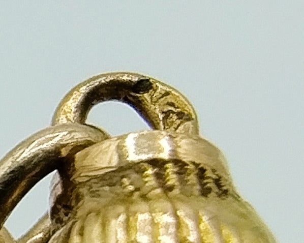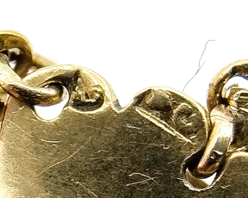Het gouden slot is gekeurd met het eikenblad voor 14 karaats goud en een moeilijk leesbaar meesterkeur. Datering ca. 1880. Op het slot is een cabochon geslepen bloedkoraal gezet.