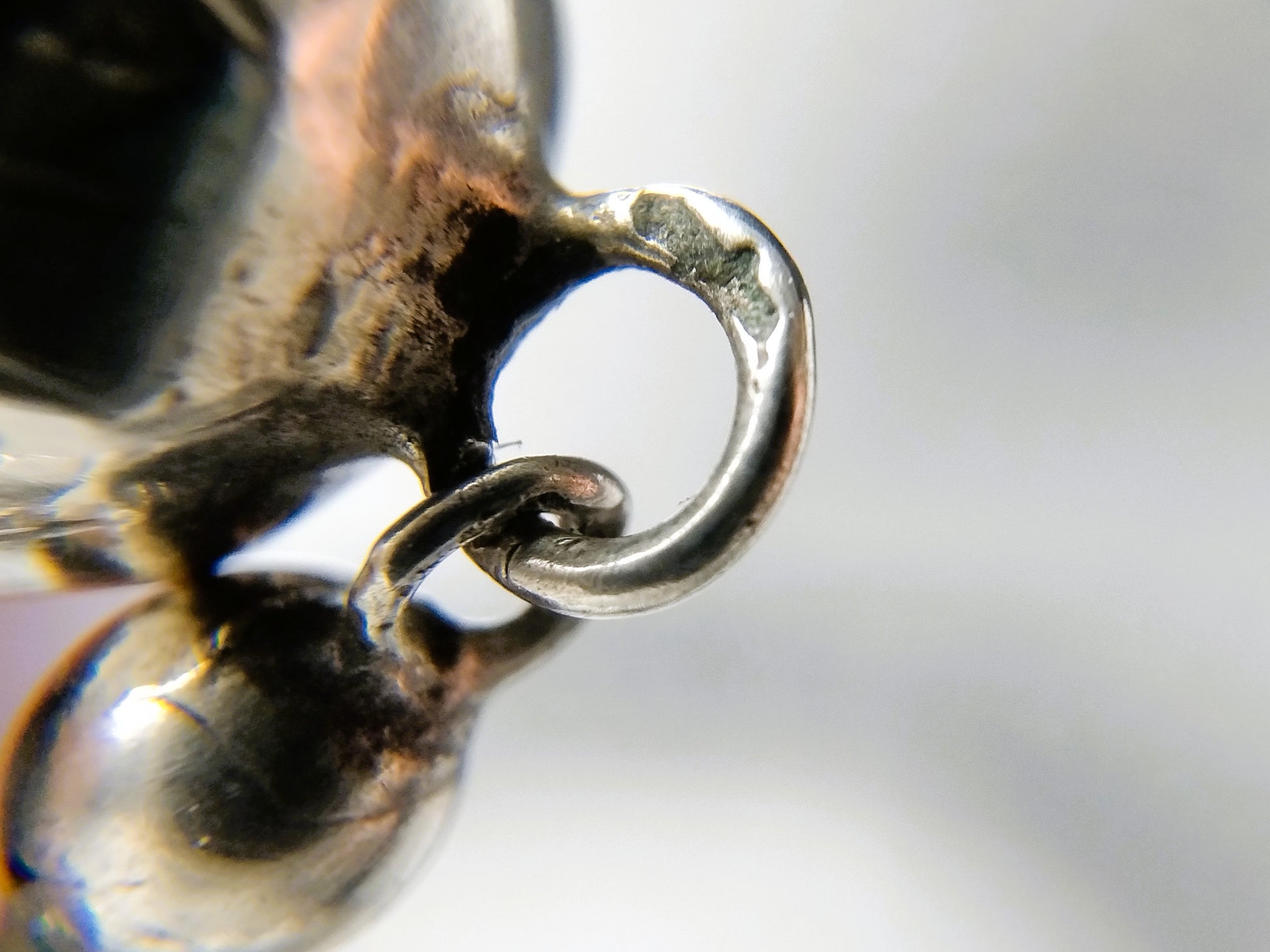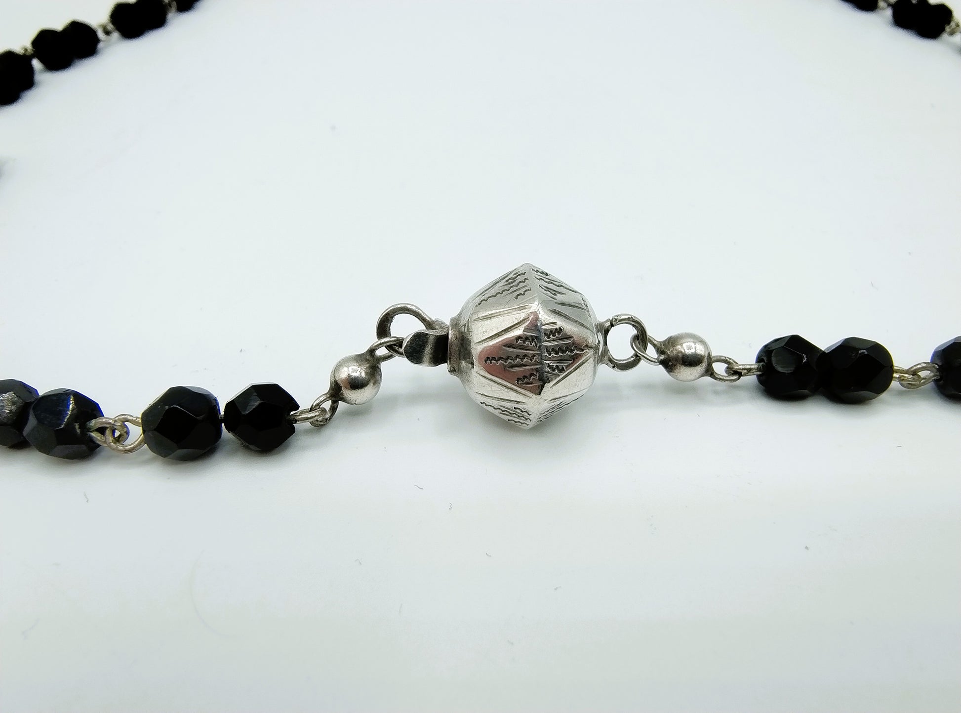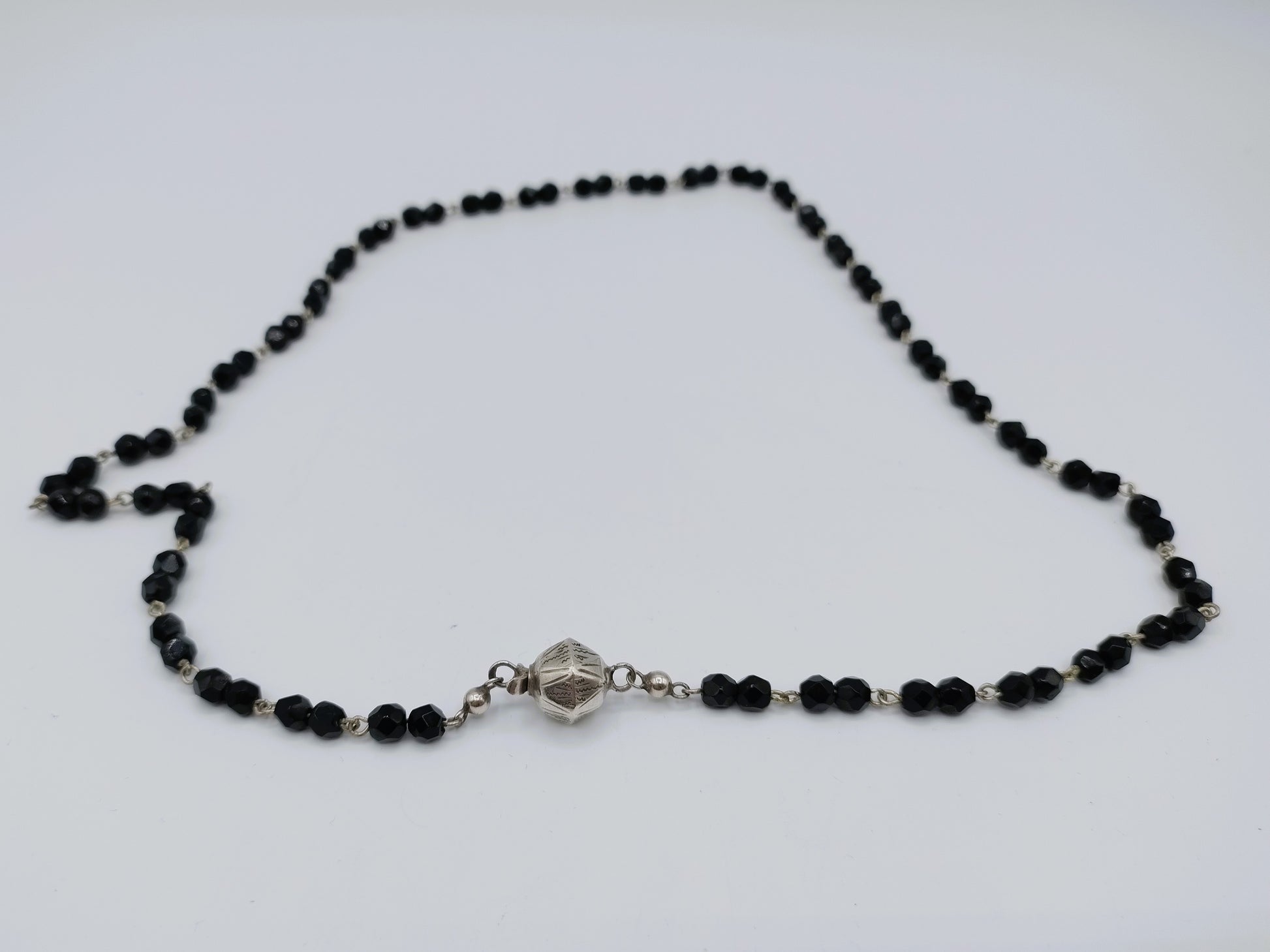 Gitten ketting op zilverdraad geregen met een zilveren bolslot gemaakt door de zilversmid A. de Groot uit Schoonhoven. Hij was werkzaam tussen 1882 en 1936.