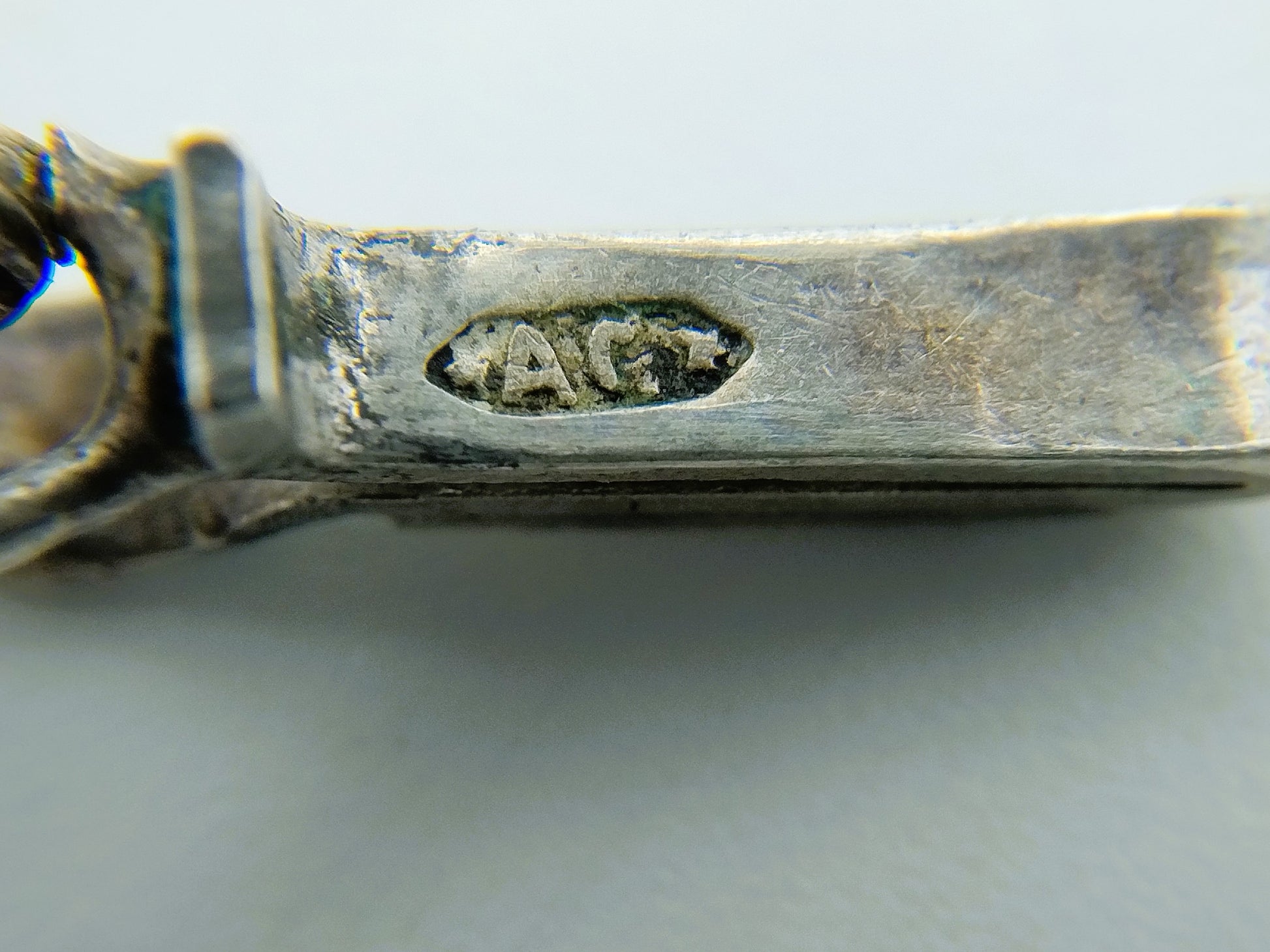 Het slot is gekeurd met 835 voor tweede gehalte zilver en het meesterteken *AG*.
