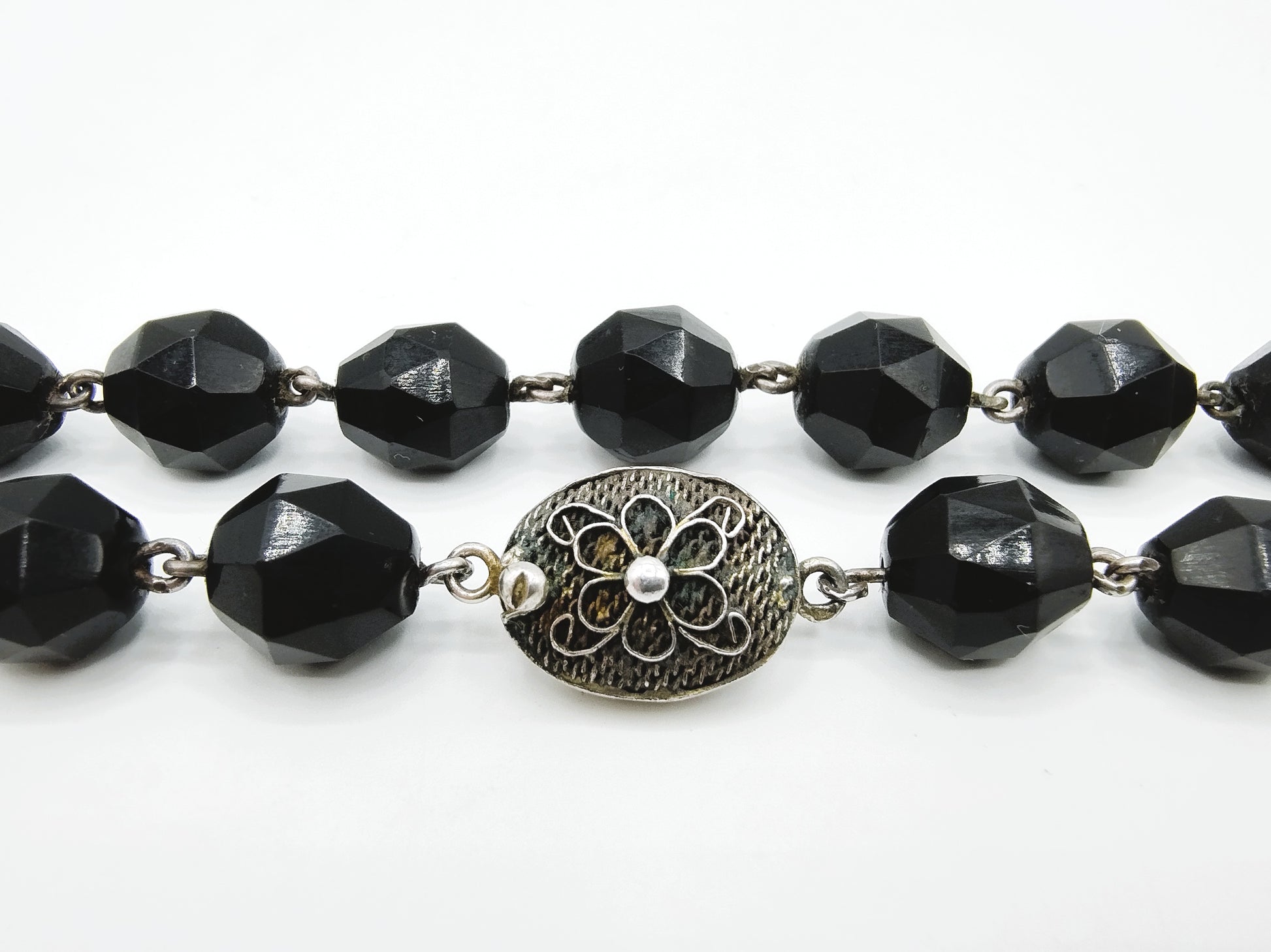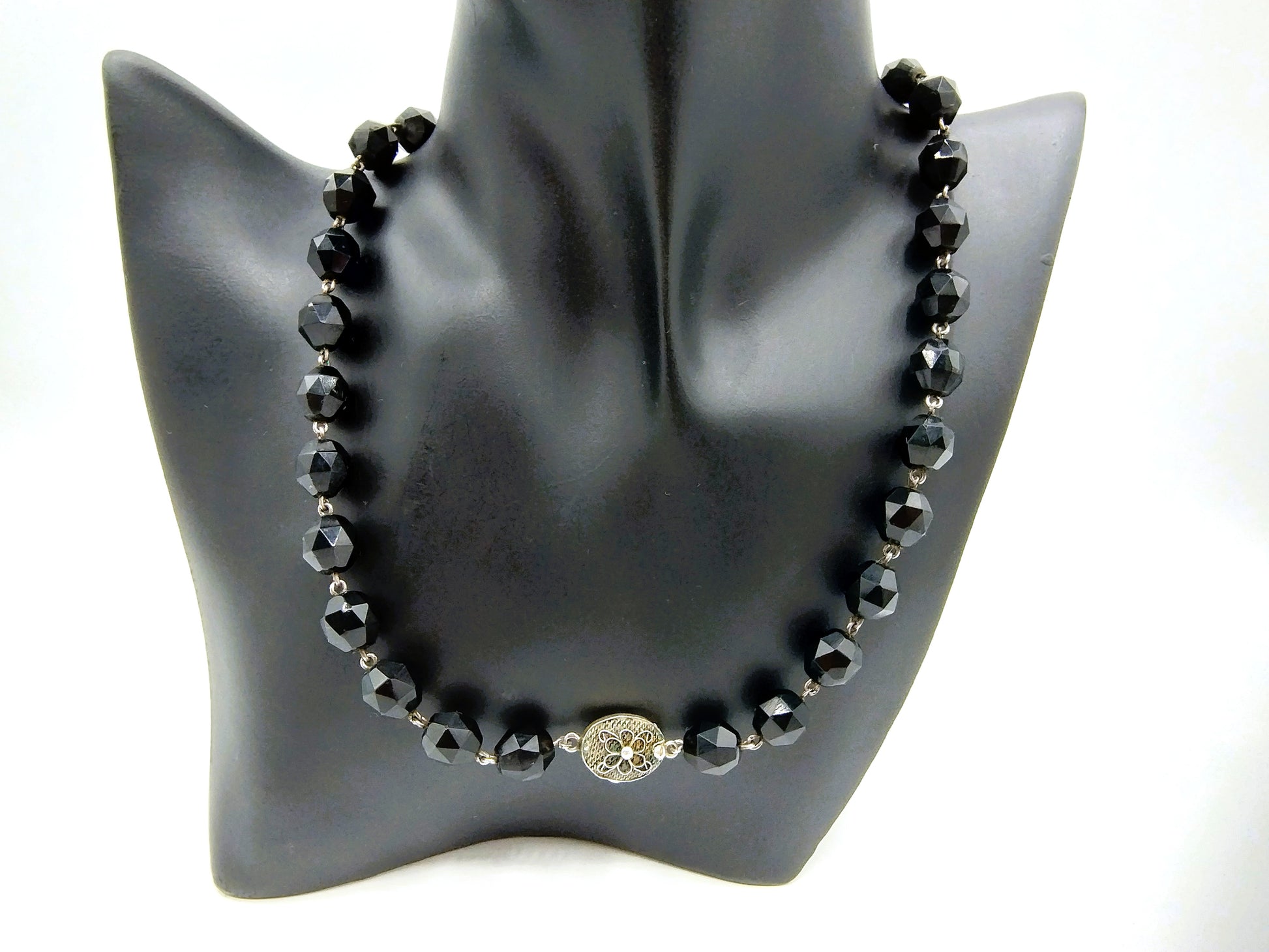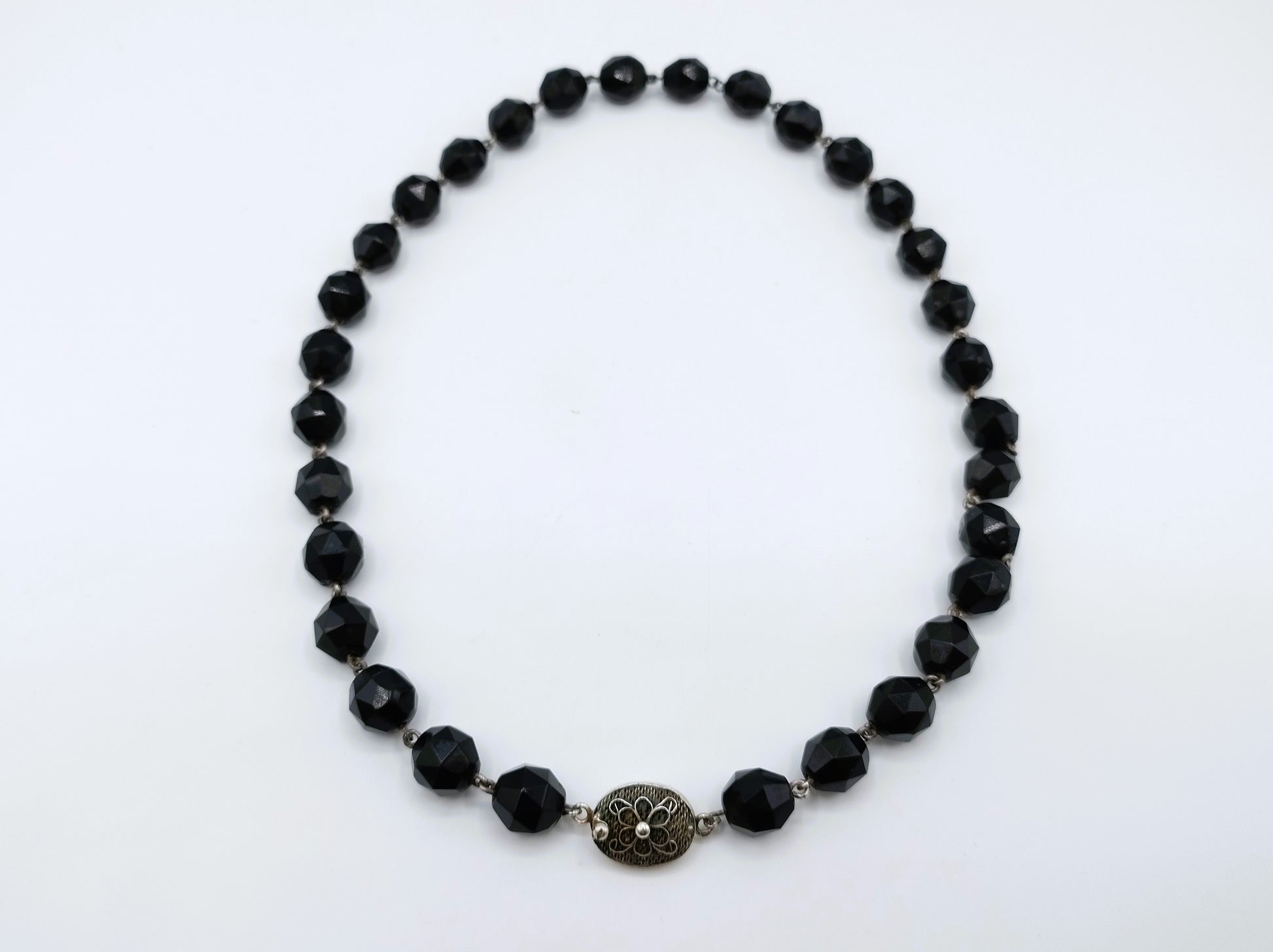 Gitten ketting op zilverdraad geregen met een zilveren slot.