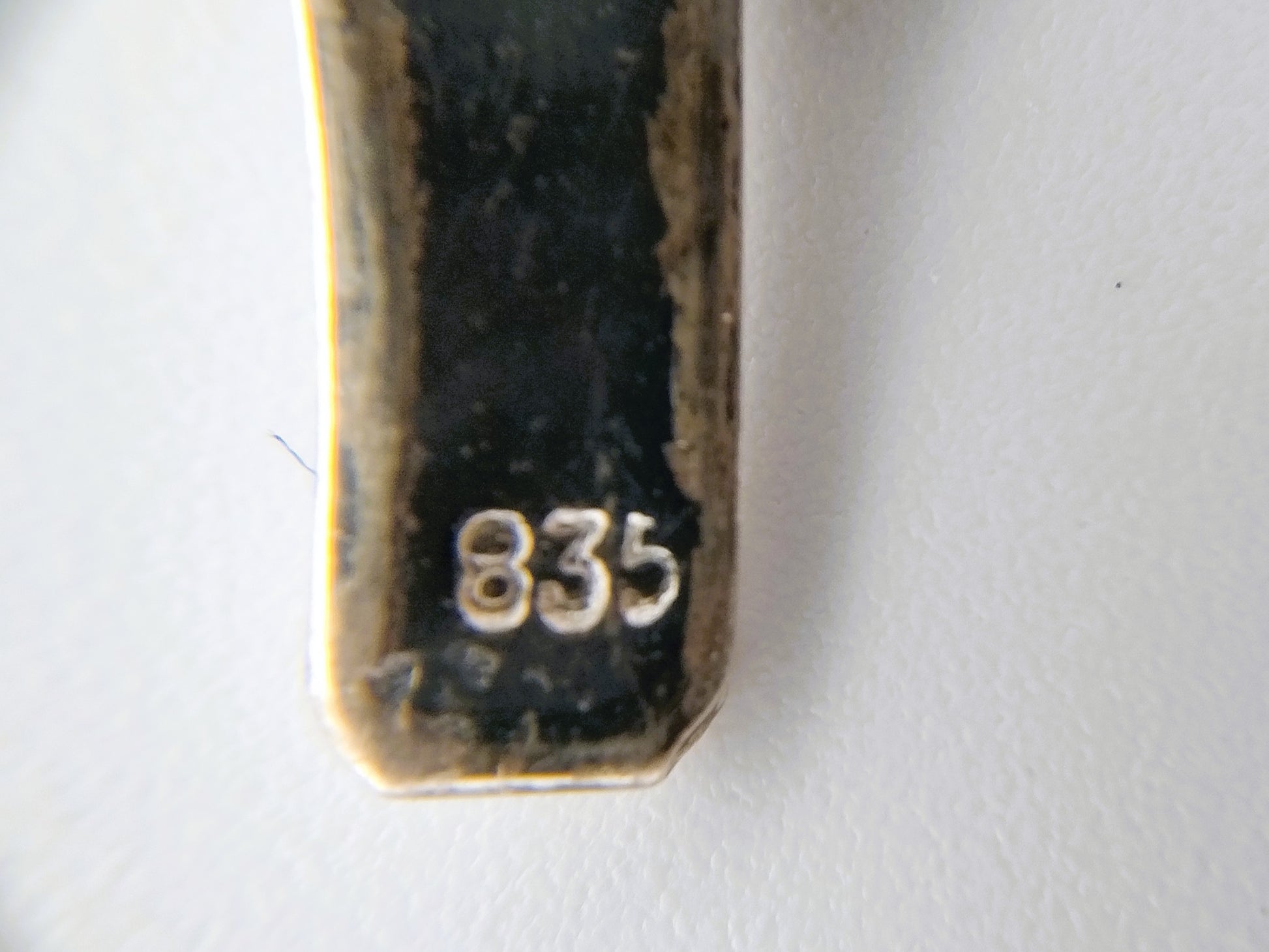 Het zilveren slot is gekeurd met 835 voor tweede gehalte zilver en een meesterkeur Rx.