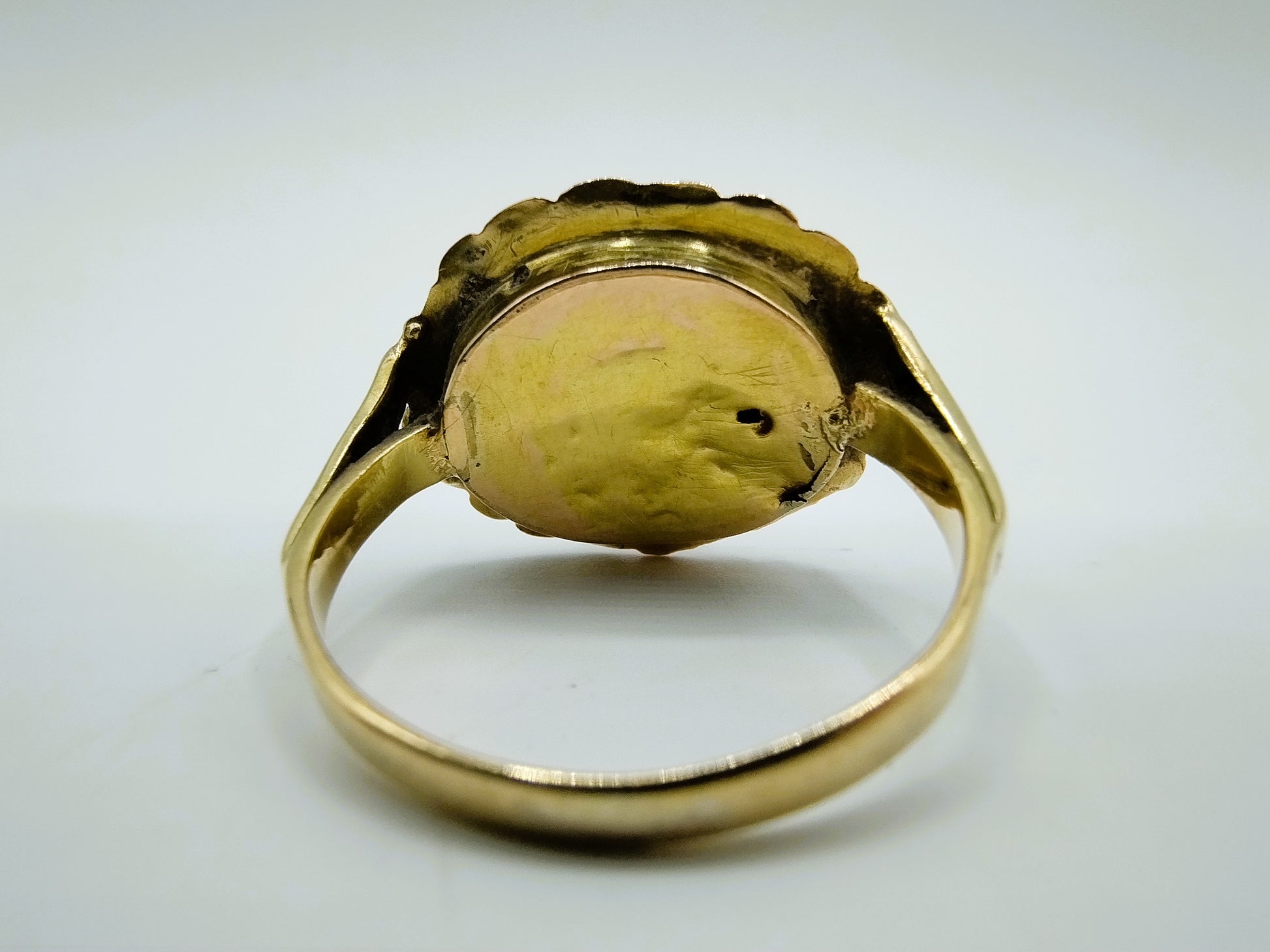 De ring heeft aan de achterkant een lichte beschadiging, zie hiervoor ook de foto's.