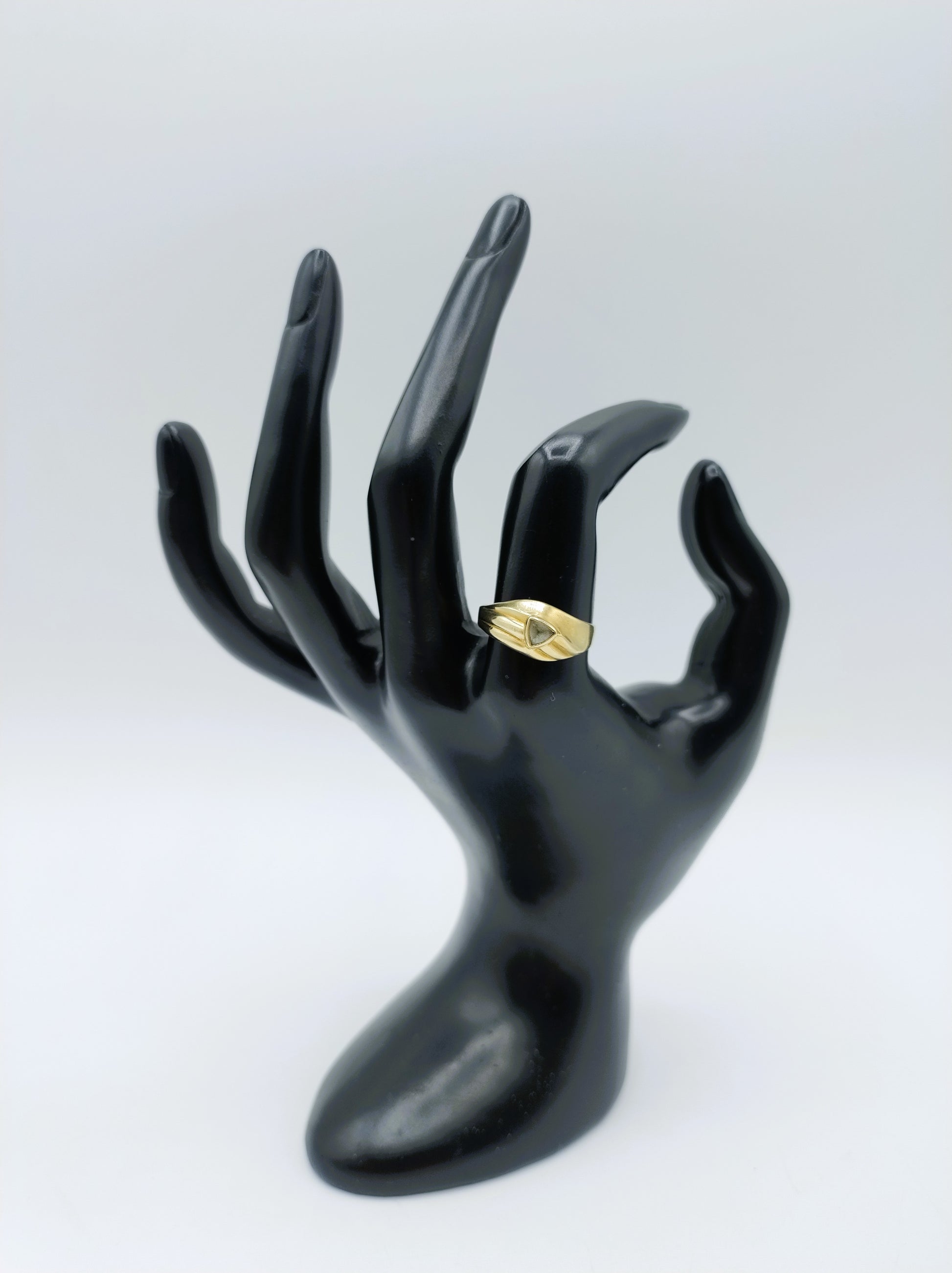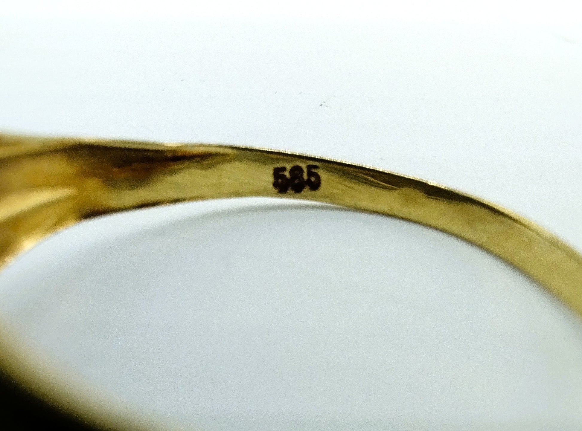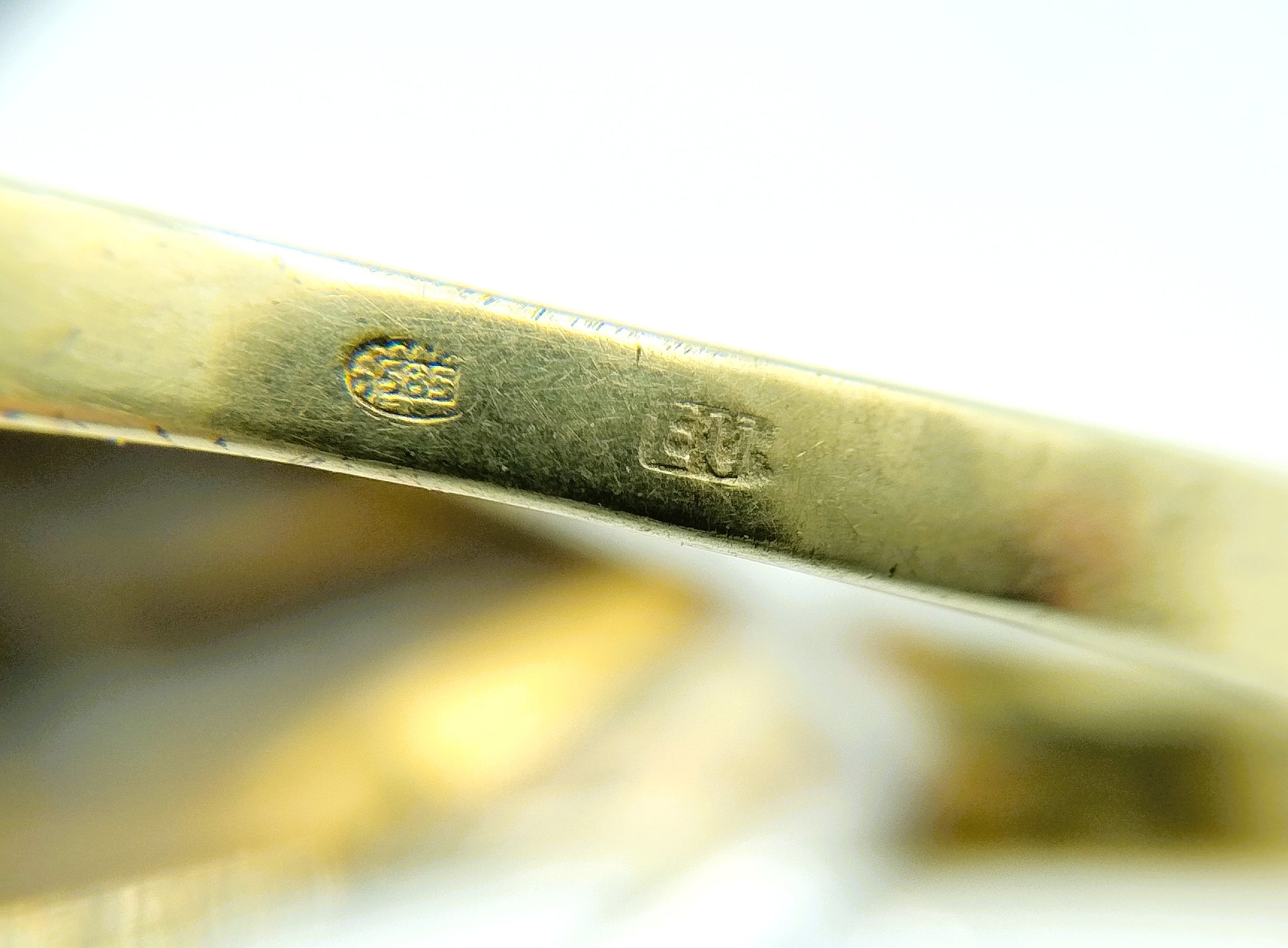 De ring is gekeurd met het eikenblad 585 voor 14 karaats goud.