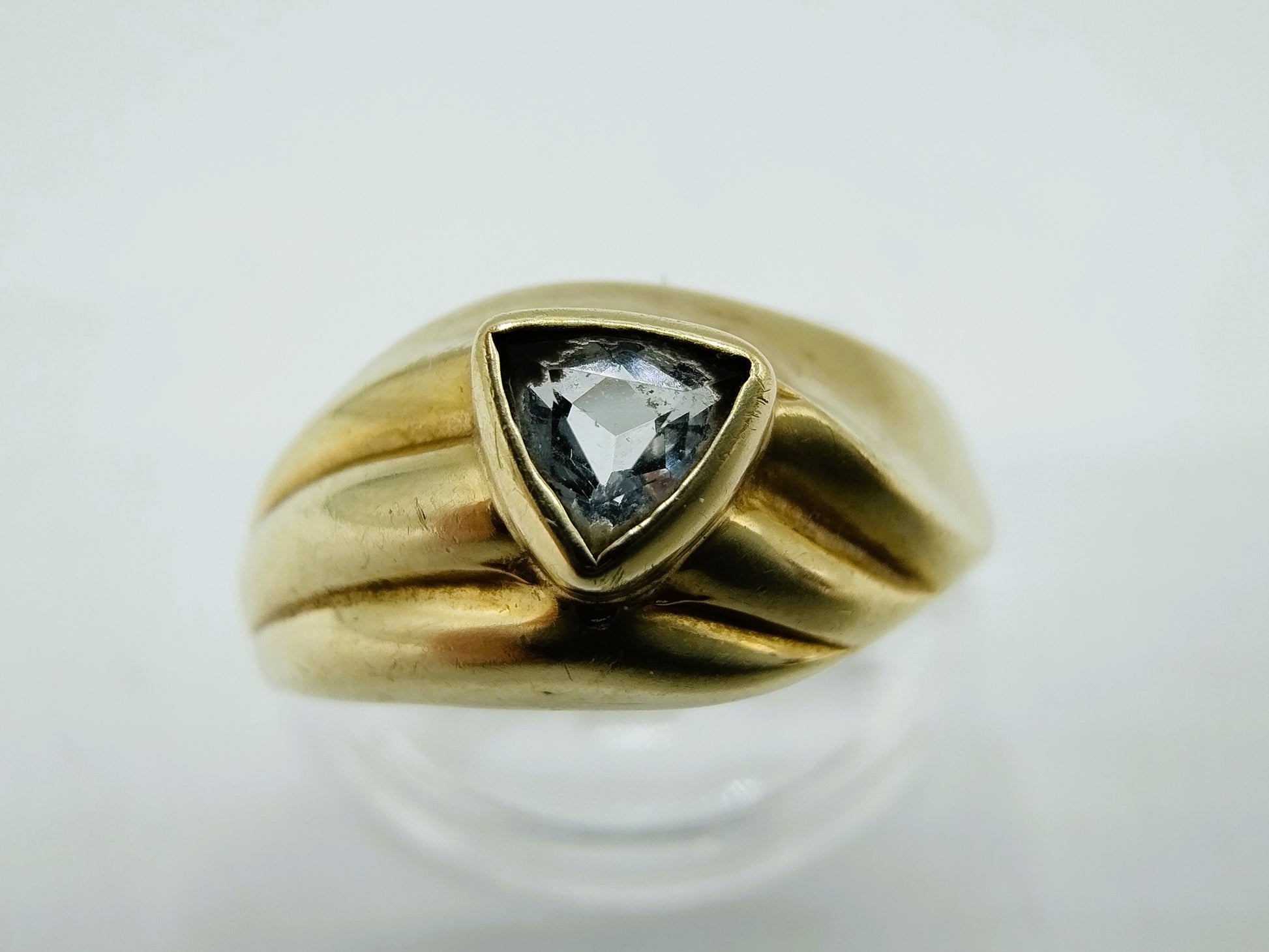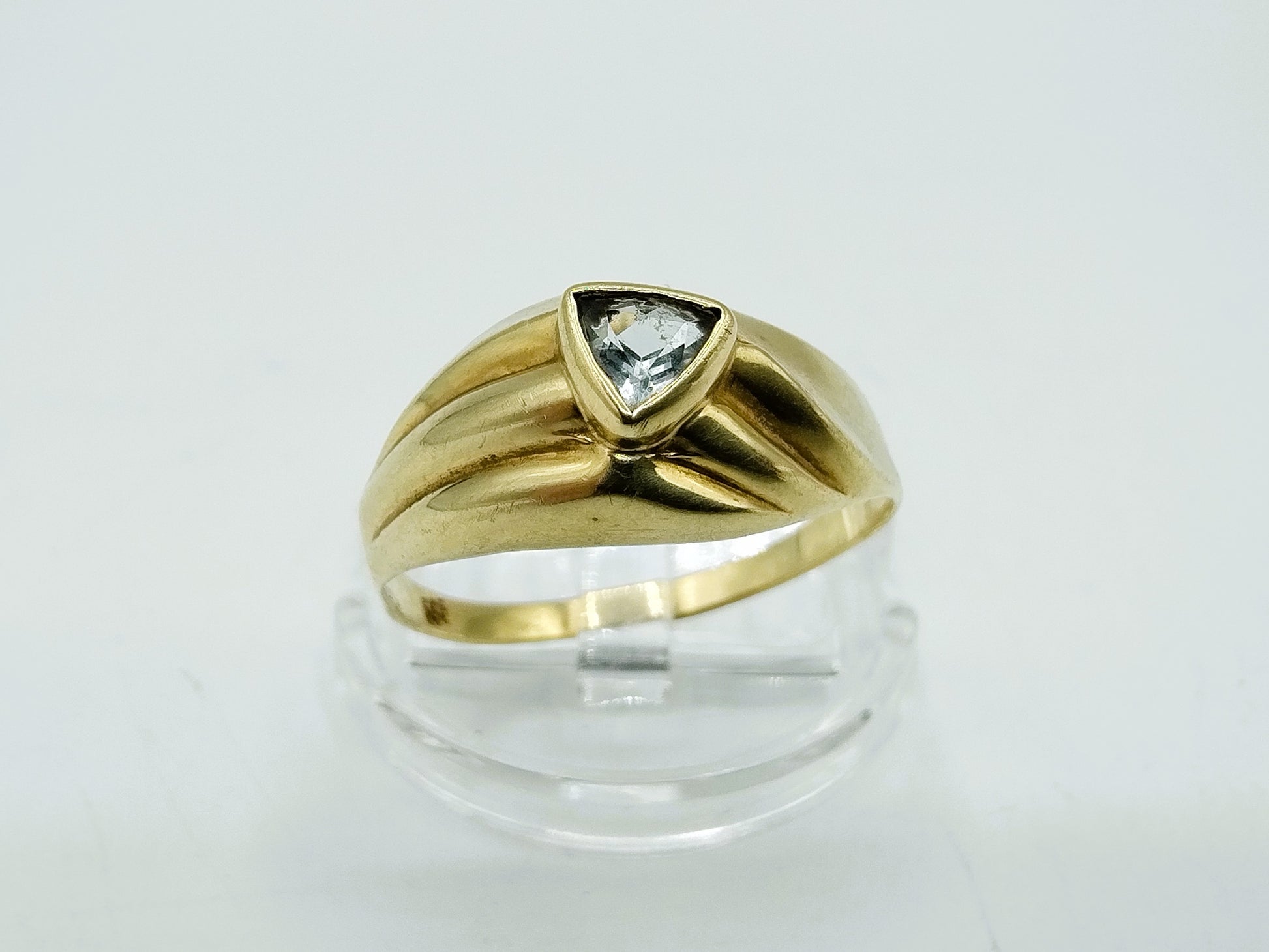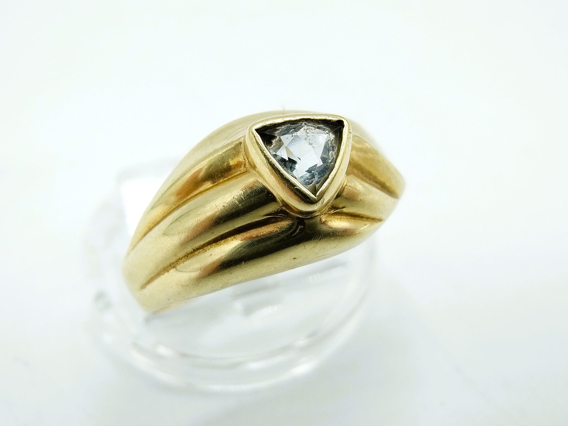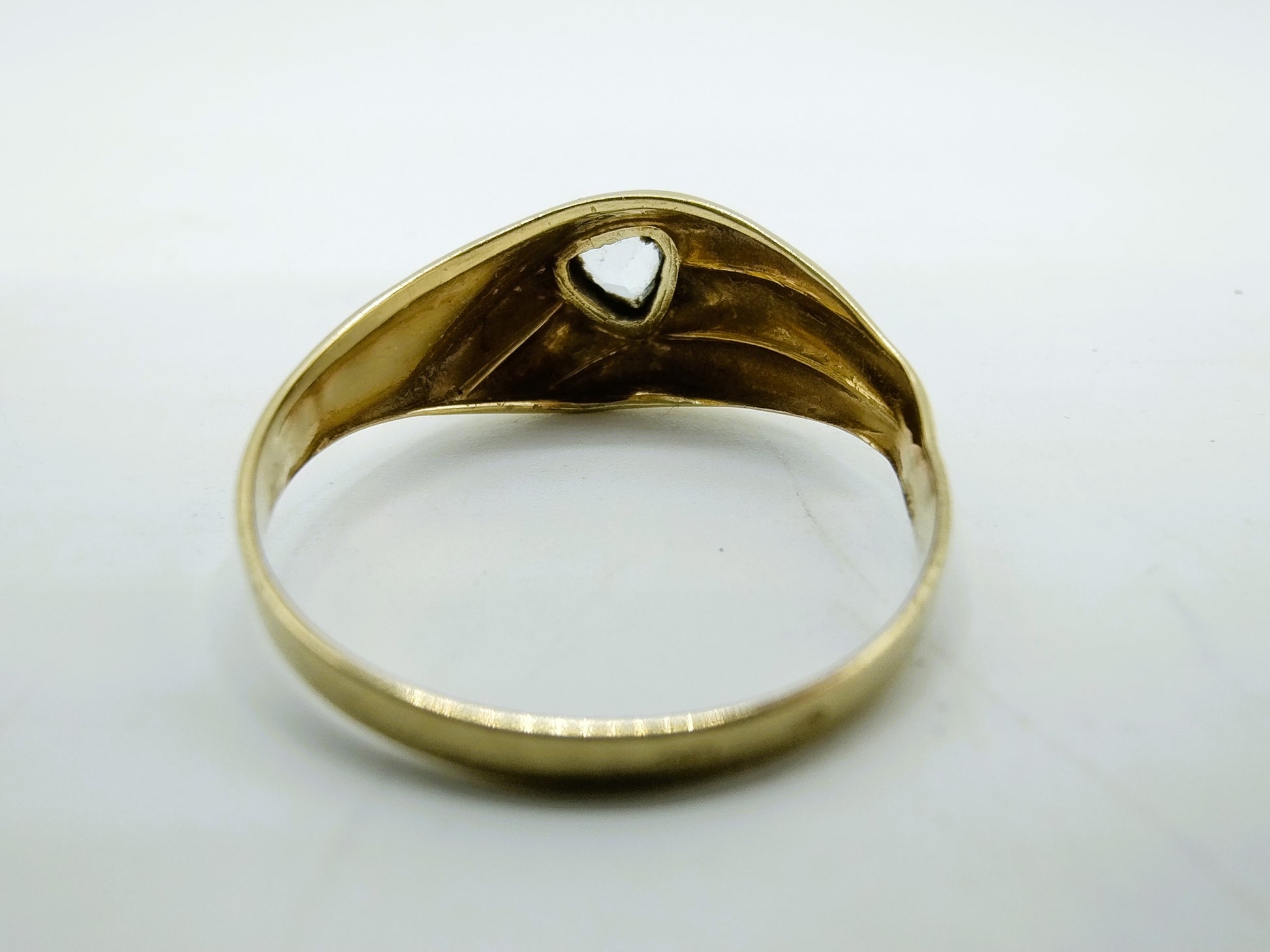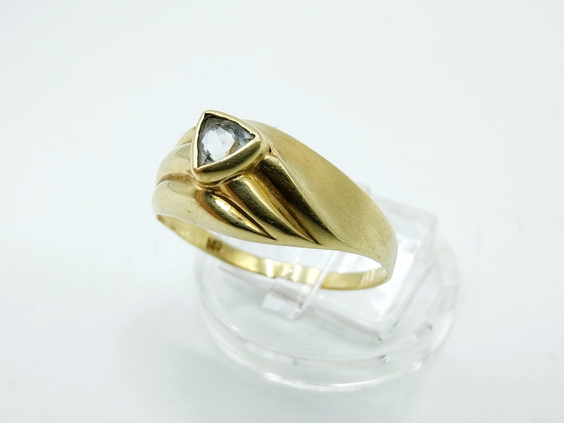 Gouden ring bezet met een geslepen steen met een diameter van 4 mm.