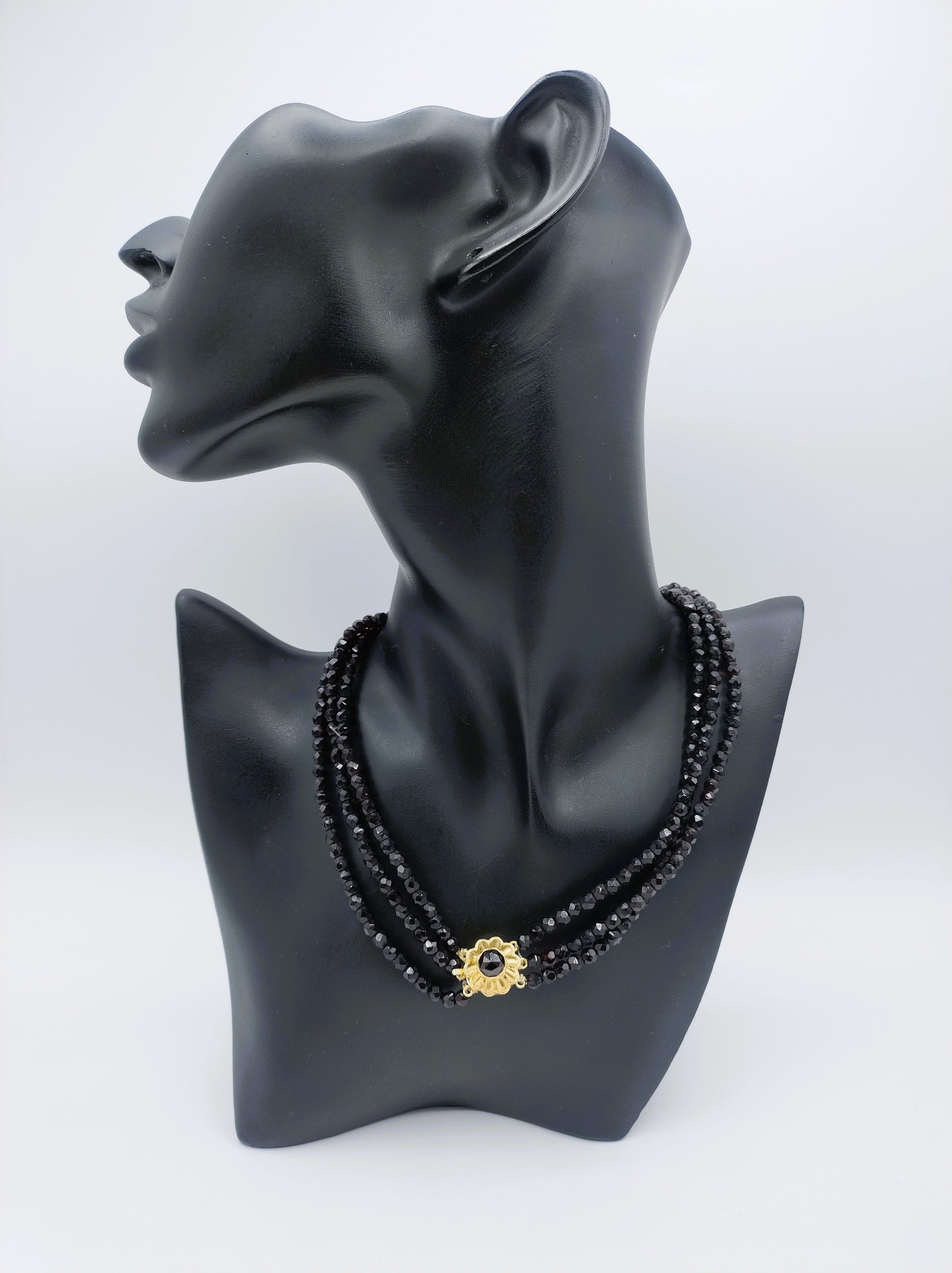 Granaten ketting met gouden slot, 39 cm