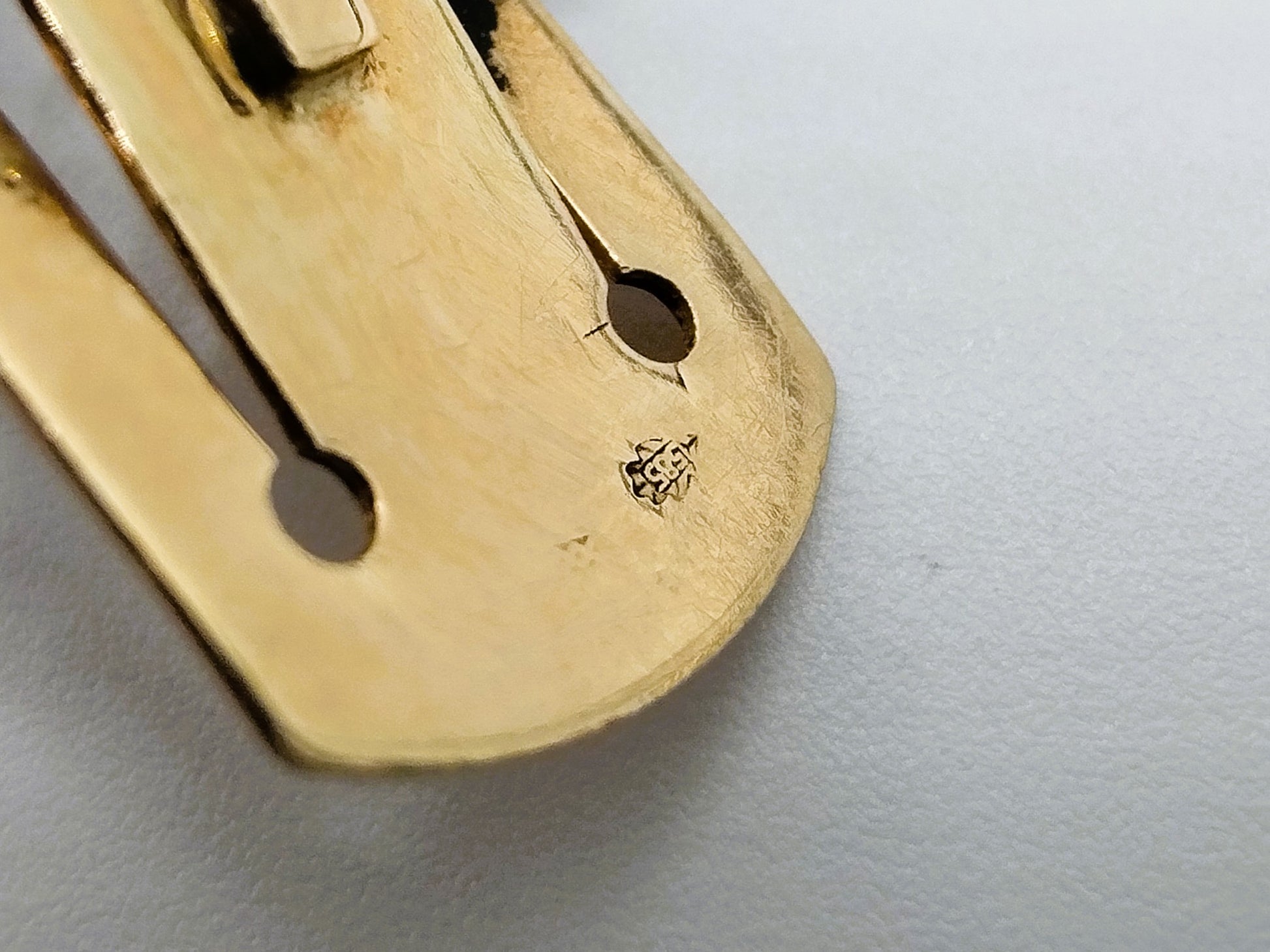 Het gouden slot is gekeurd met het eikenblad 585 voor 14 karaats goud.