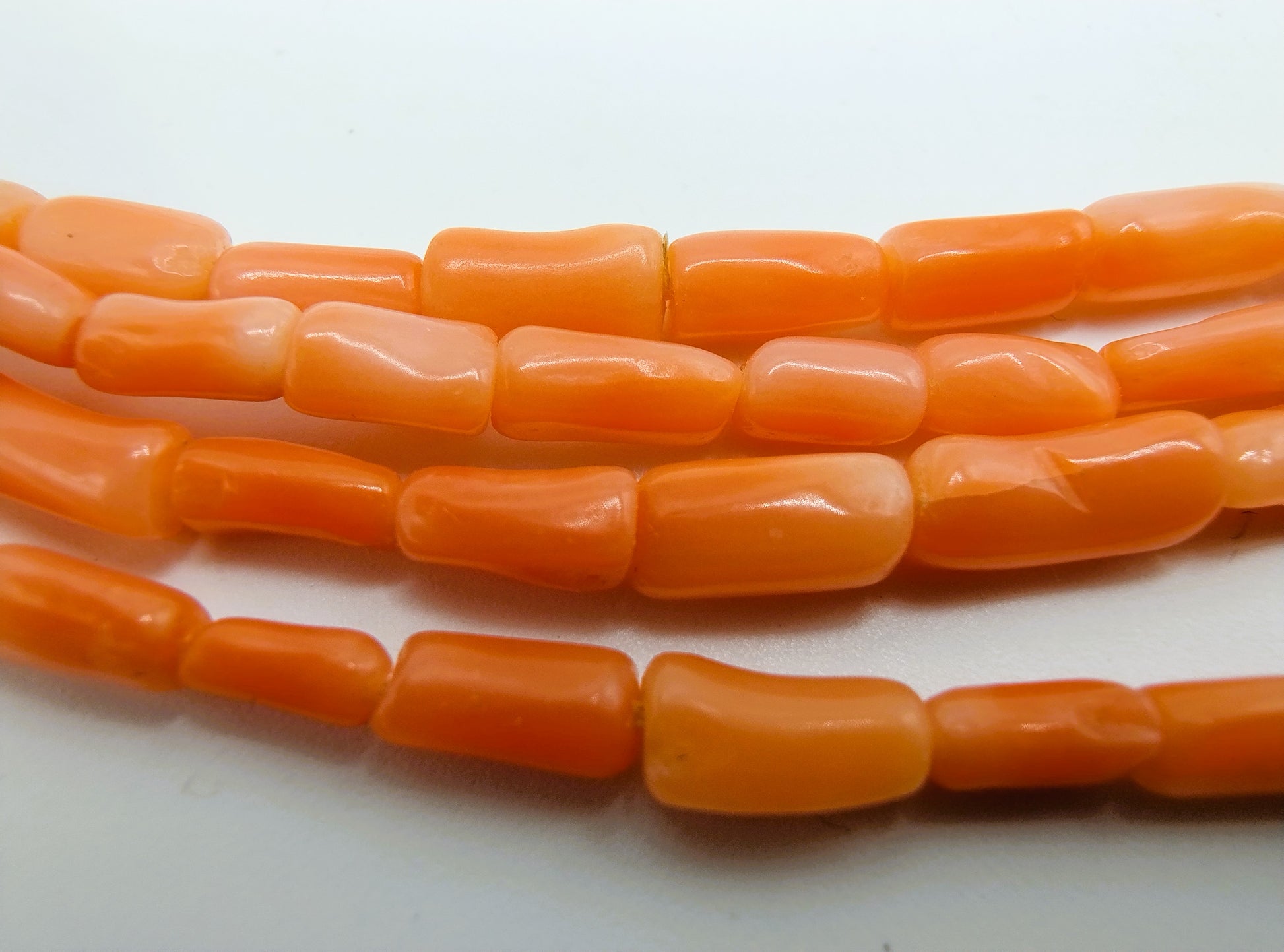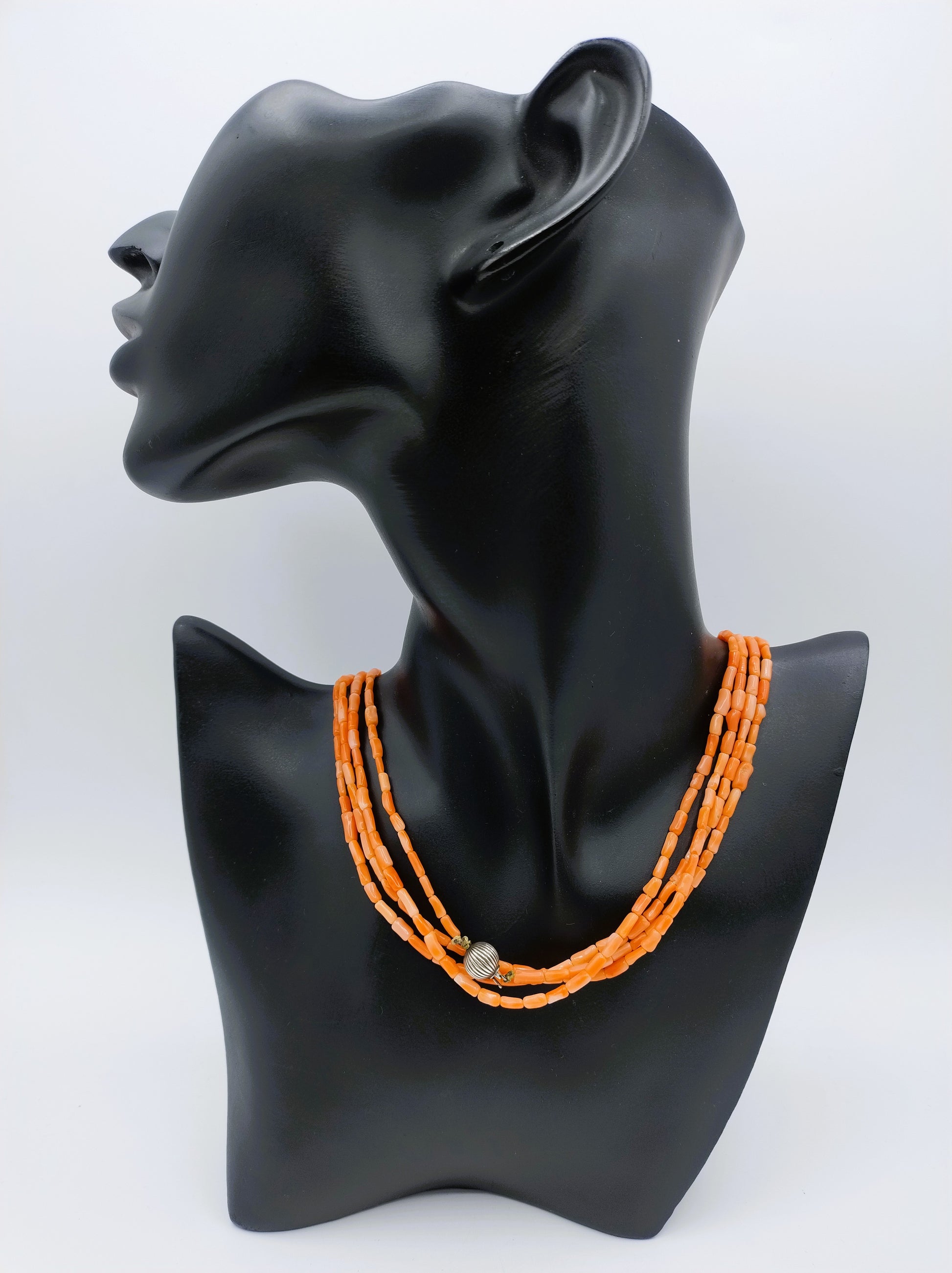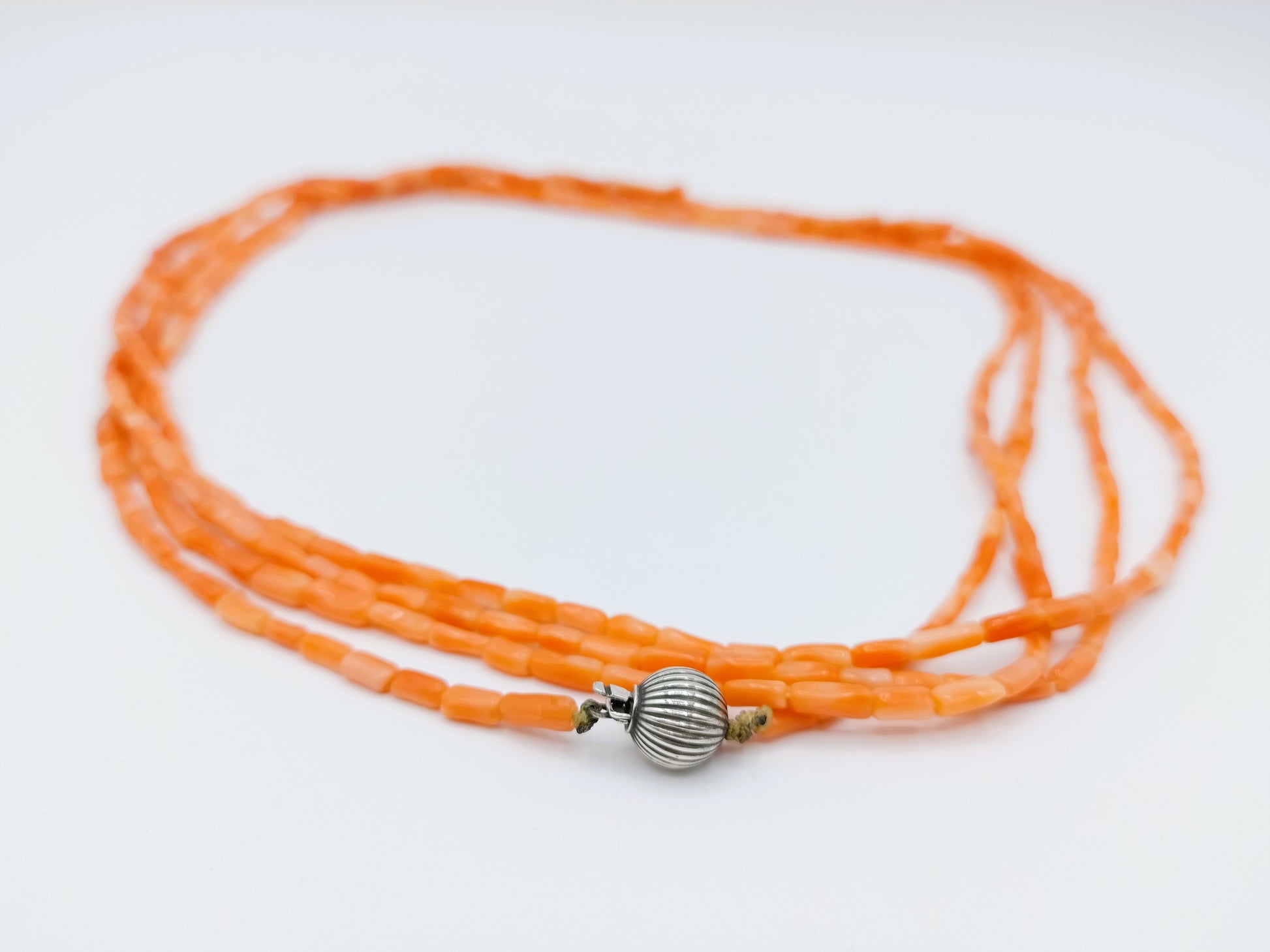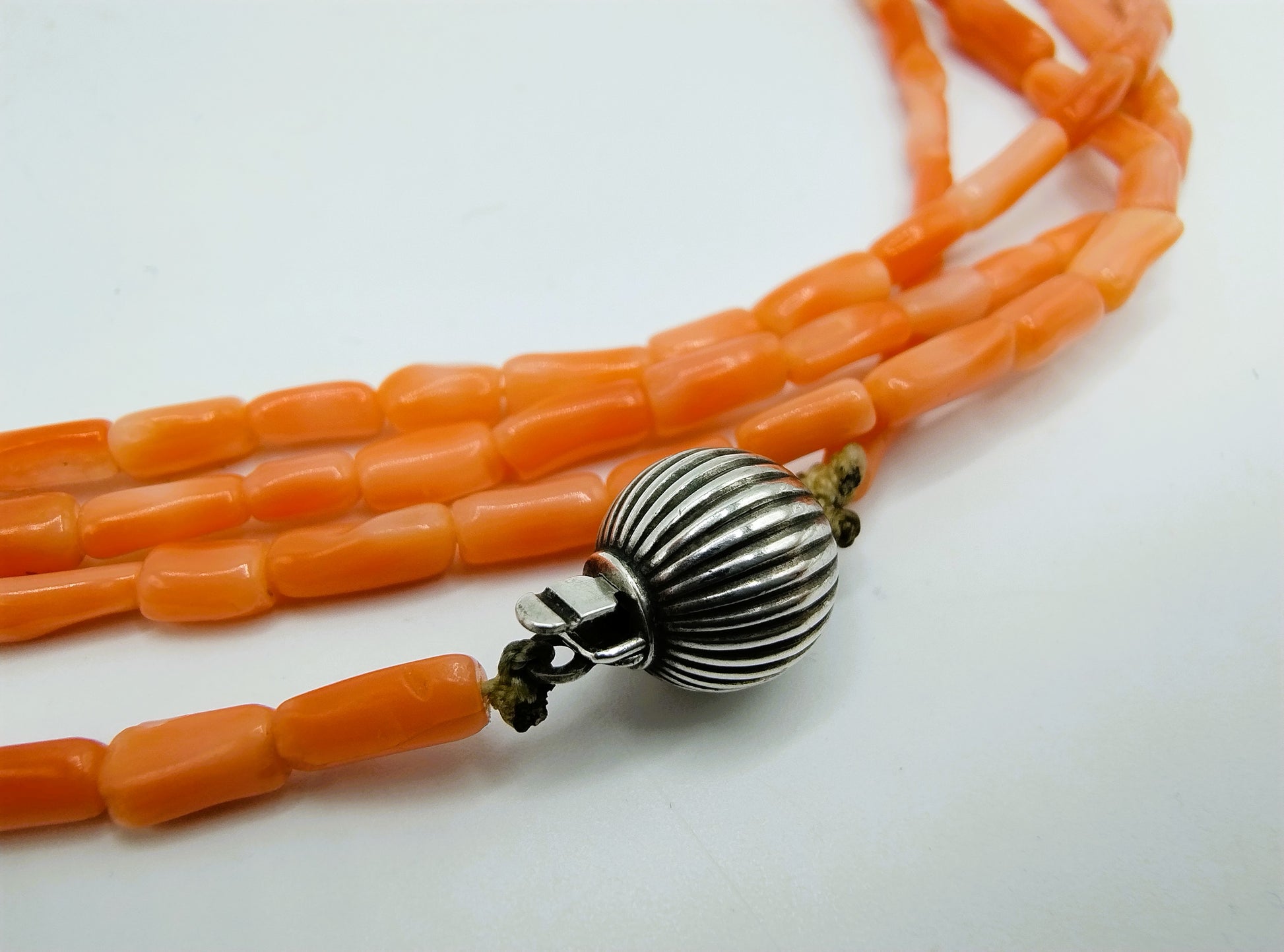 Koraalachtige kralen ketting met zilveren bolslot, 1.83 m (!)