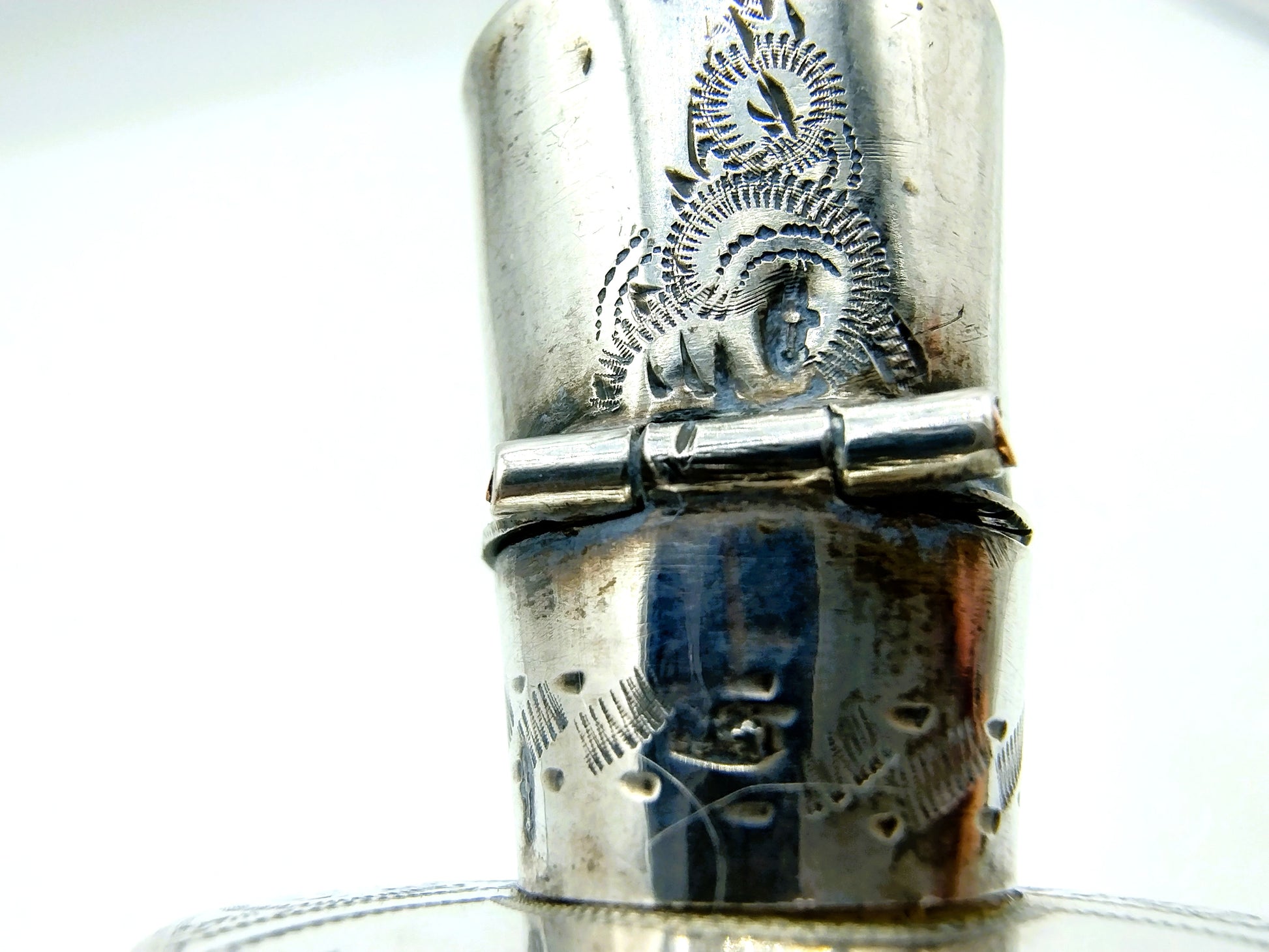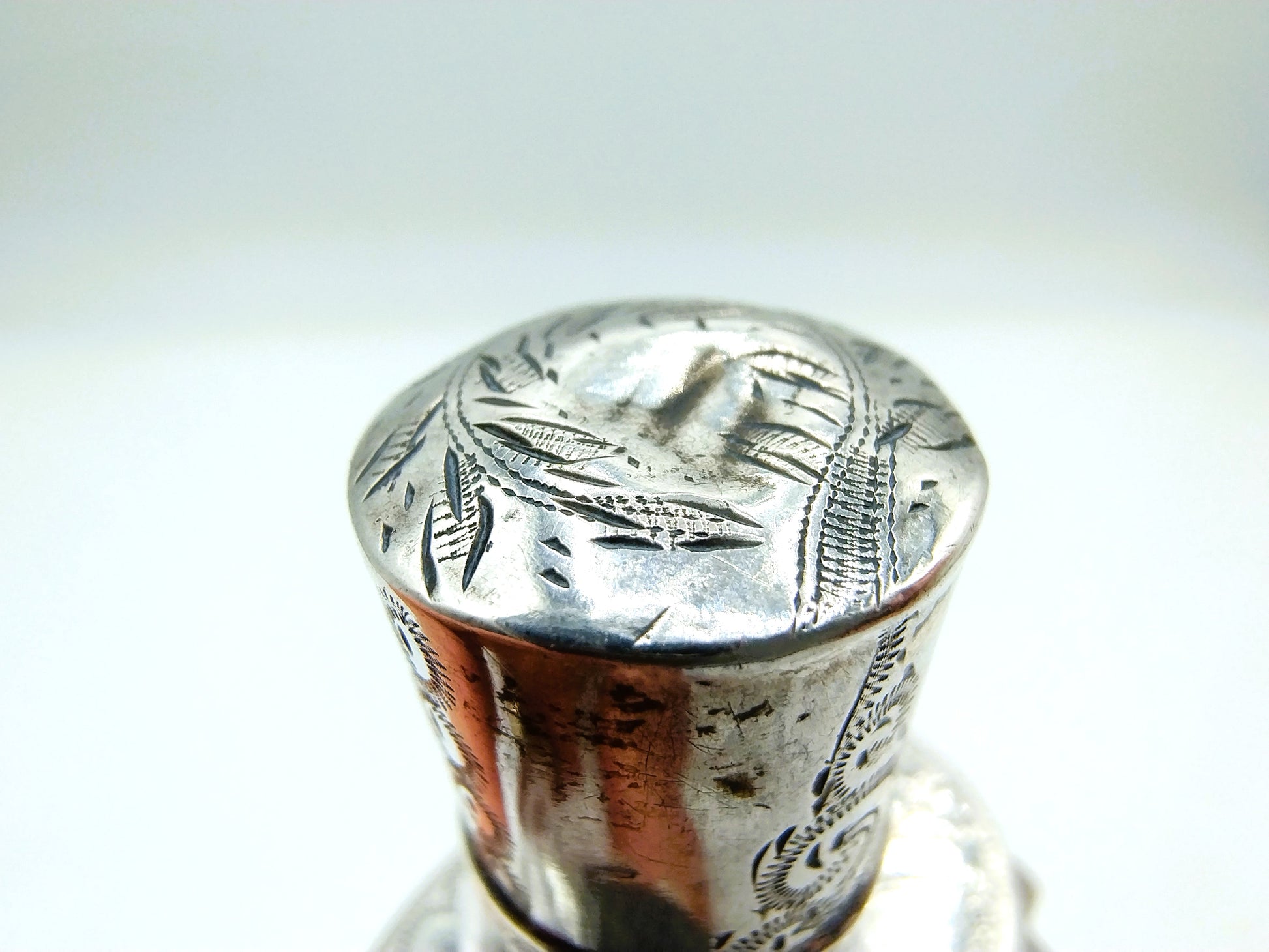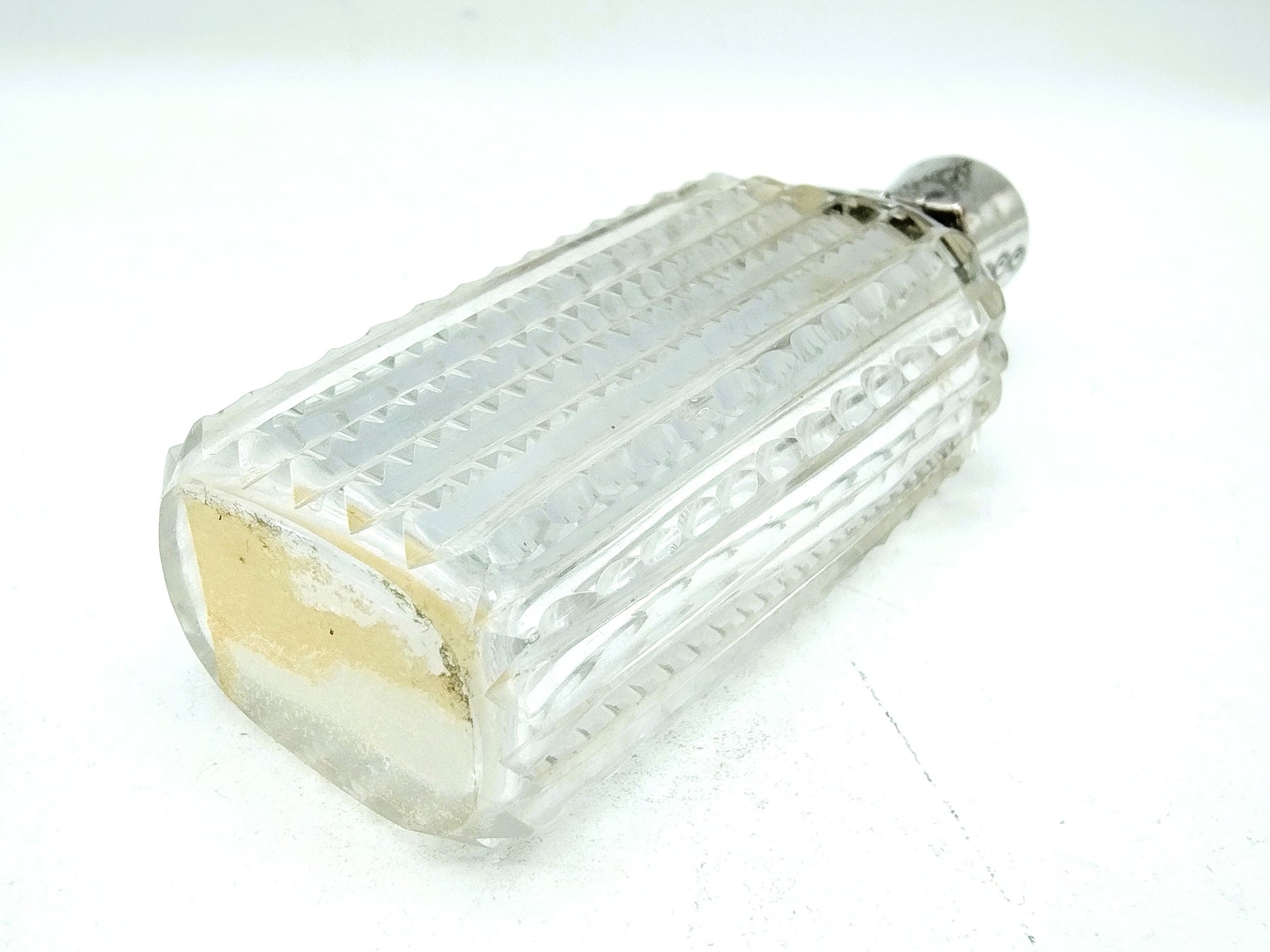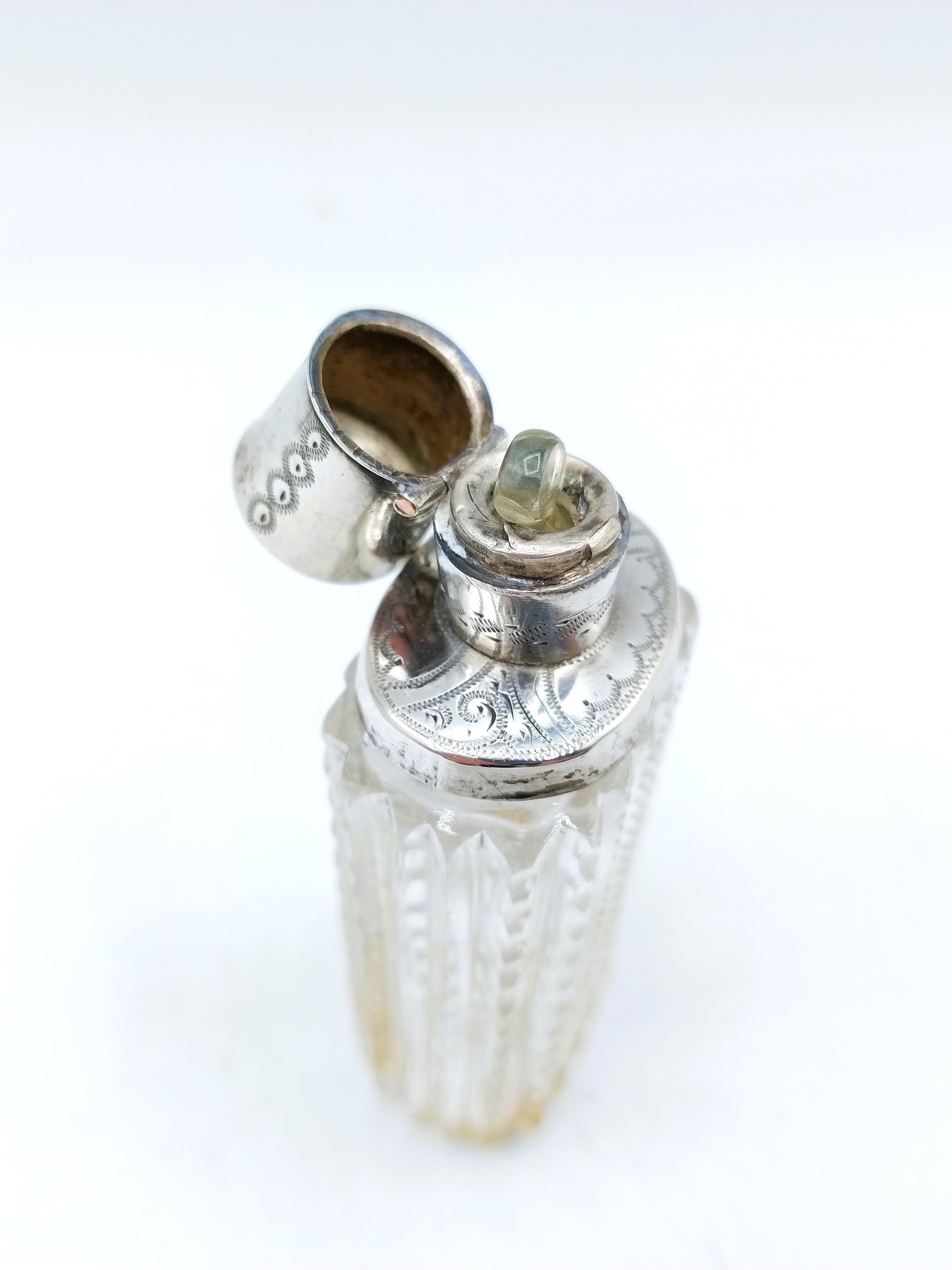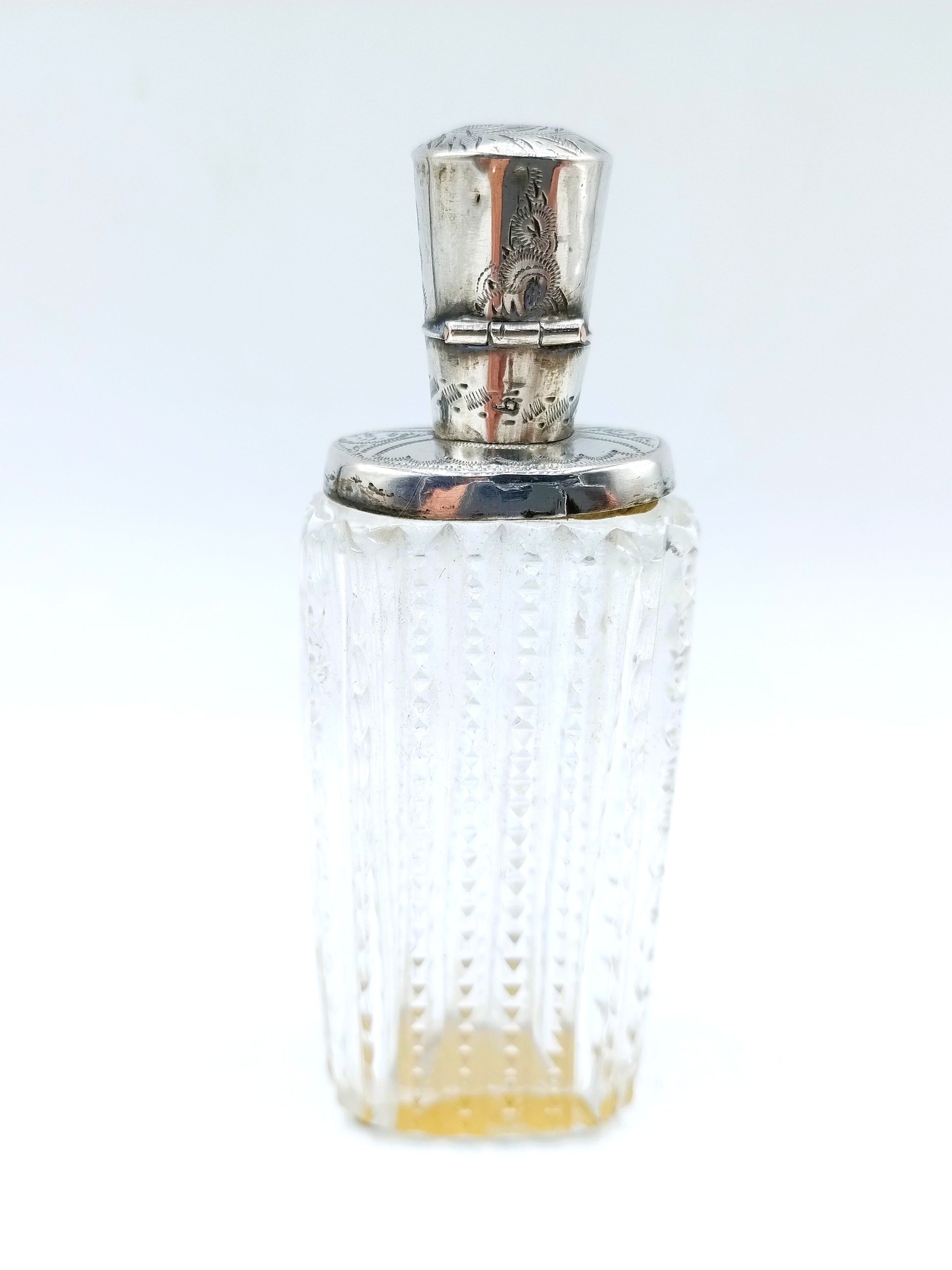 Kristallen parfumflesje met zilveren dop. 19e eeuws.