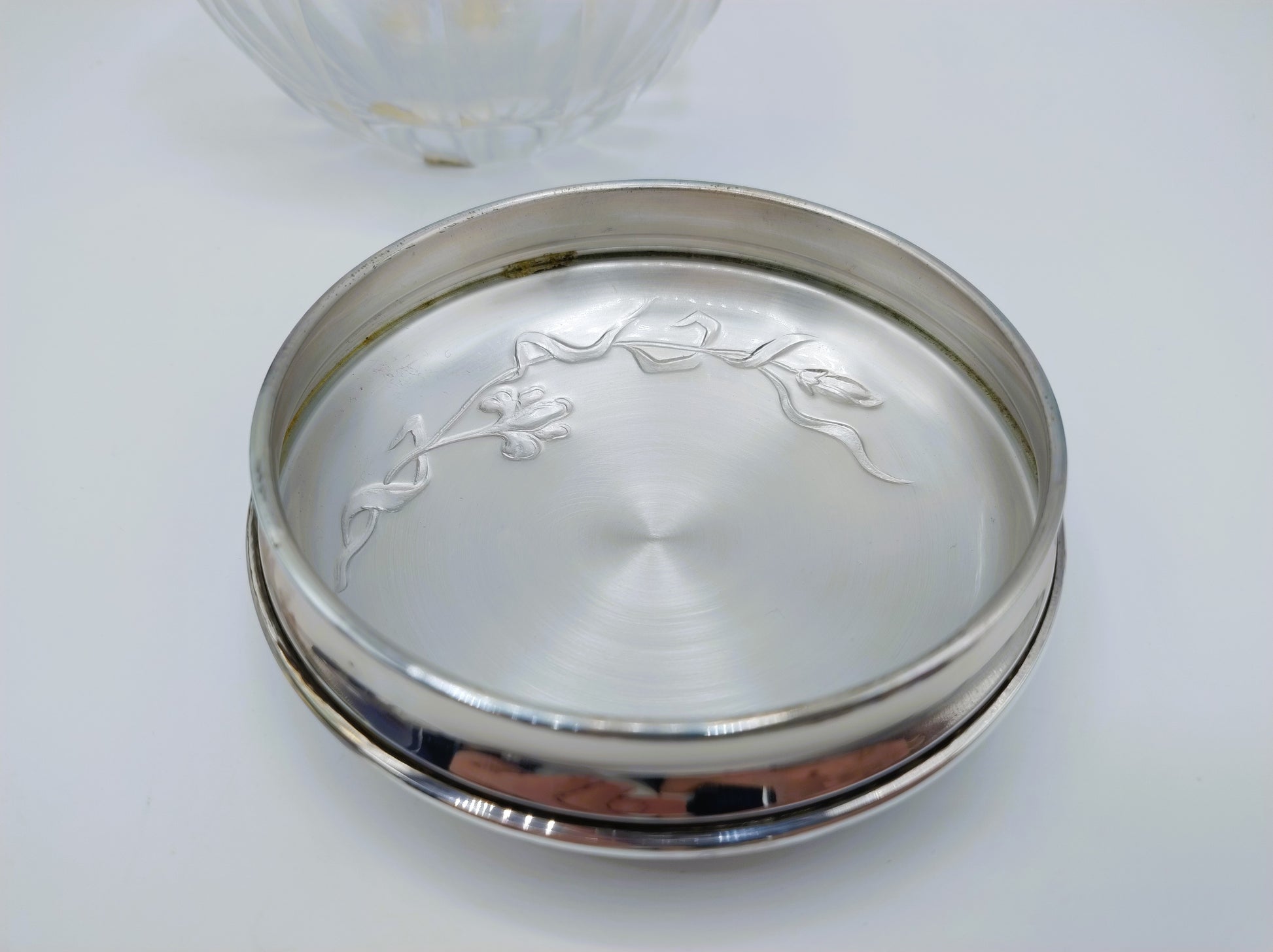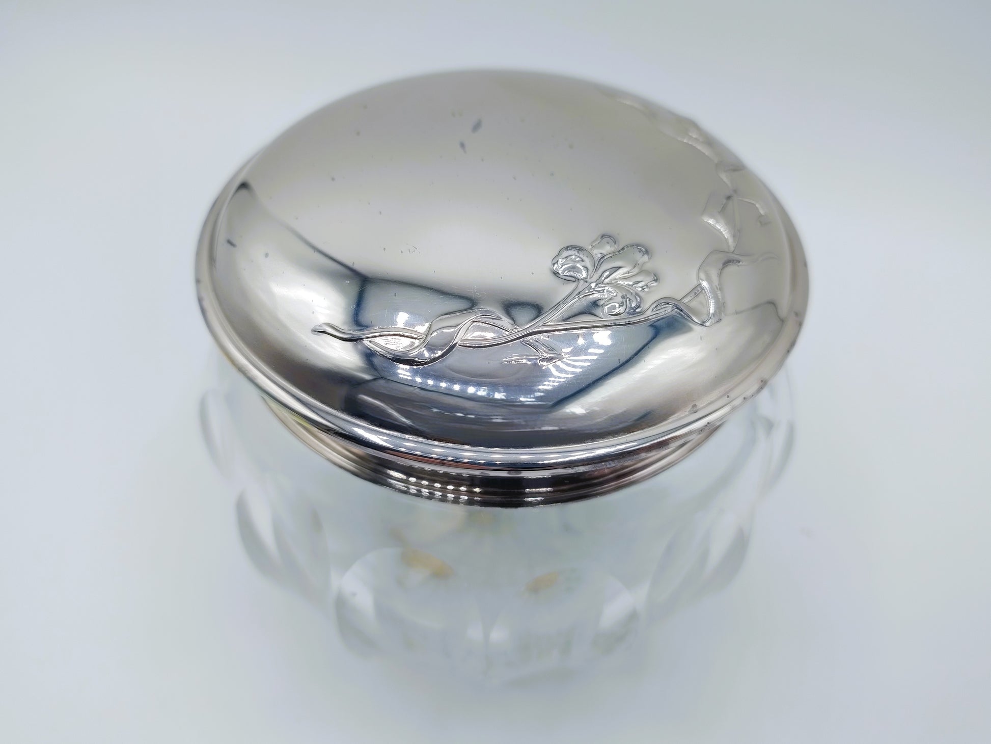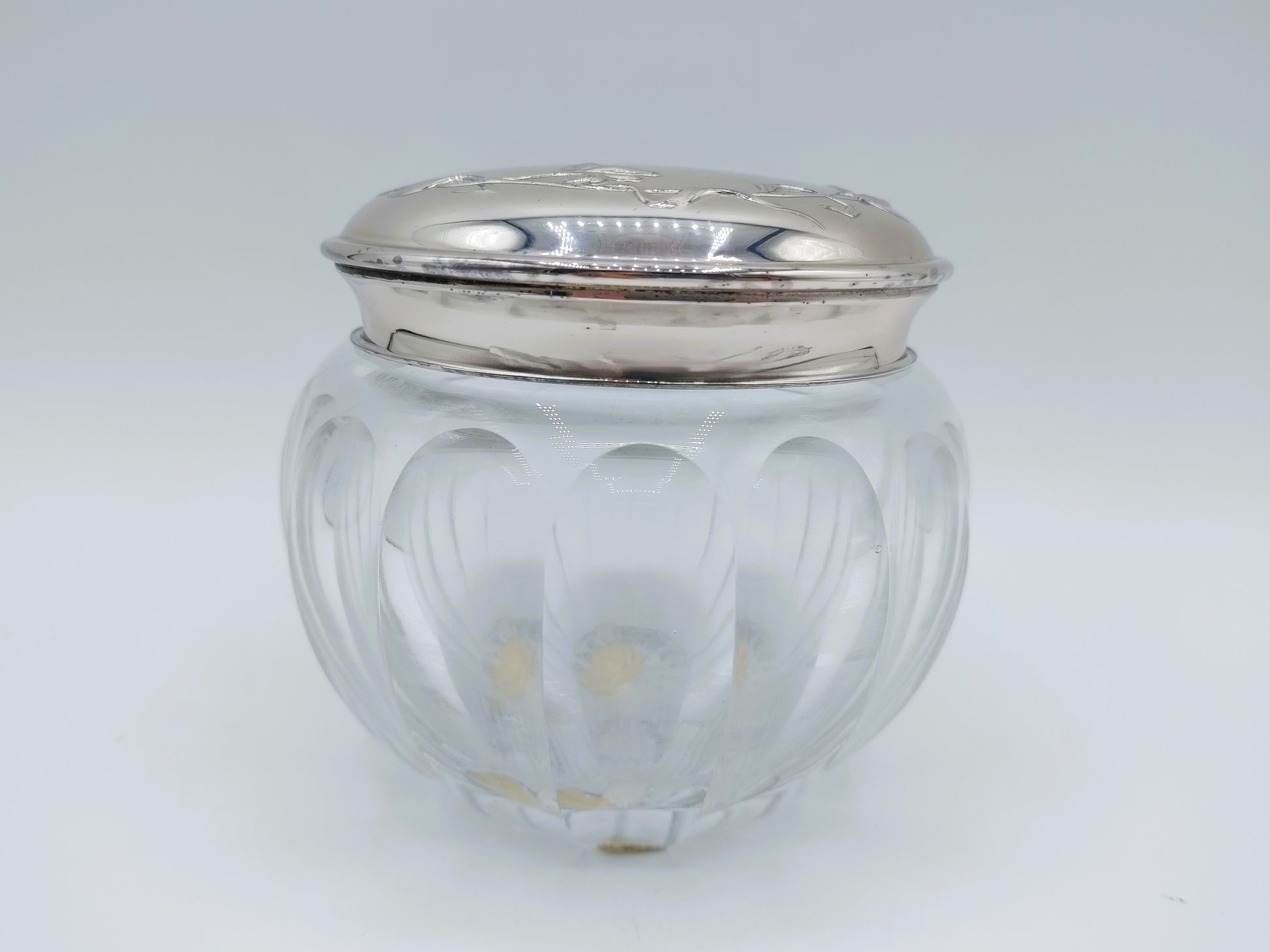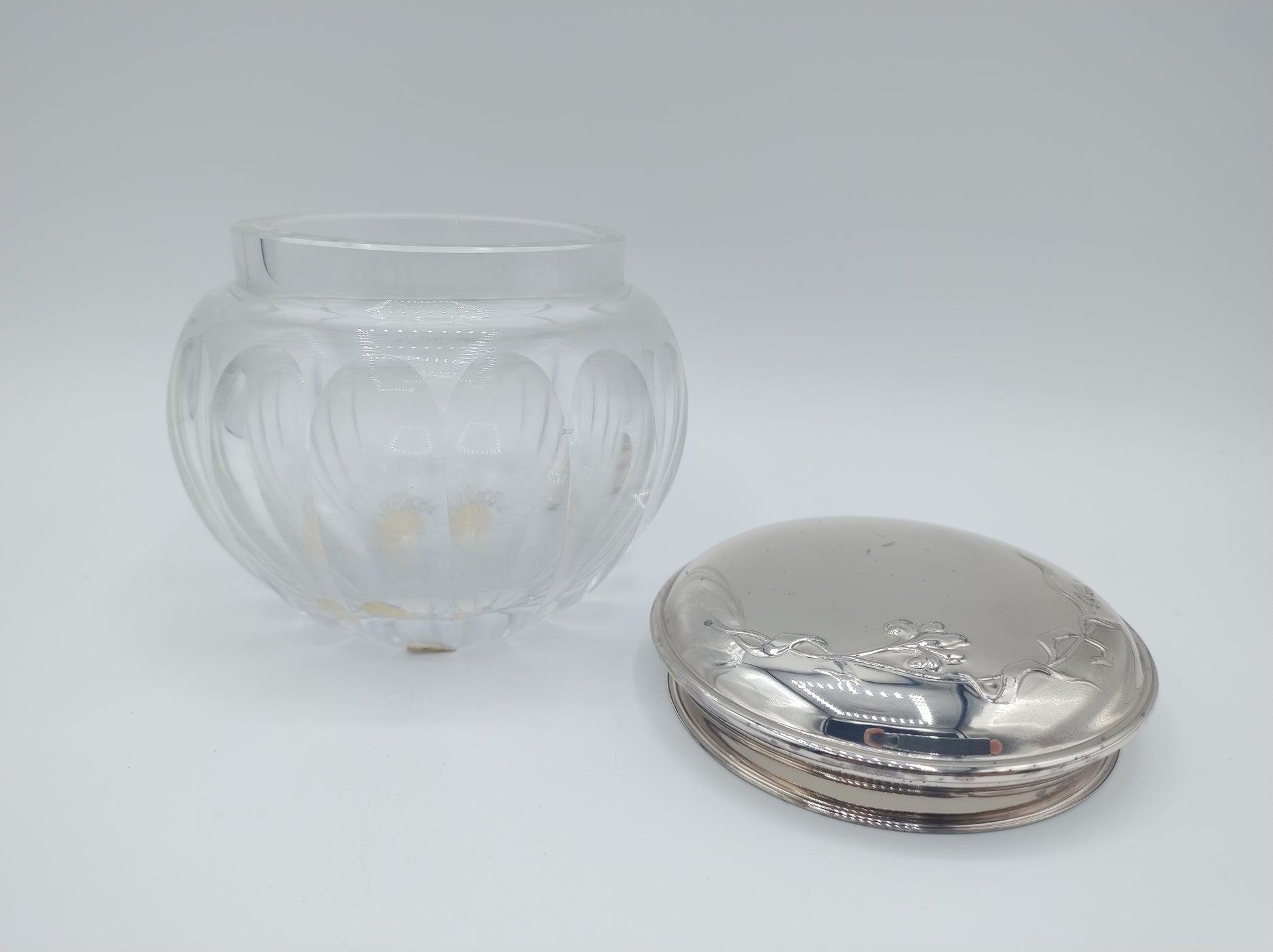 Kristallen poederdoos met zilveren deksel, 925