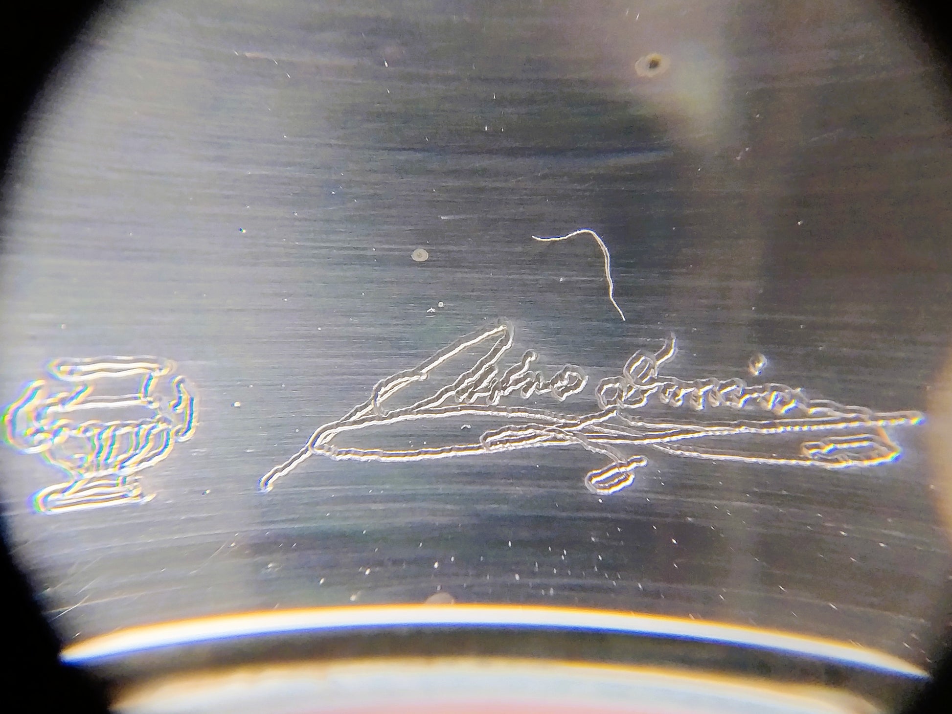 Het deksel is gekeurd met 925 voor sterling zilver en een handtekening van Artro Formio (?) met een kruik.