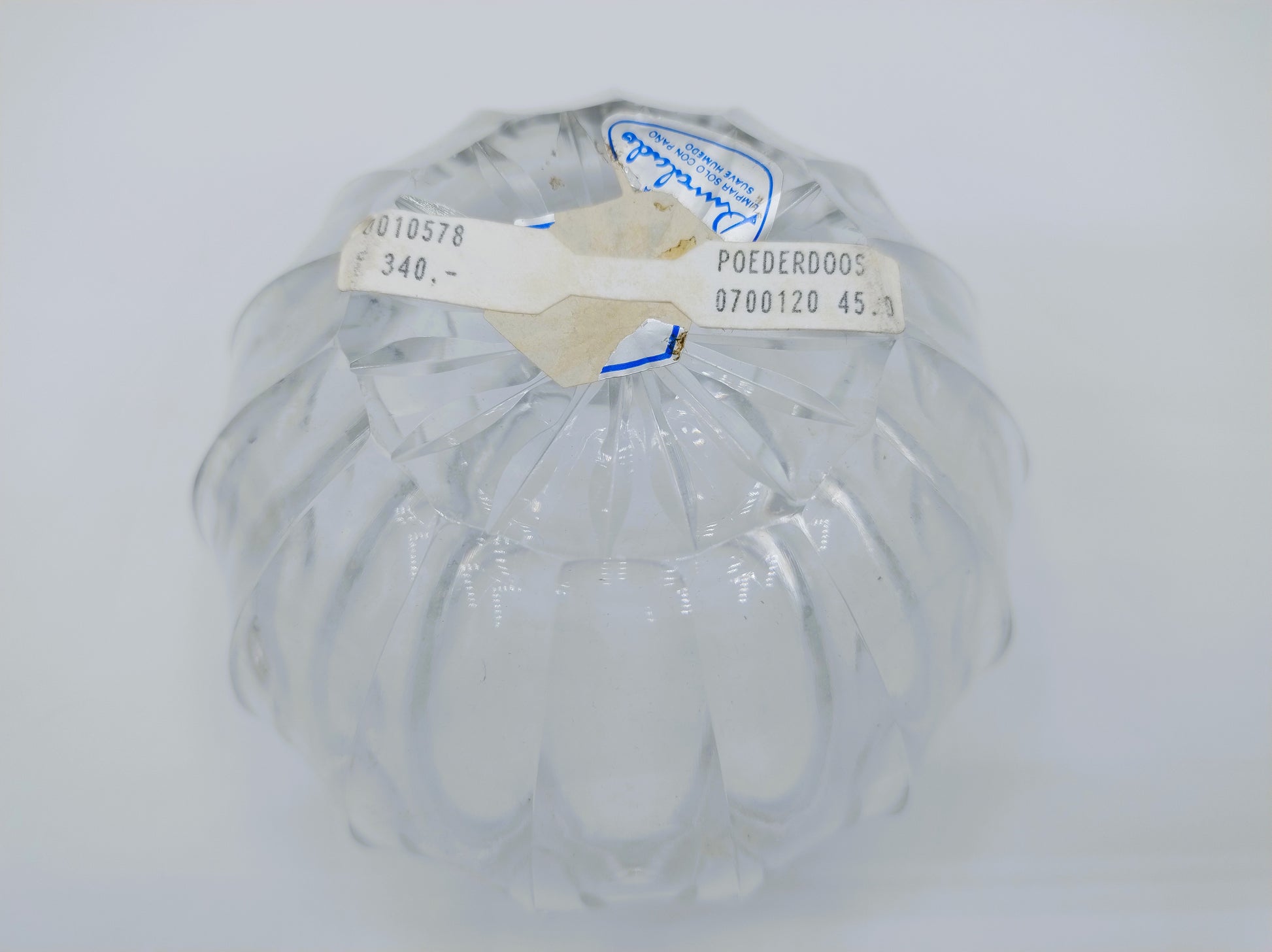 Het gaat om een nieuwe en ongebruikte poederdoos. Het prijskaartje hangt er nog aan.