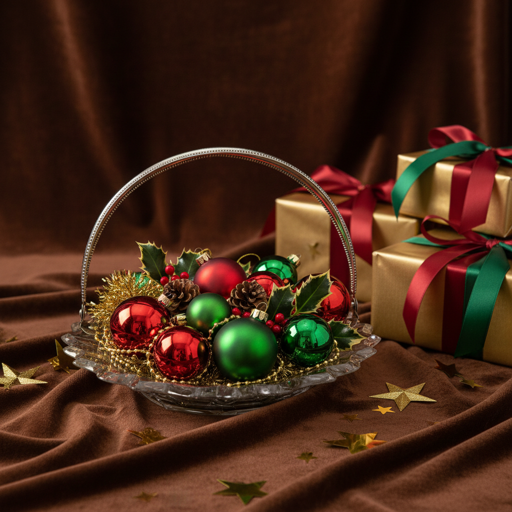 Kristallen schaal met zilveren hengsel, 19e eeuws.
