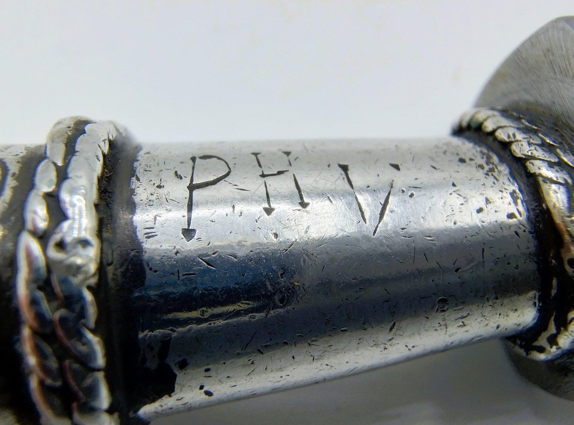 Op het mesheft staan de initialen HAV en PHV gegraveerd.