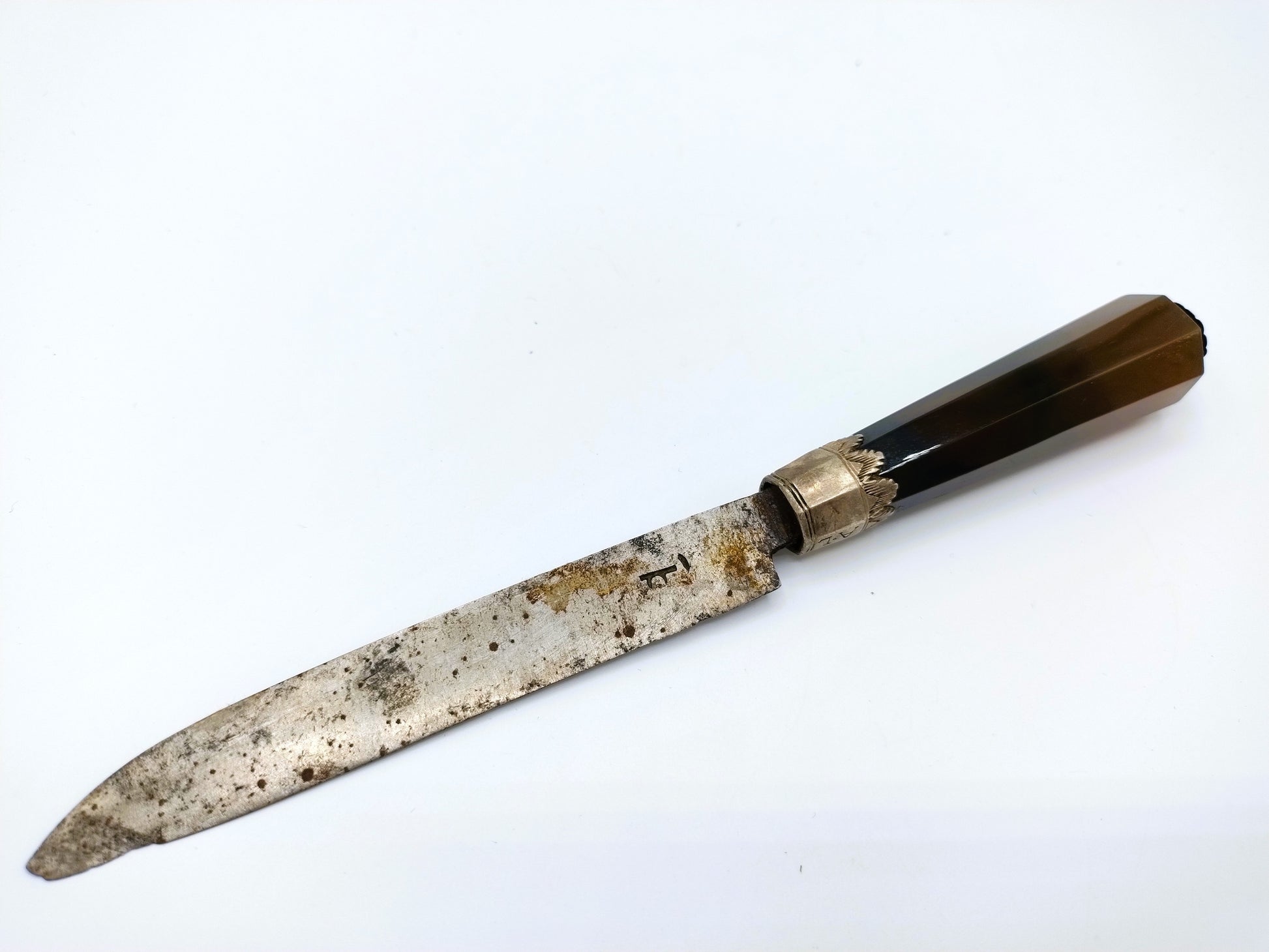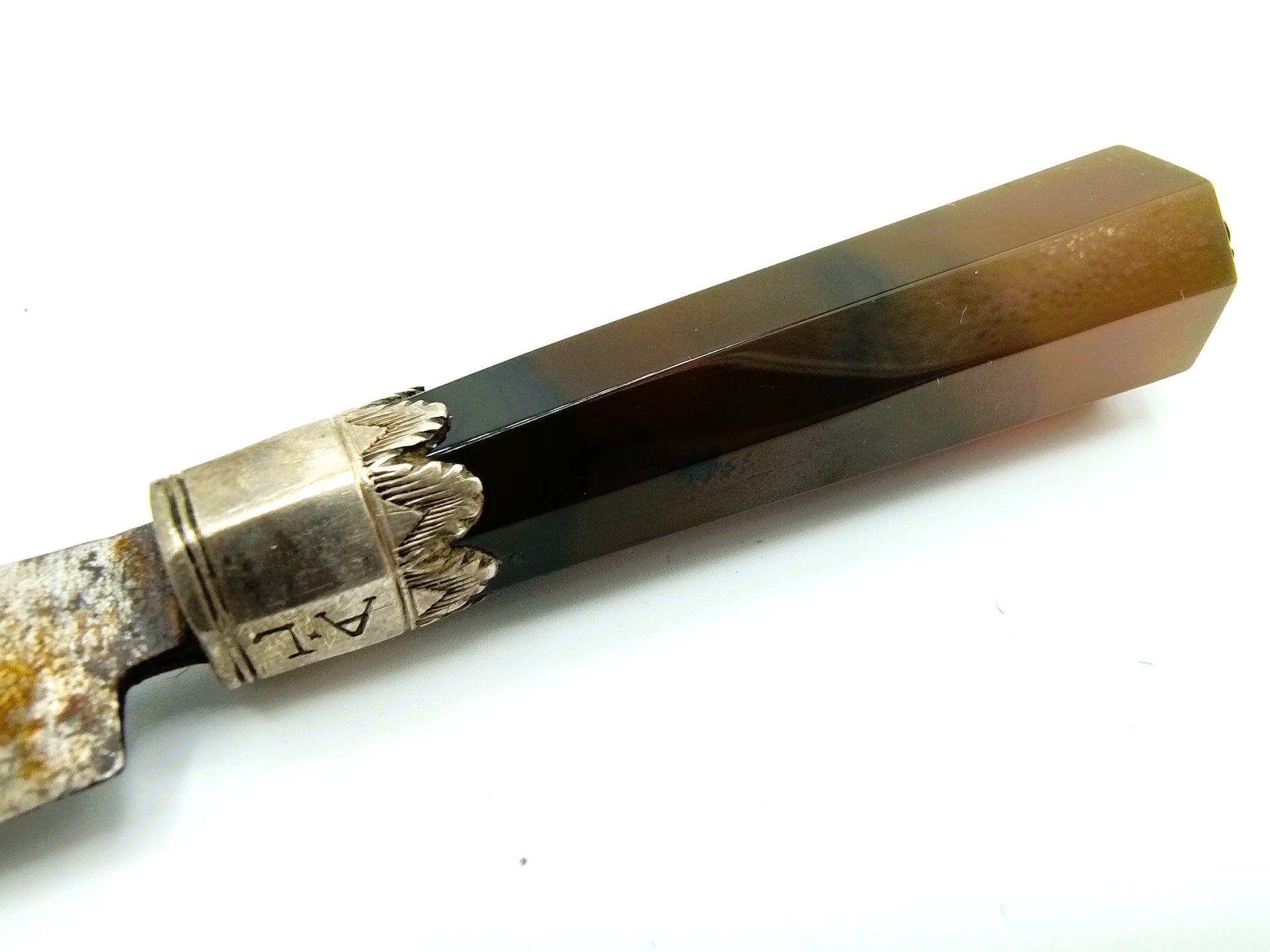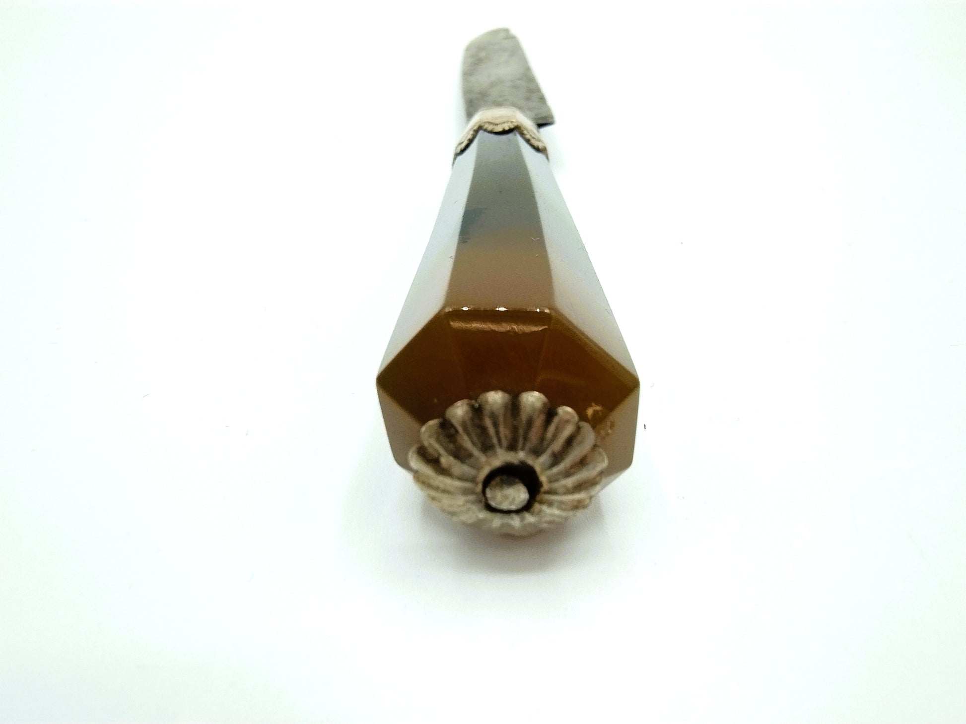 17e Eeuws mes met een carneolen heft. Het heft is bekroond met een rozetje.