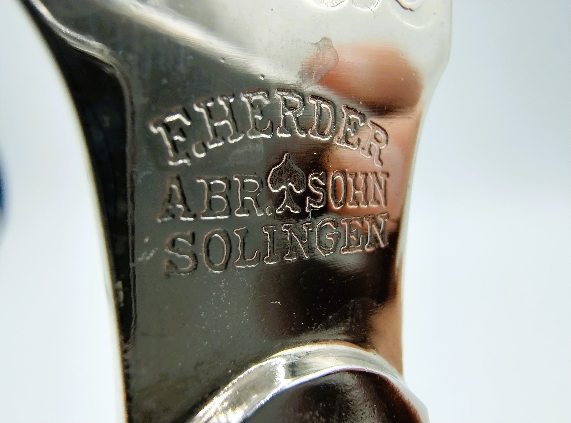 Het lemmet is onedel en afkomstig van F. Herder Abr Sohn uit Solingen.