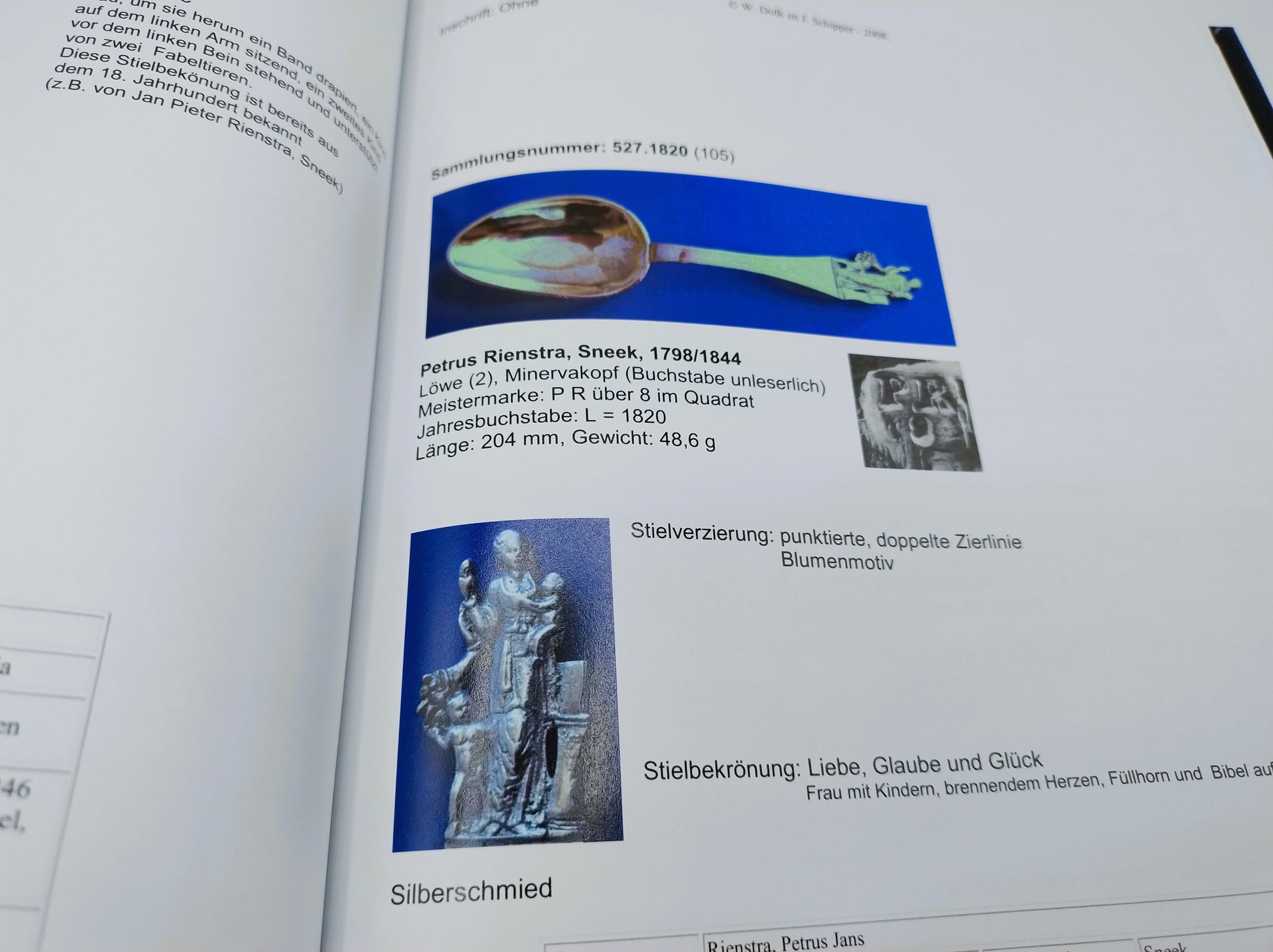 - Geboortelepel, gemaakt door Rintje Sipkes Sloterdijk, Bolsward, 1853. Betreft: Evert Ulbes Rijpma, Wonseradeel