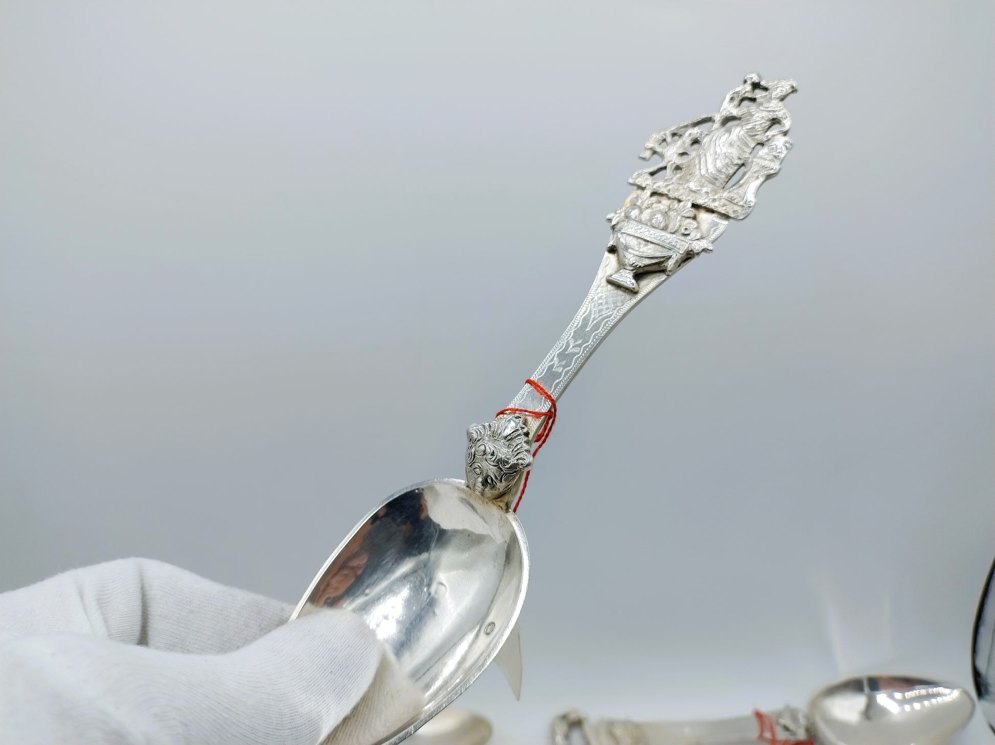 Unieke collectie met 39 Friese geboortelepels inclusief familiekronieken, 19e eeuws