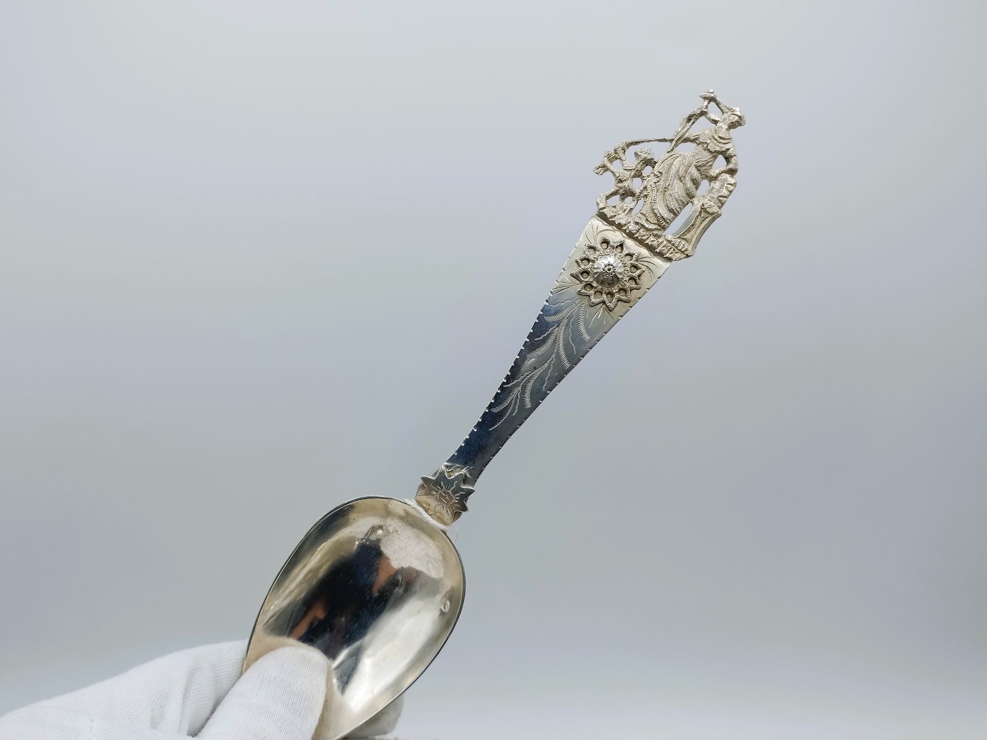 19. Geboortelepel, gemaakt door J.H. Beeling, Leeuwarden, 1874. Geen inscriptie