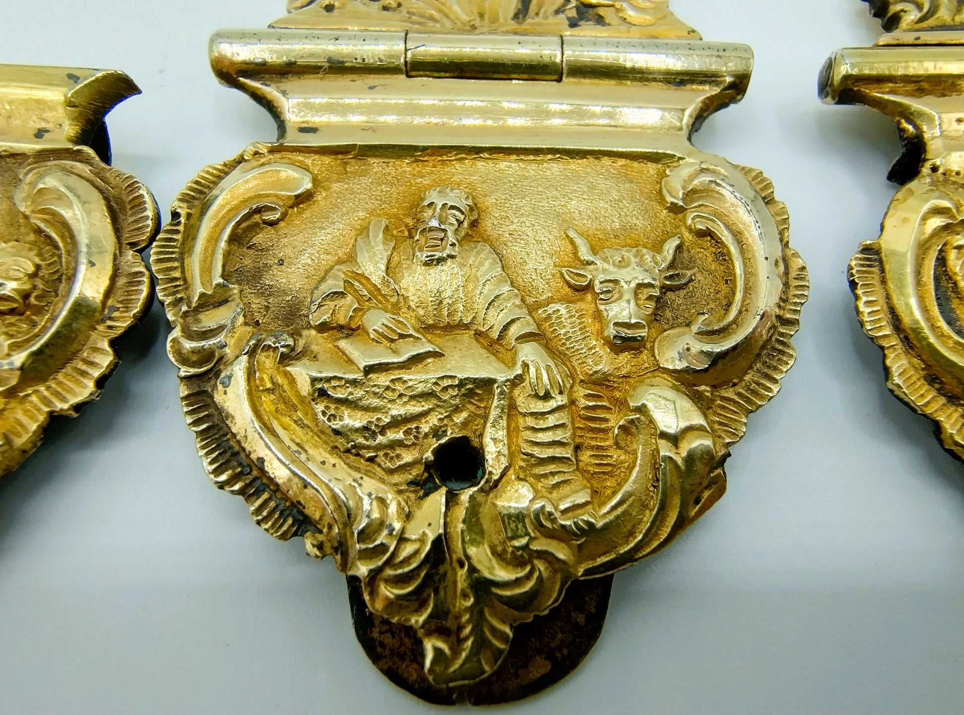 Op de muiters en de aanzetstukken staan de 4 Evangelisten (Mattheüs, Marcus, Lucas en Johannes) afgebeeld. Mattheüs (met engelfiguur), Marcus (met leeuw), Lucas (met rund) en Johannes (met adelaar). Op de klampen staan Mozes en Aäron afgebeeld.