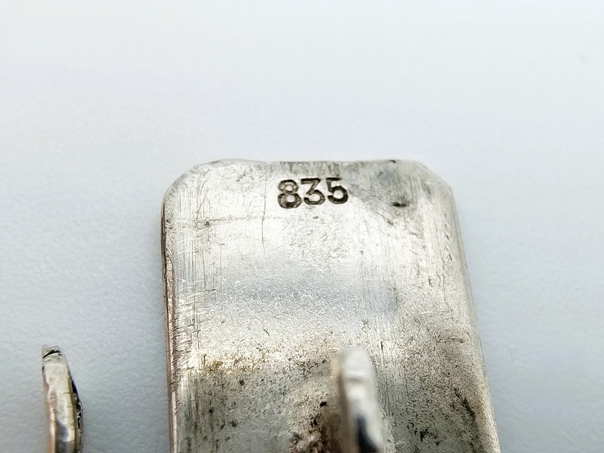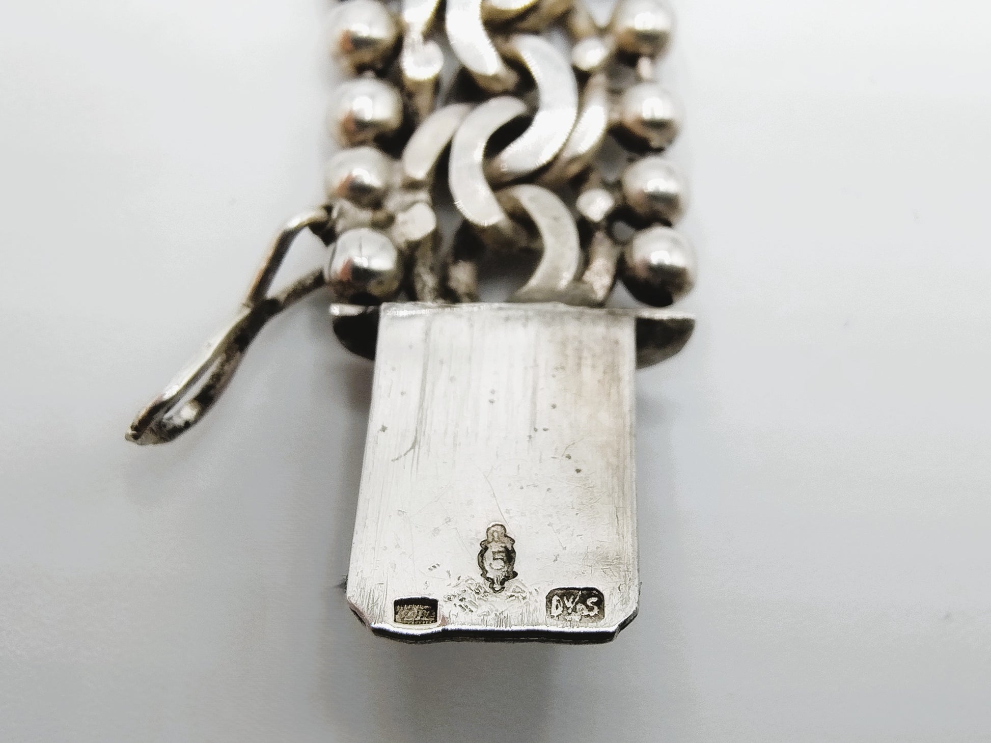 De armband is gekeurd met 835 voor 2e gehalte zilver, meesterteken DS en aanhangsel keur.