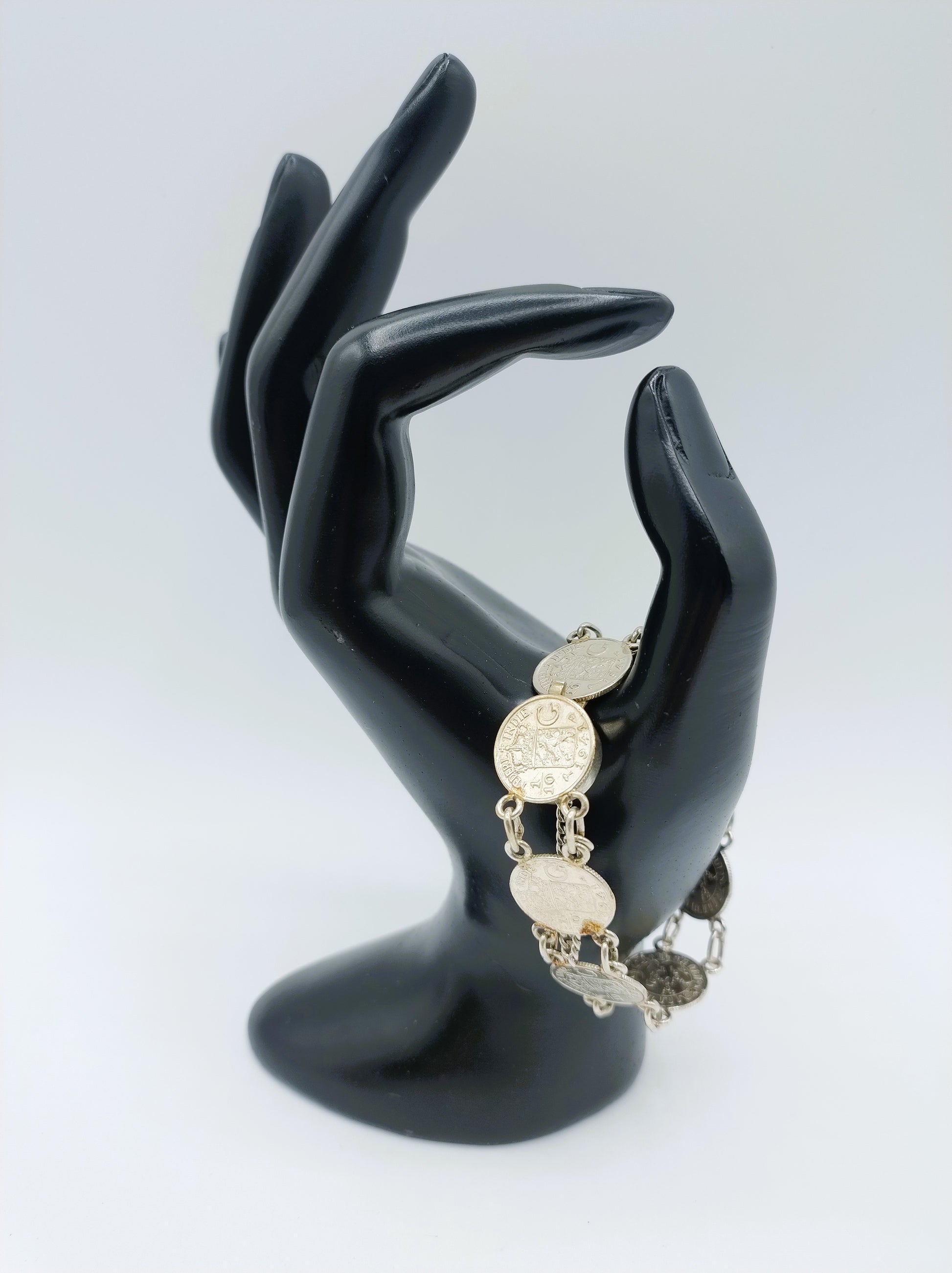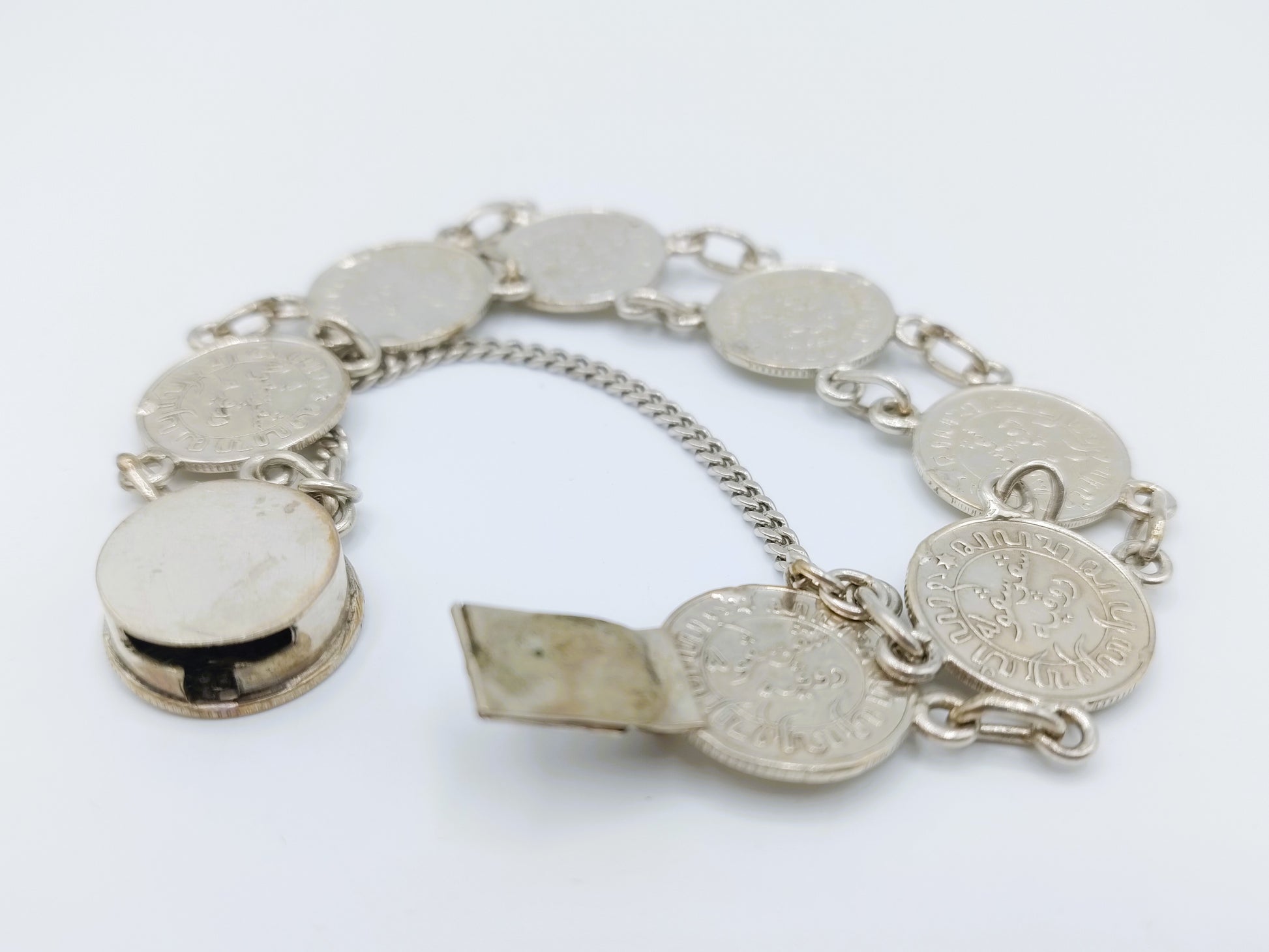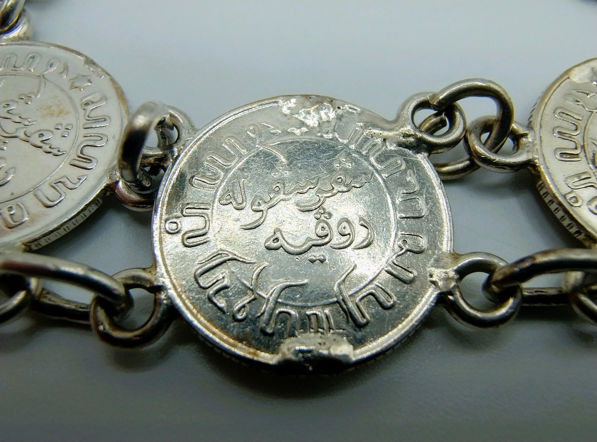 Zilveren armband gemaakt van 8 munten van 1/10 gulden uit Nederlands Indië.